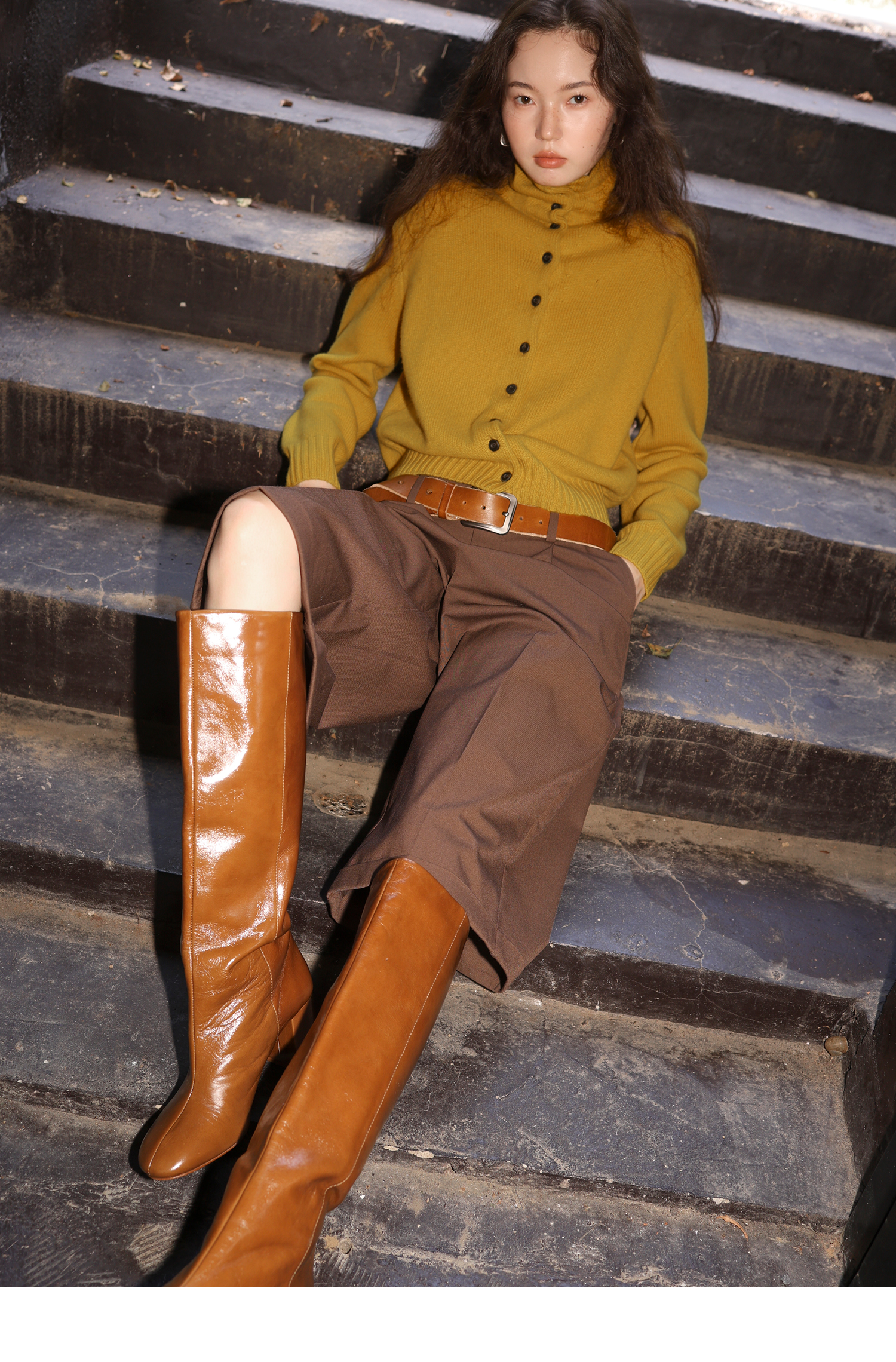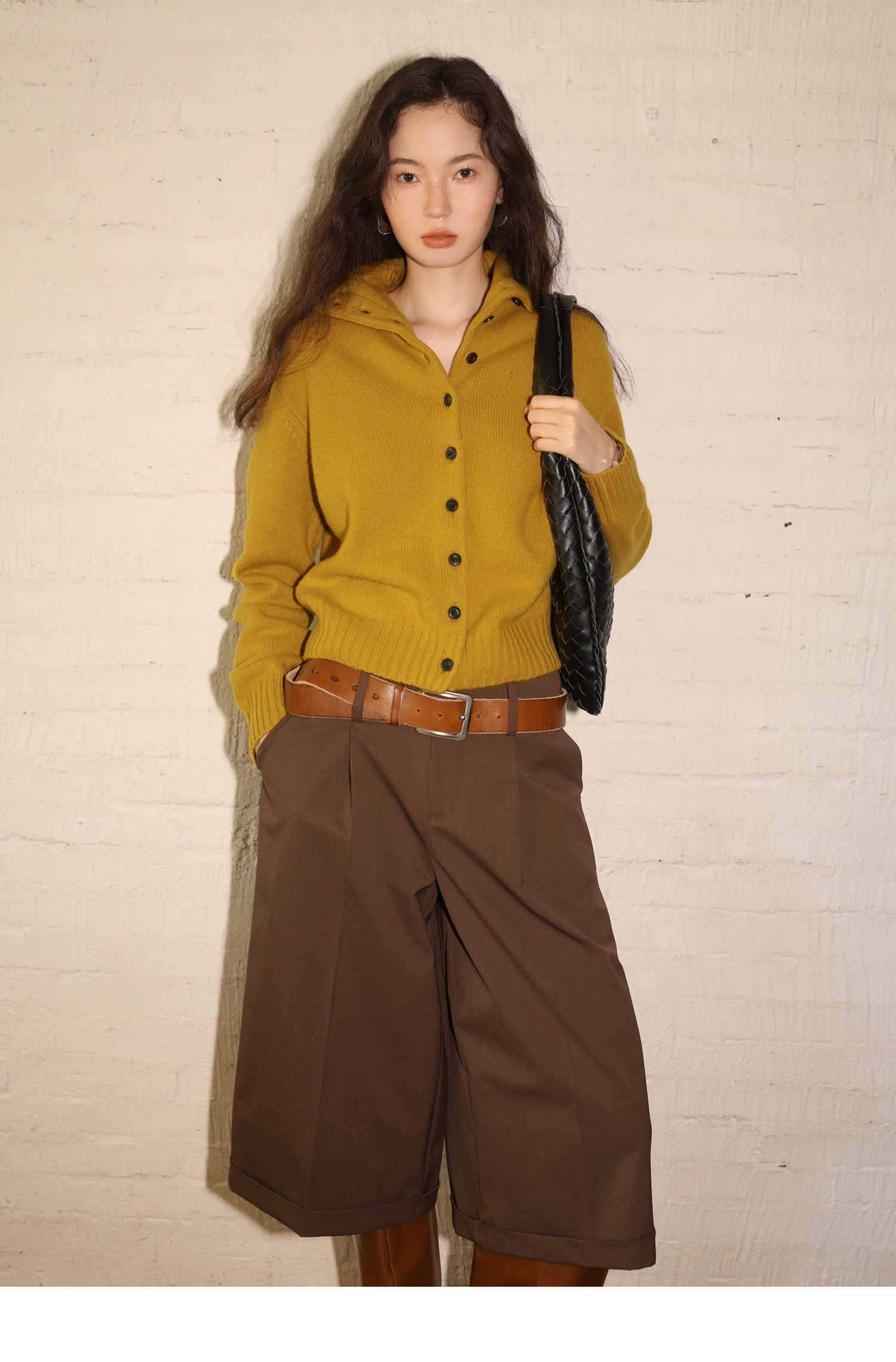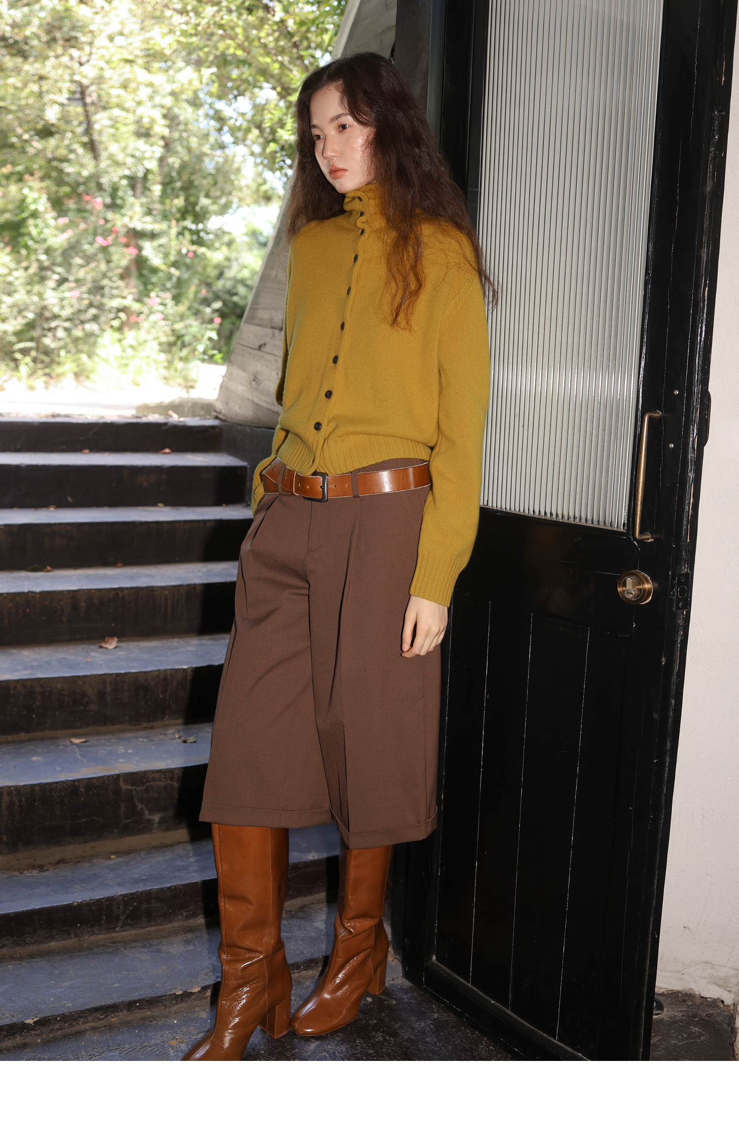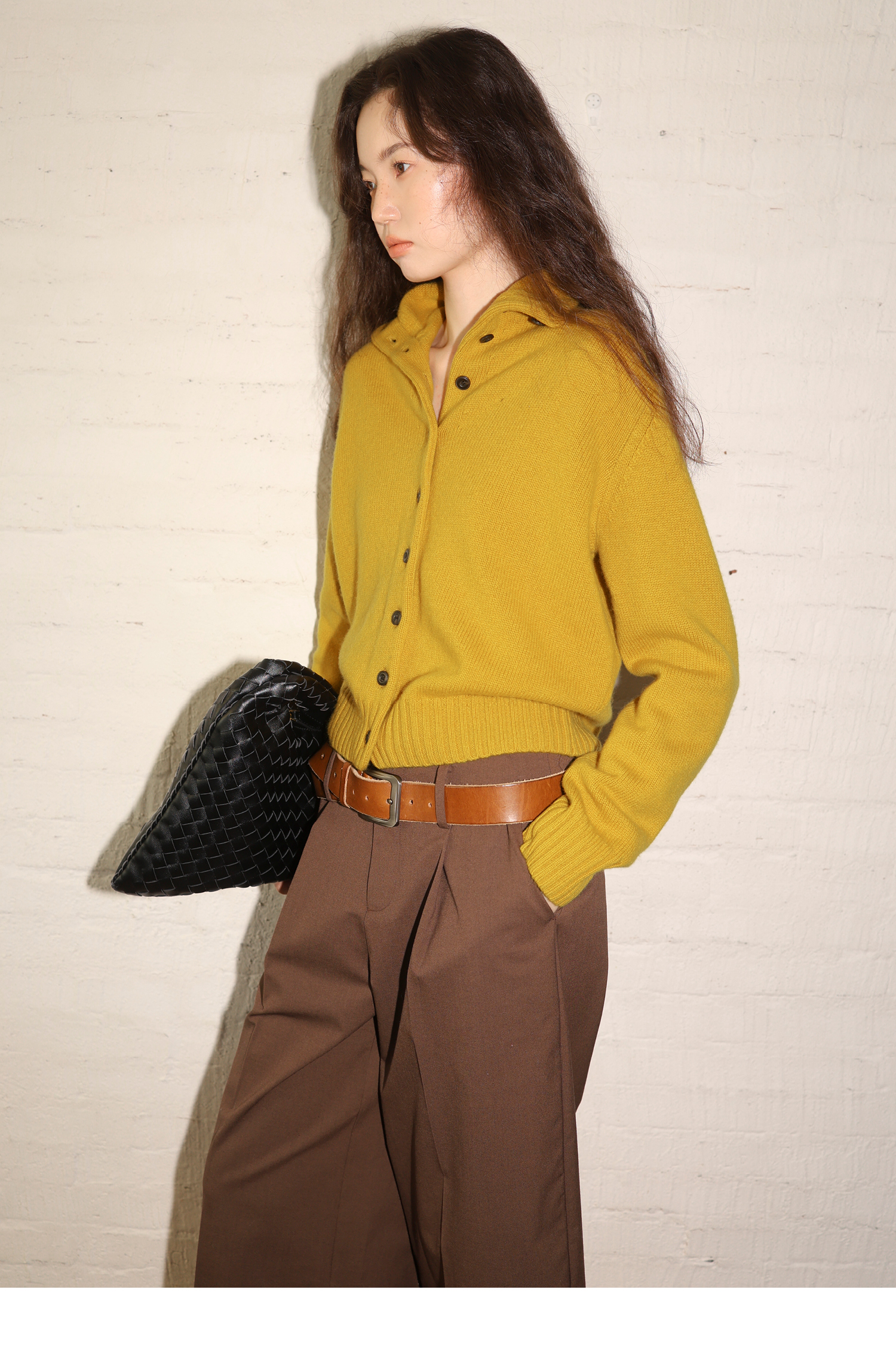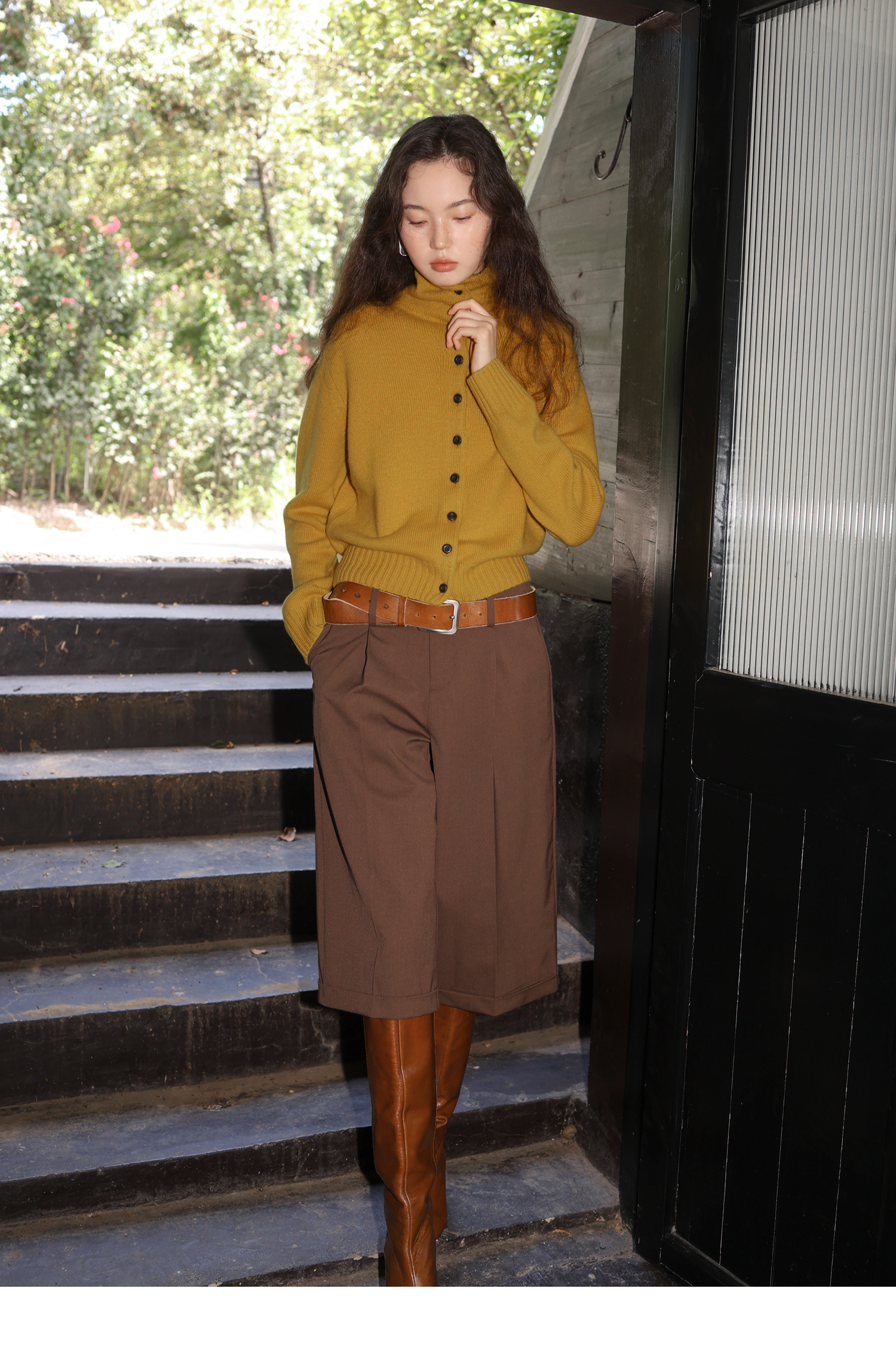 素舶 澳洲美丽奴亲肤柔软双门襟多粒扣高领全羊毛针织开衫毛衣