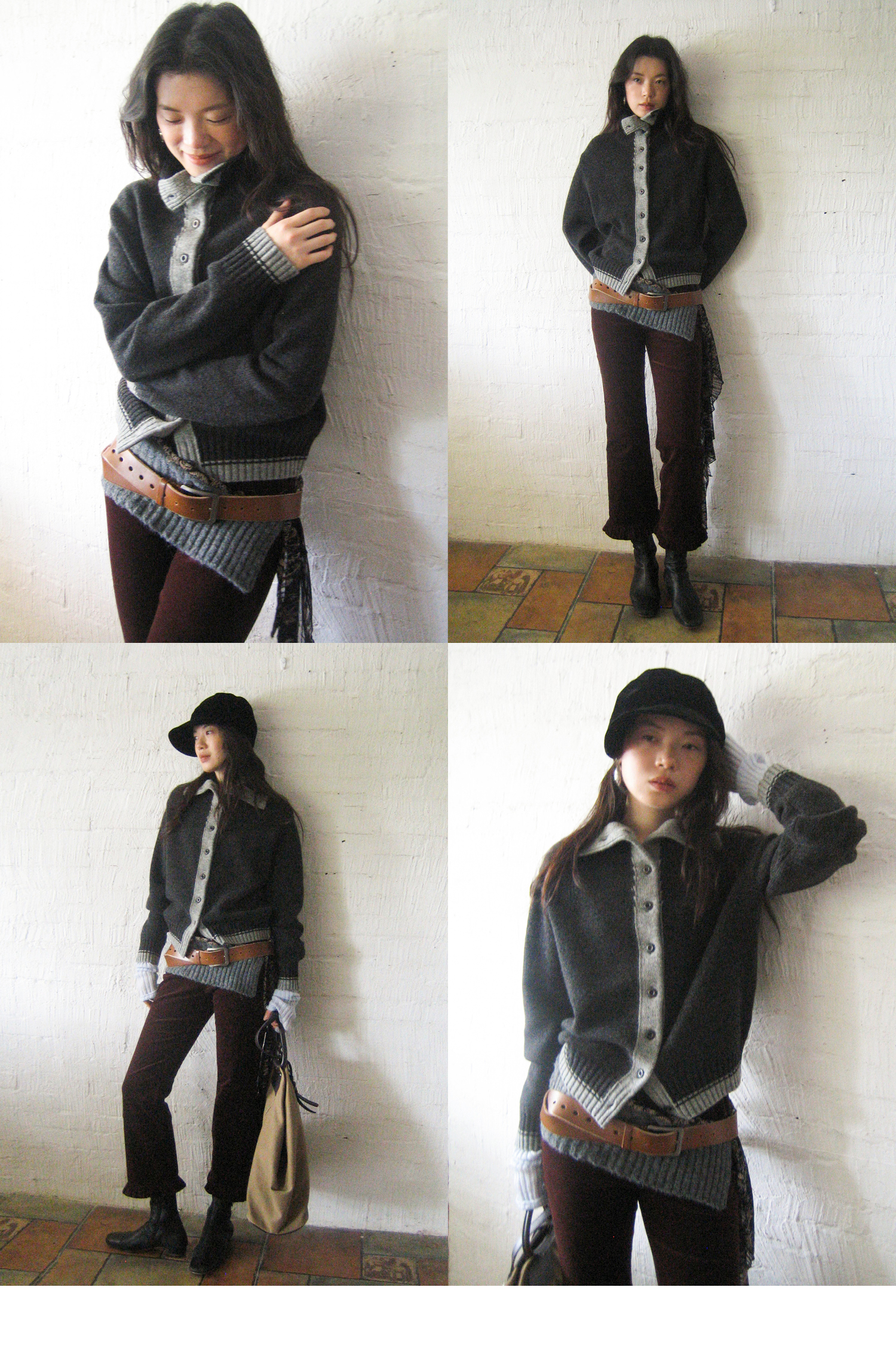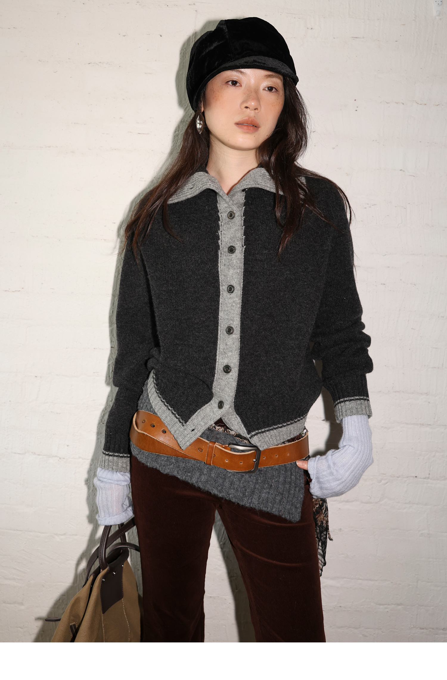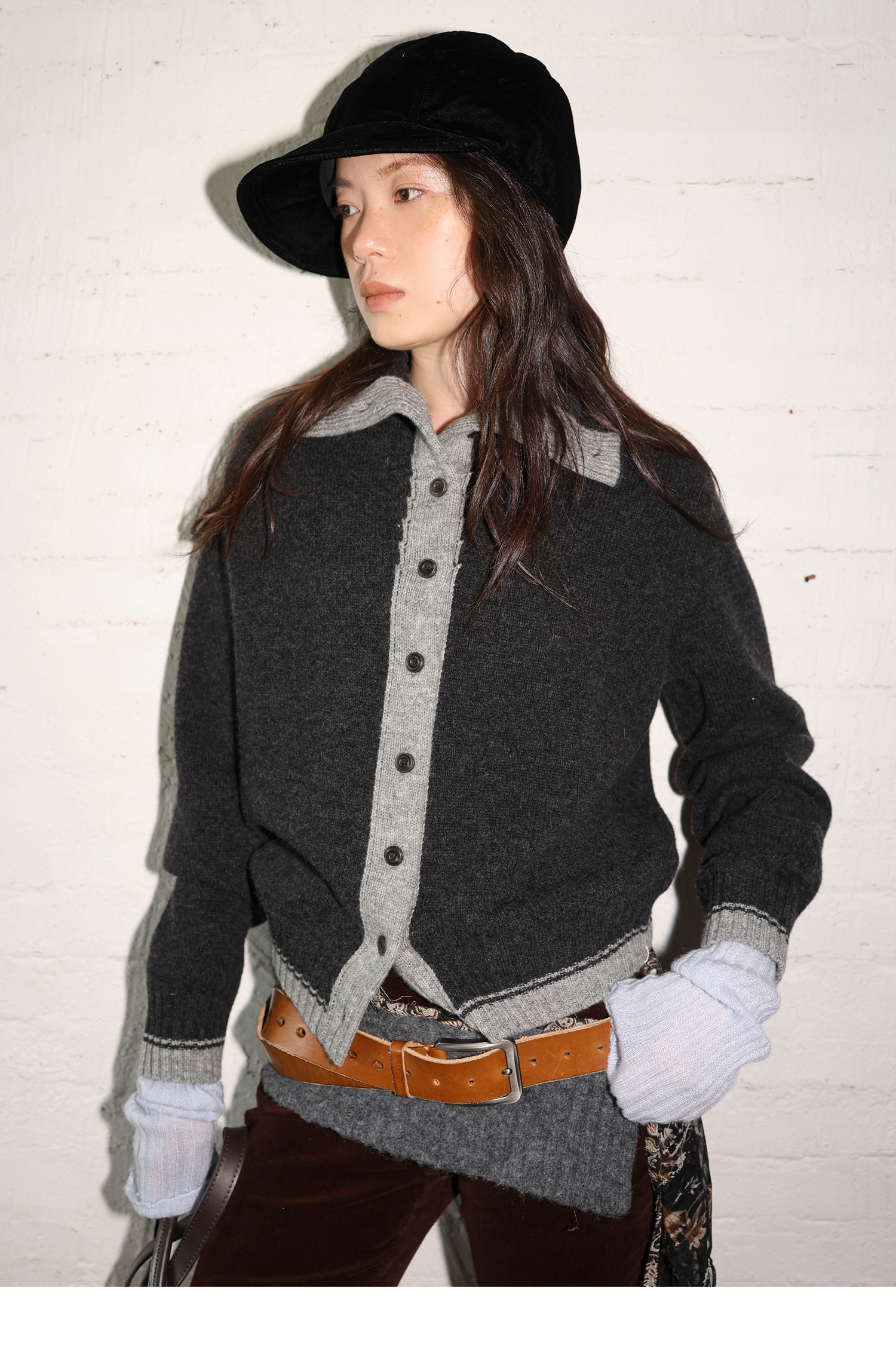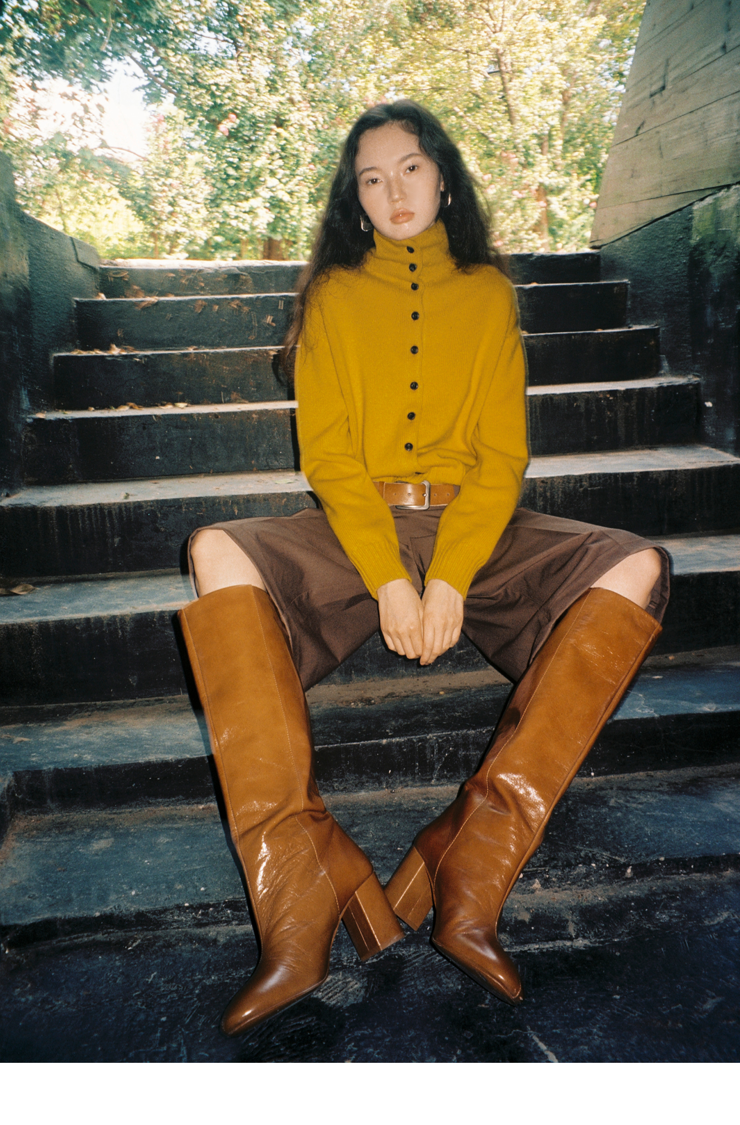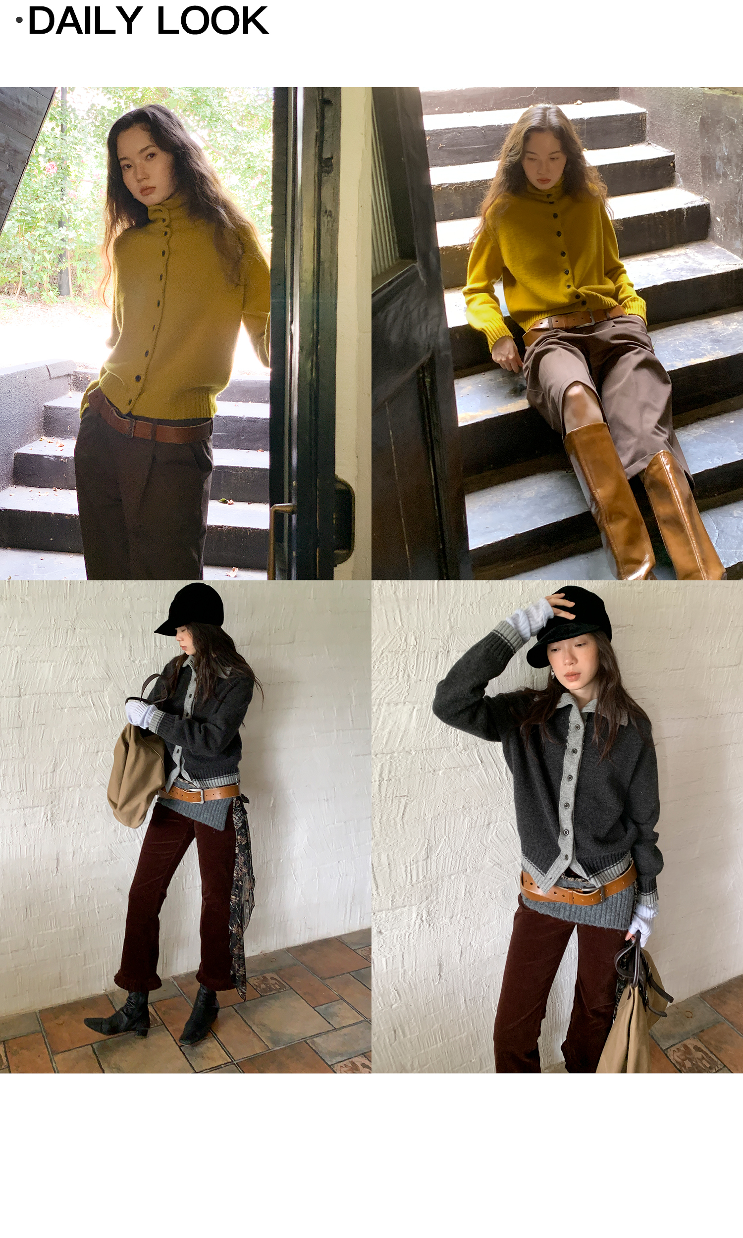 素舶 澳洲美丽奴亲肤柔软双门襟多粒扣高领全羊毛针织开衫毛衣