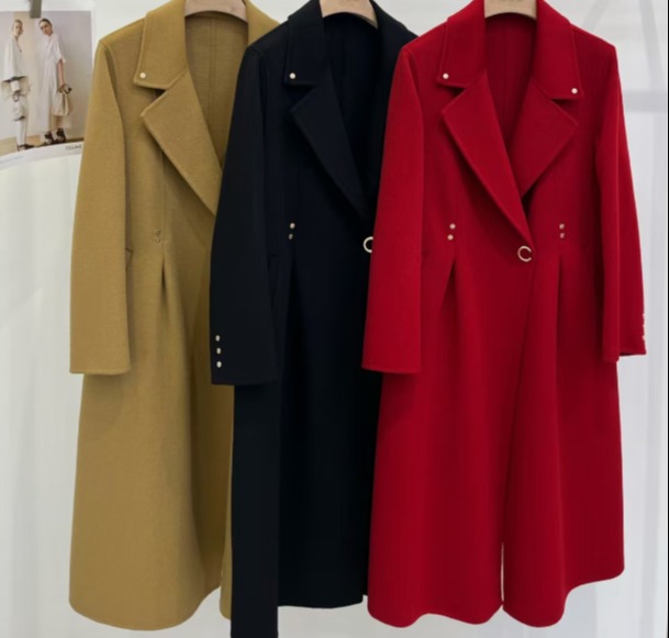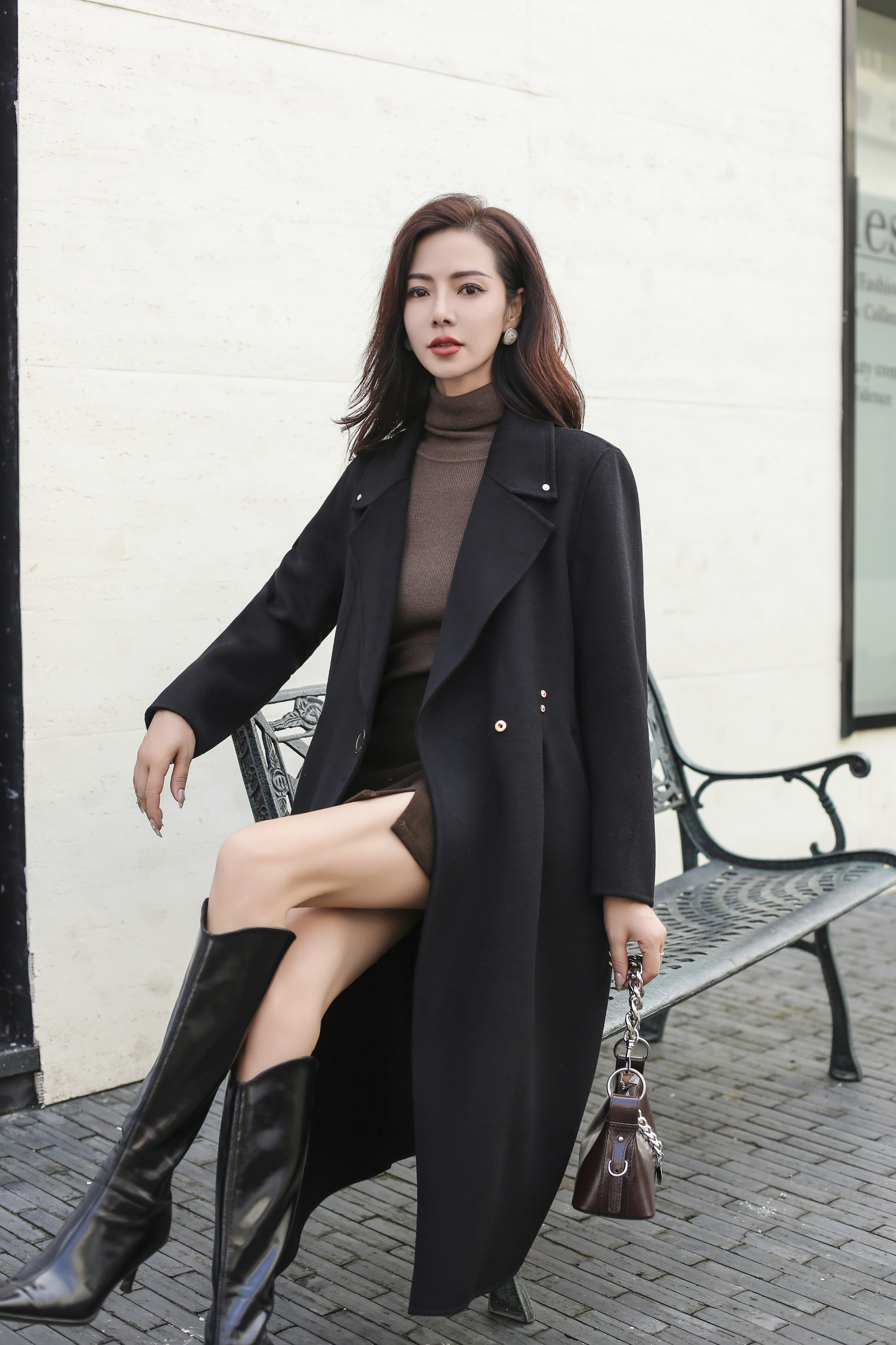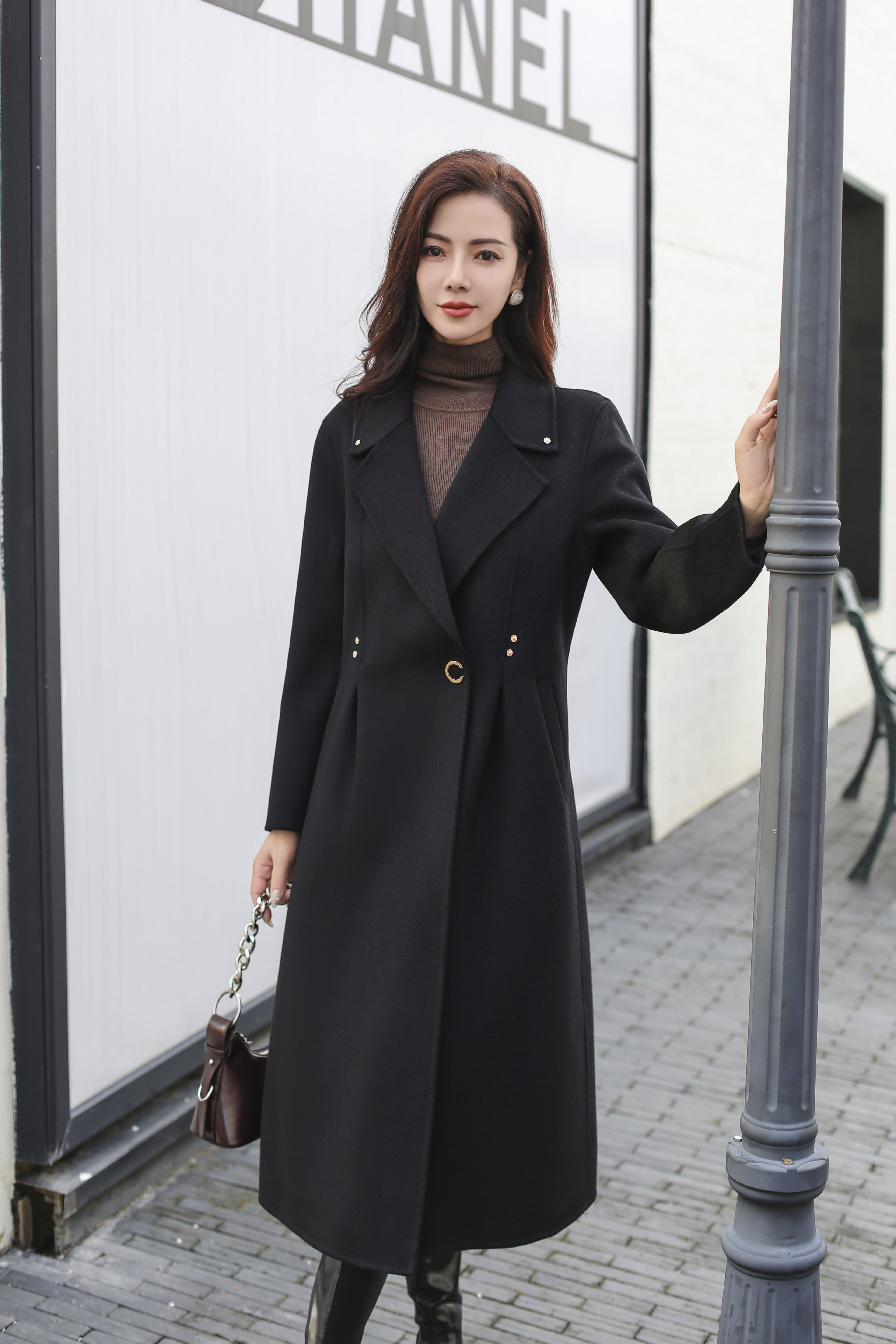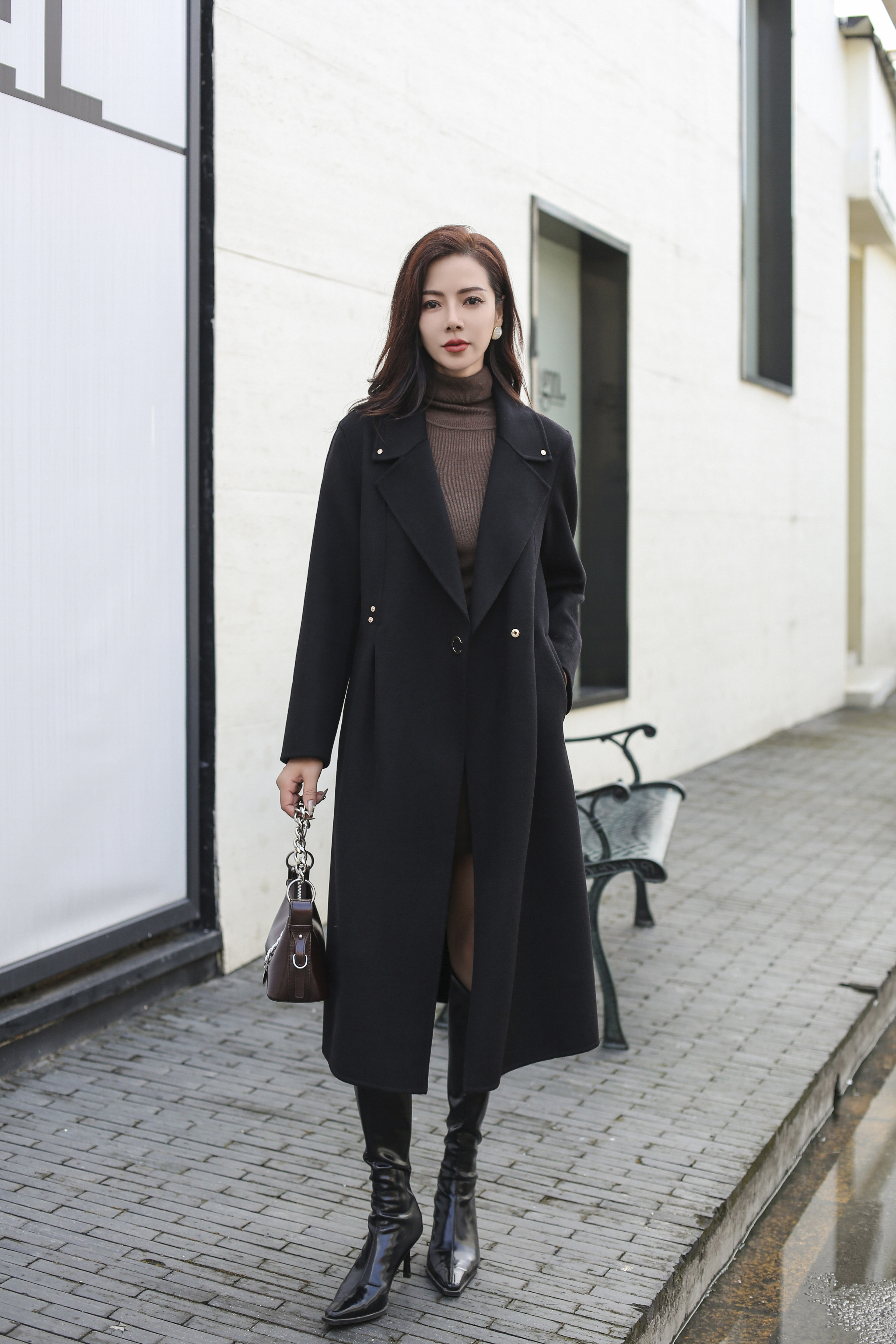 SZ6C15_漆黑色/栀黄色_大衣_冬季_西装大翻领收腰收褶A字摆中长款_高级女装_BERNIEELEN 伯妮斯茵