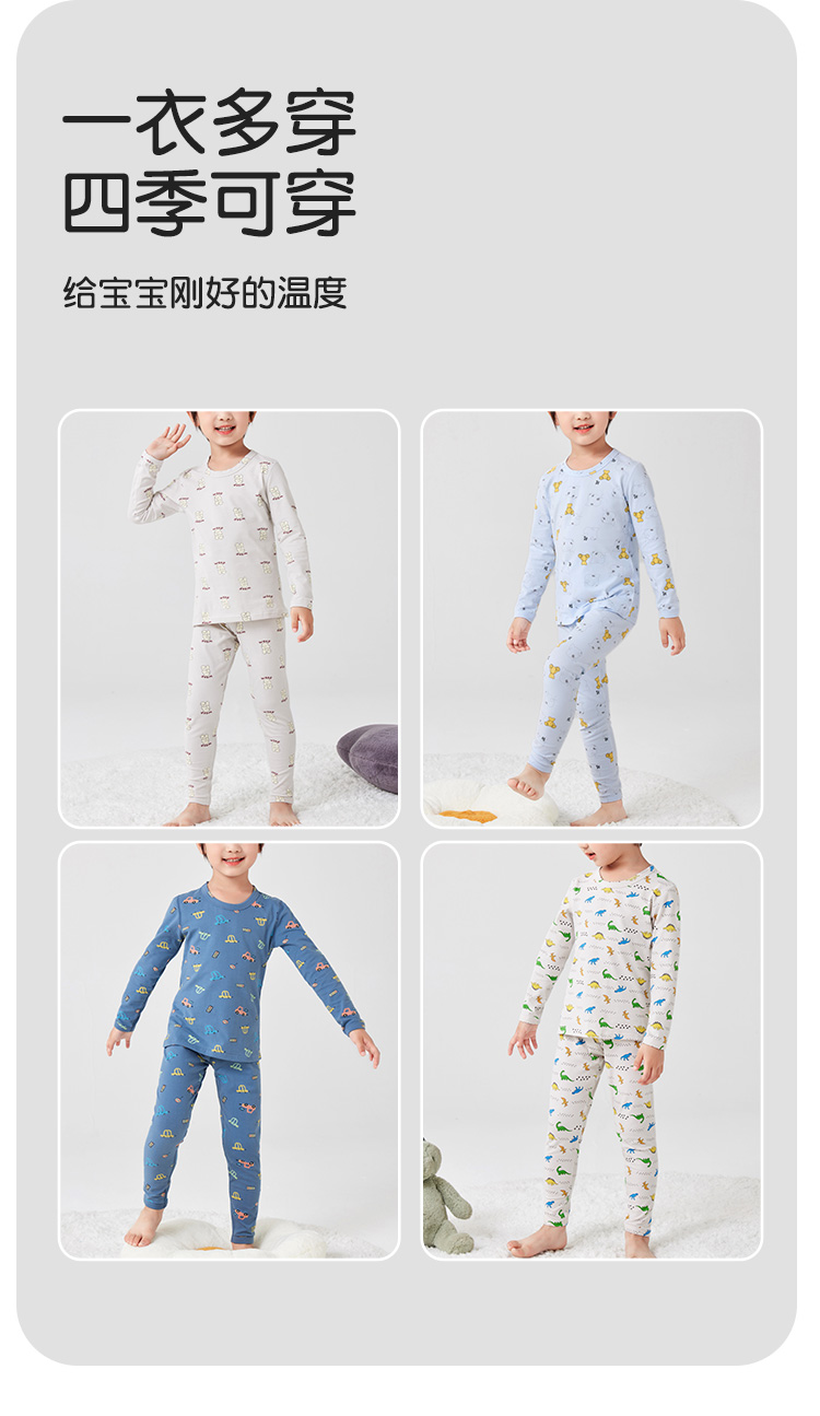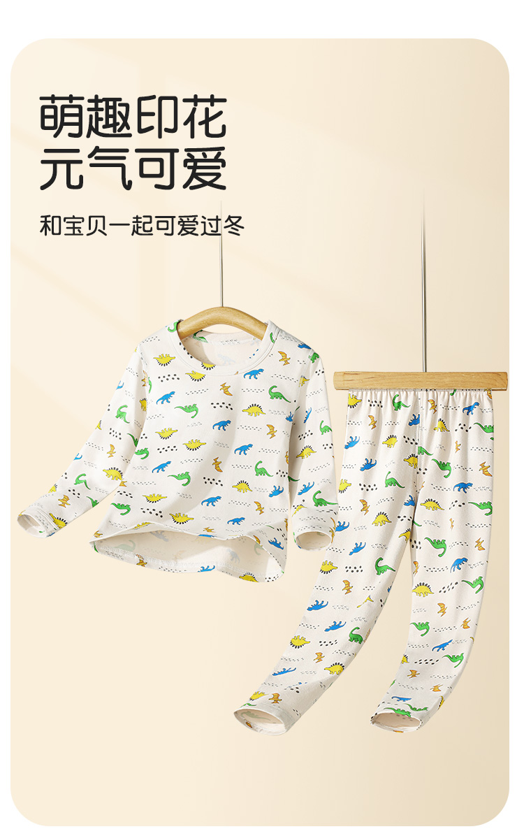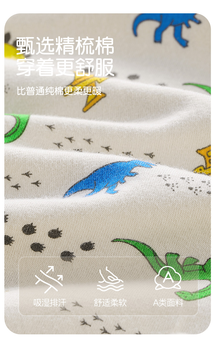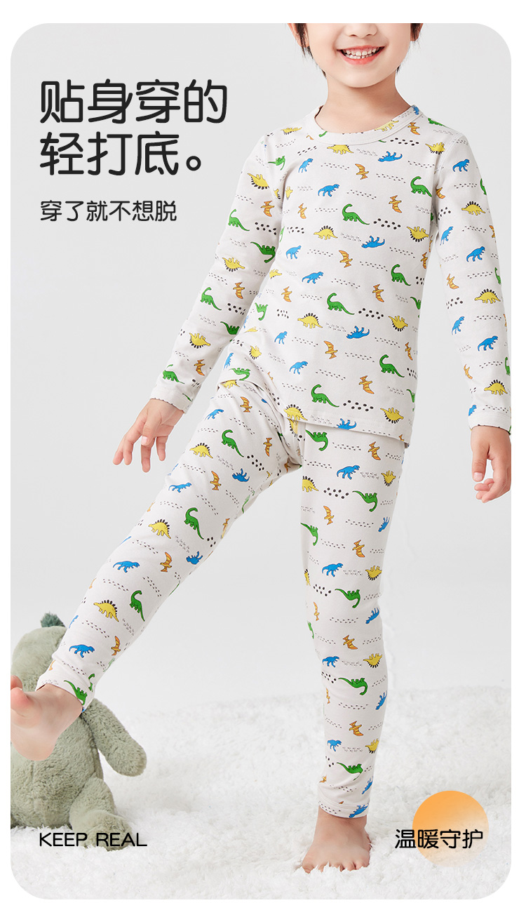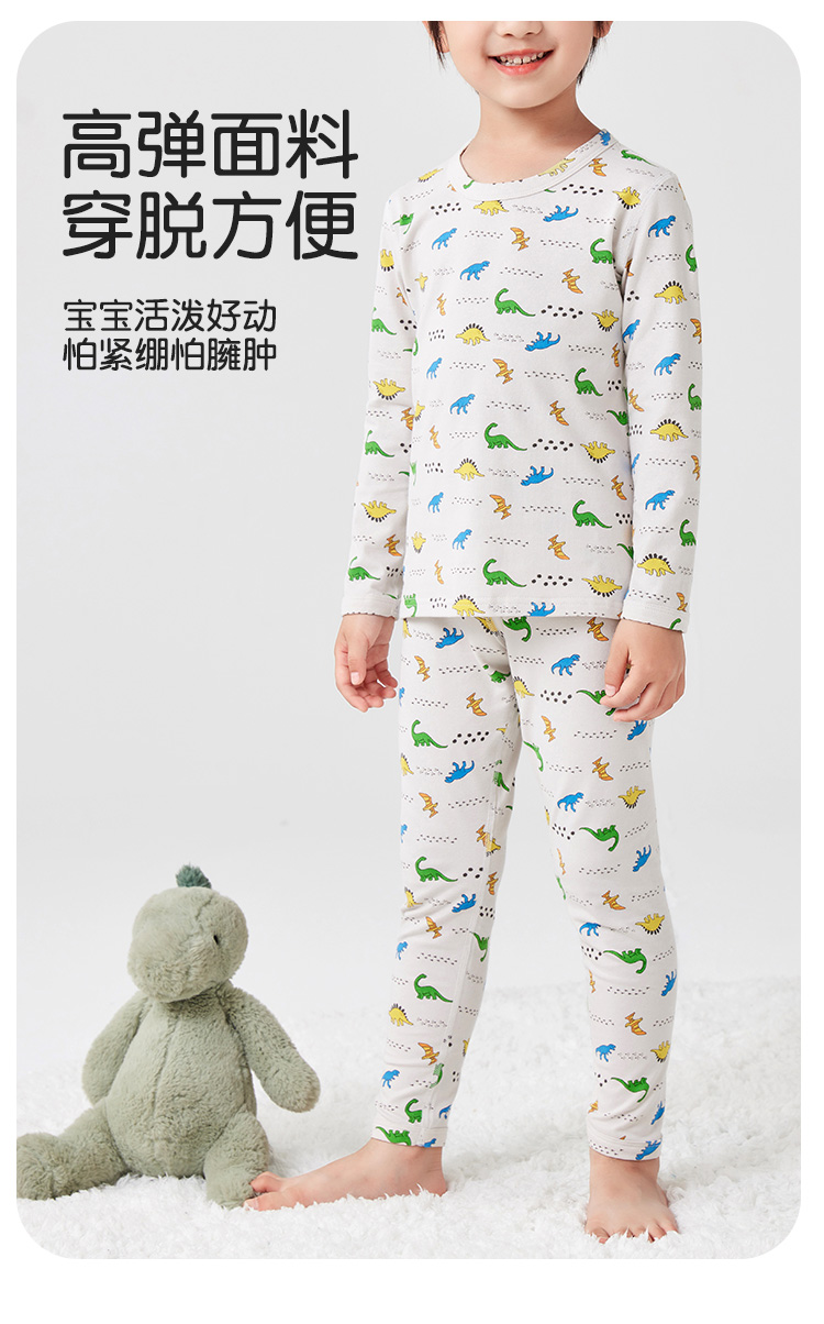95%棉亲肤舒适男童印花保暖套装萌趣动物印花高弹套头秋衣男童印花保暖套装
