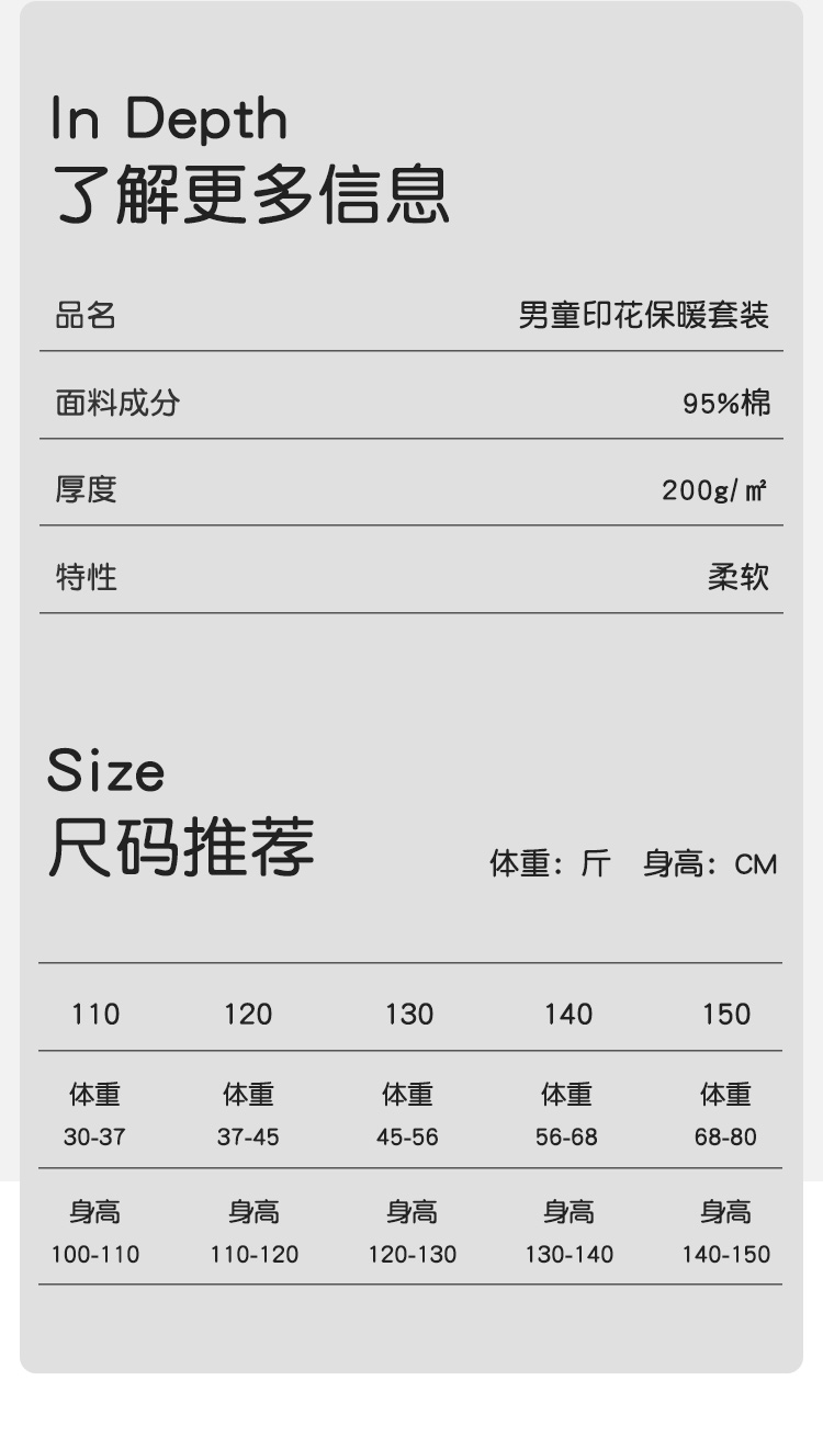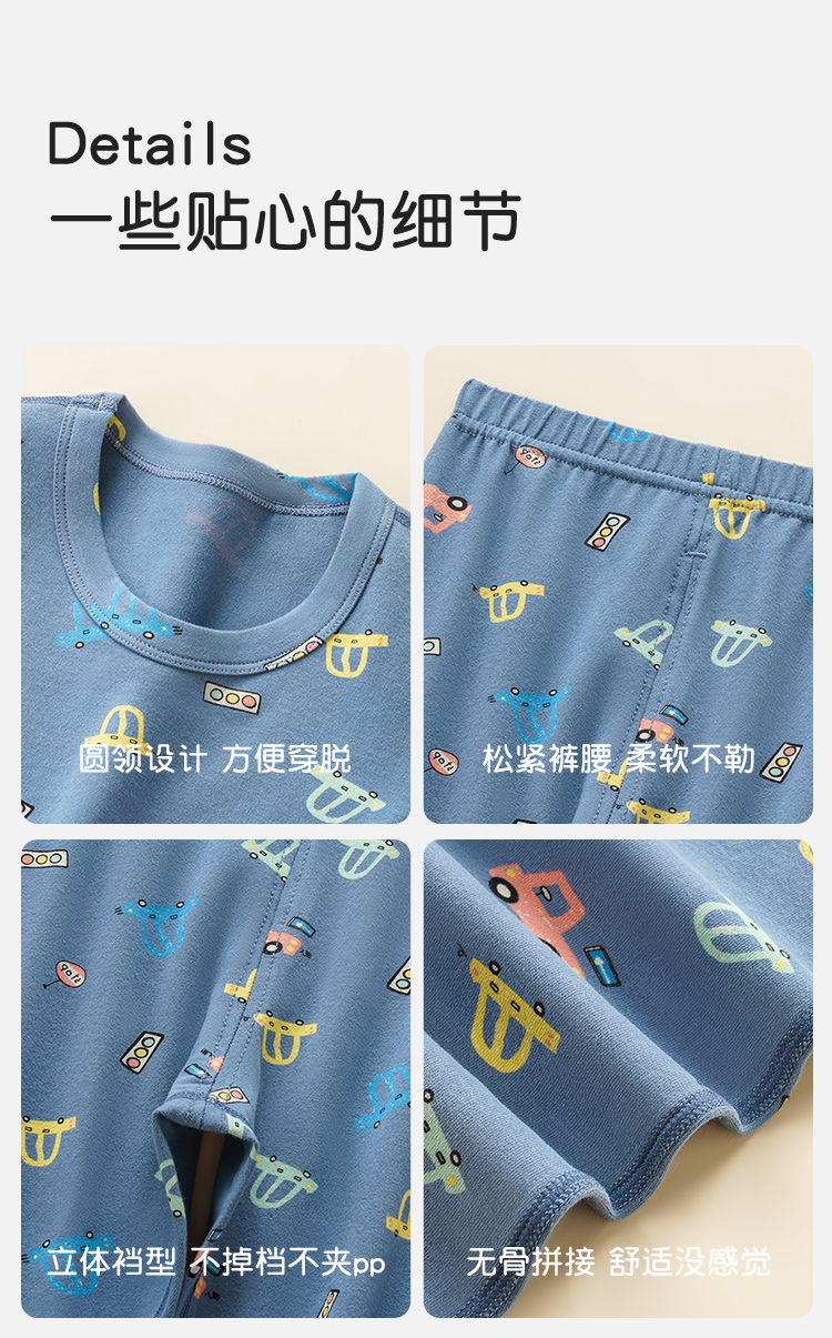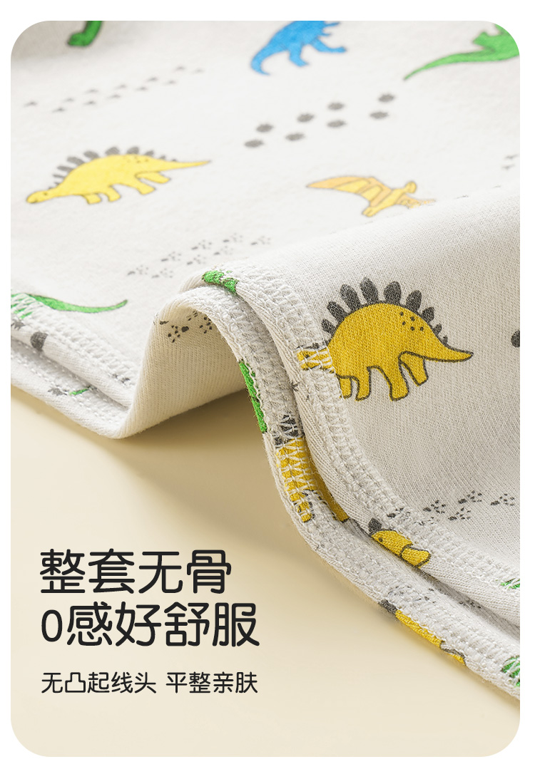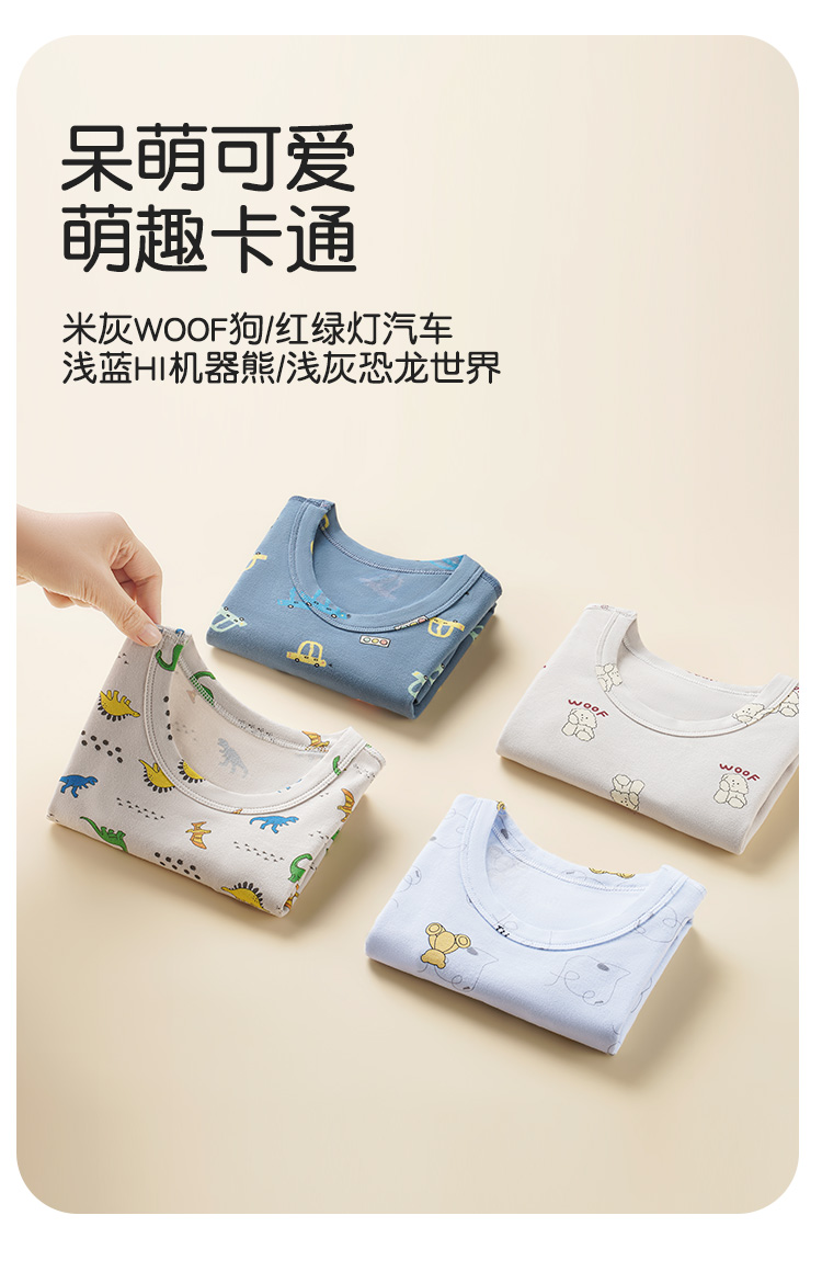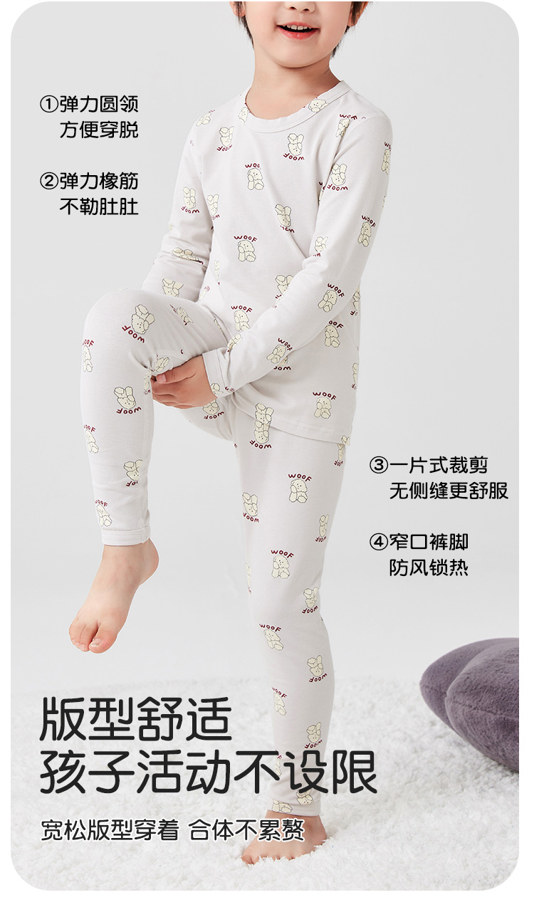 95%棉亲肤舒适男童印花保暖套装萌趣动物印花高弹套头秋衣男童印花保暖套装