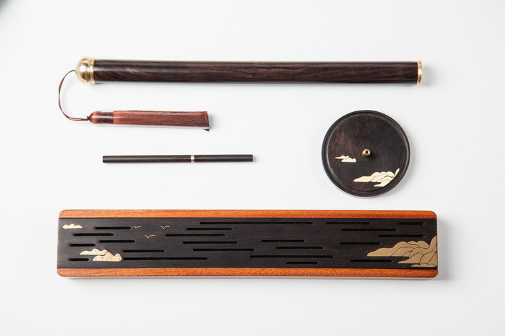 【远山】紫光檀·酸枝·镶铜香具四件套