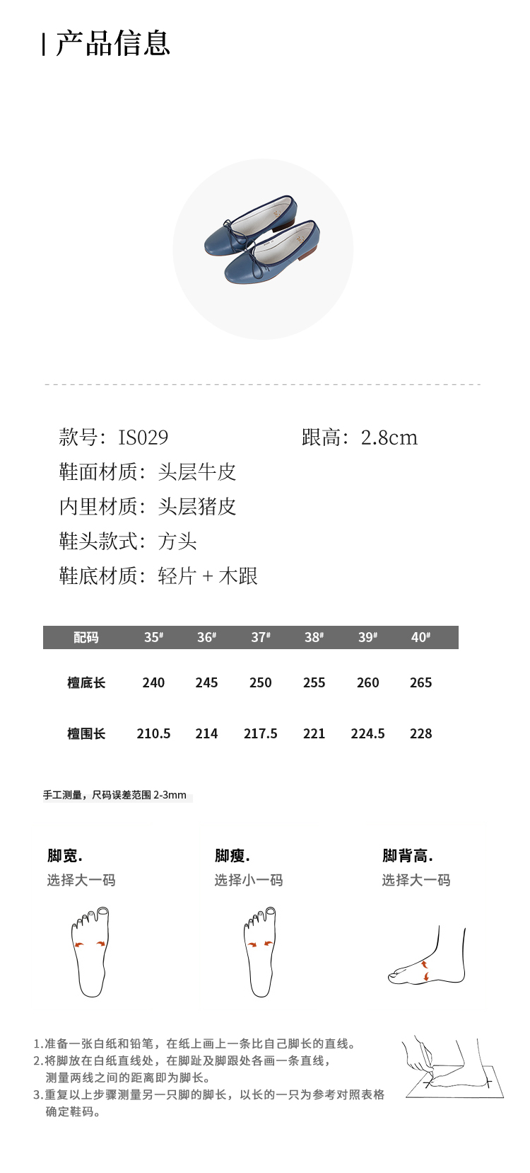 绽放S029朵/百搭方头牛皮低跟气质单鞋