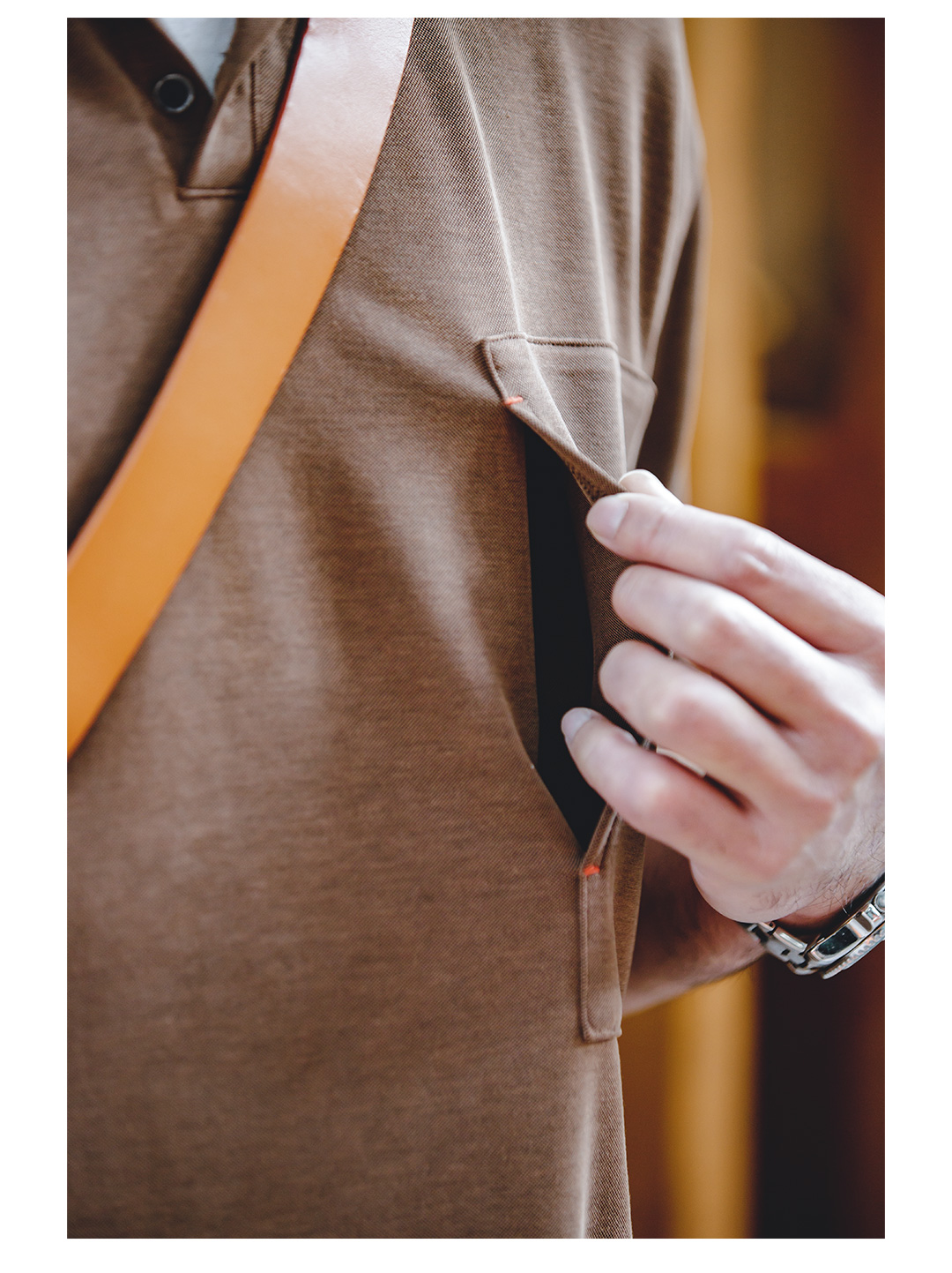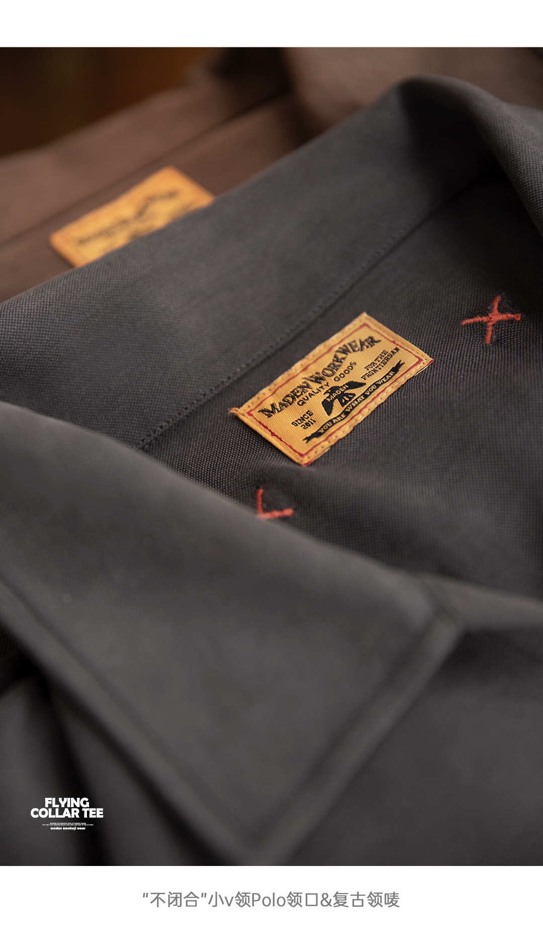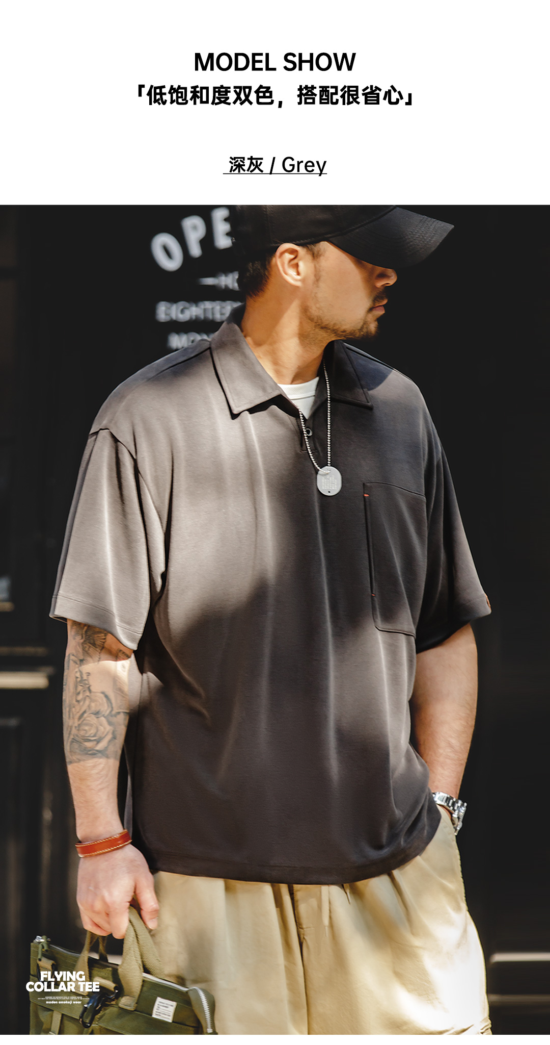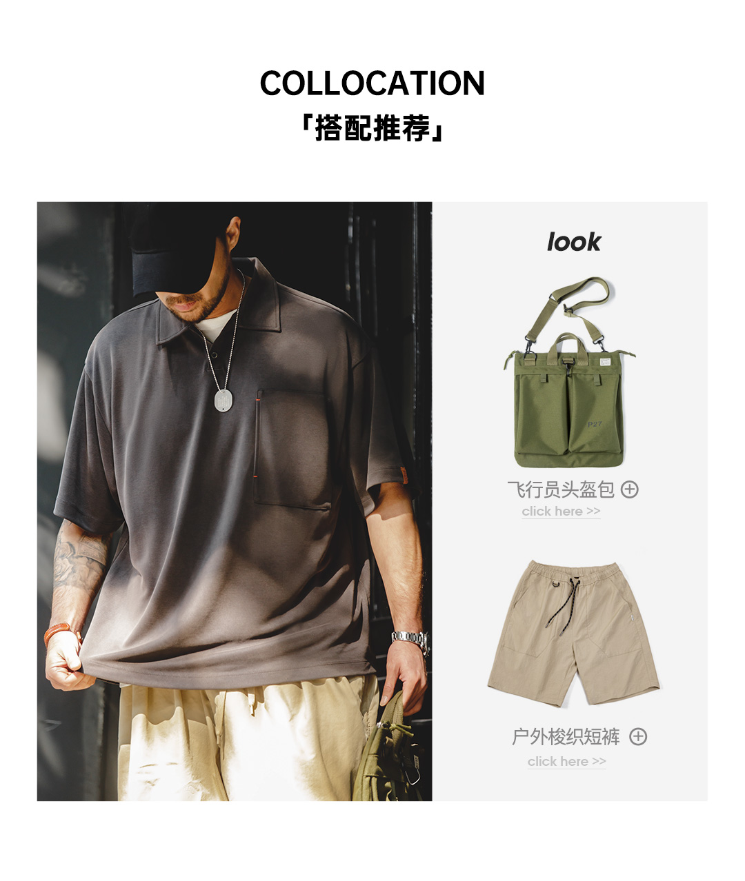 马登工装 美式复古polo领短袖落肩宽松翻领半袖衫莫代尔口袋T恤男夏