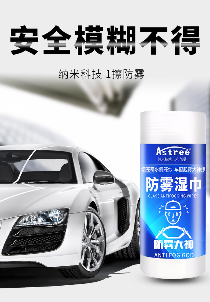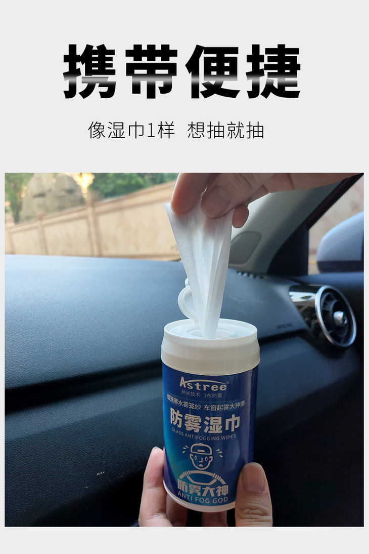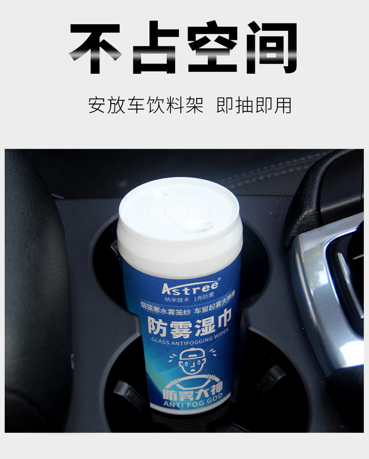 【买一送一】Astree 车载防雾湿巾 汽车玻璃防雾剂 挡风玻璃防雾 适用车窗/眼镜/头盔/浴室镜子 40抽/筒