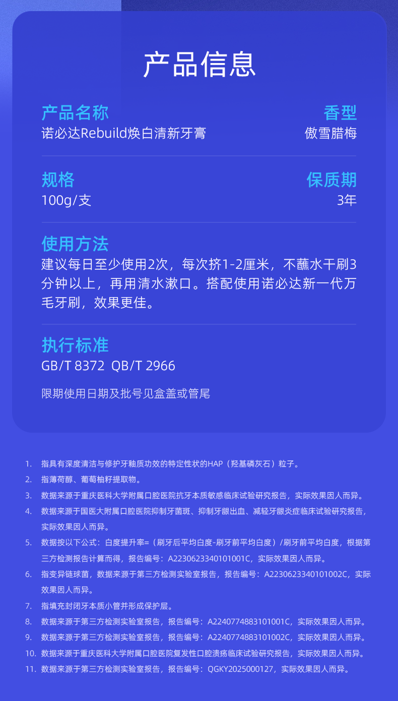 焕白款【购5支得同款1支100g免费试用】诺必达Rebuild焕白清新牙膏(100g/只)