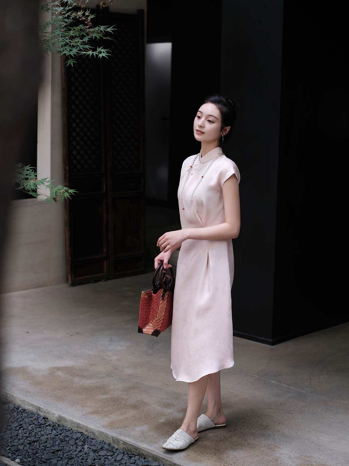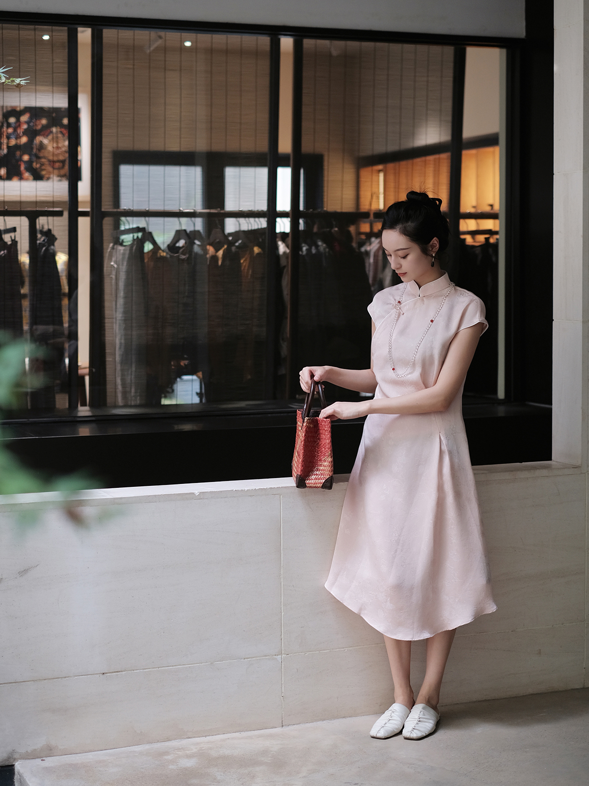 盛唐牡丹 |重缎正绢枇杷花旗袍裙