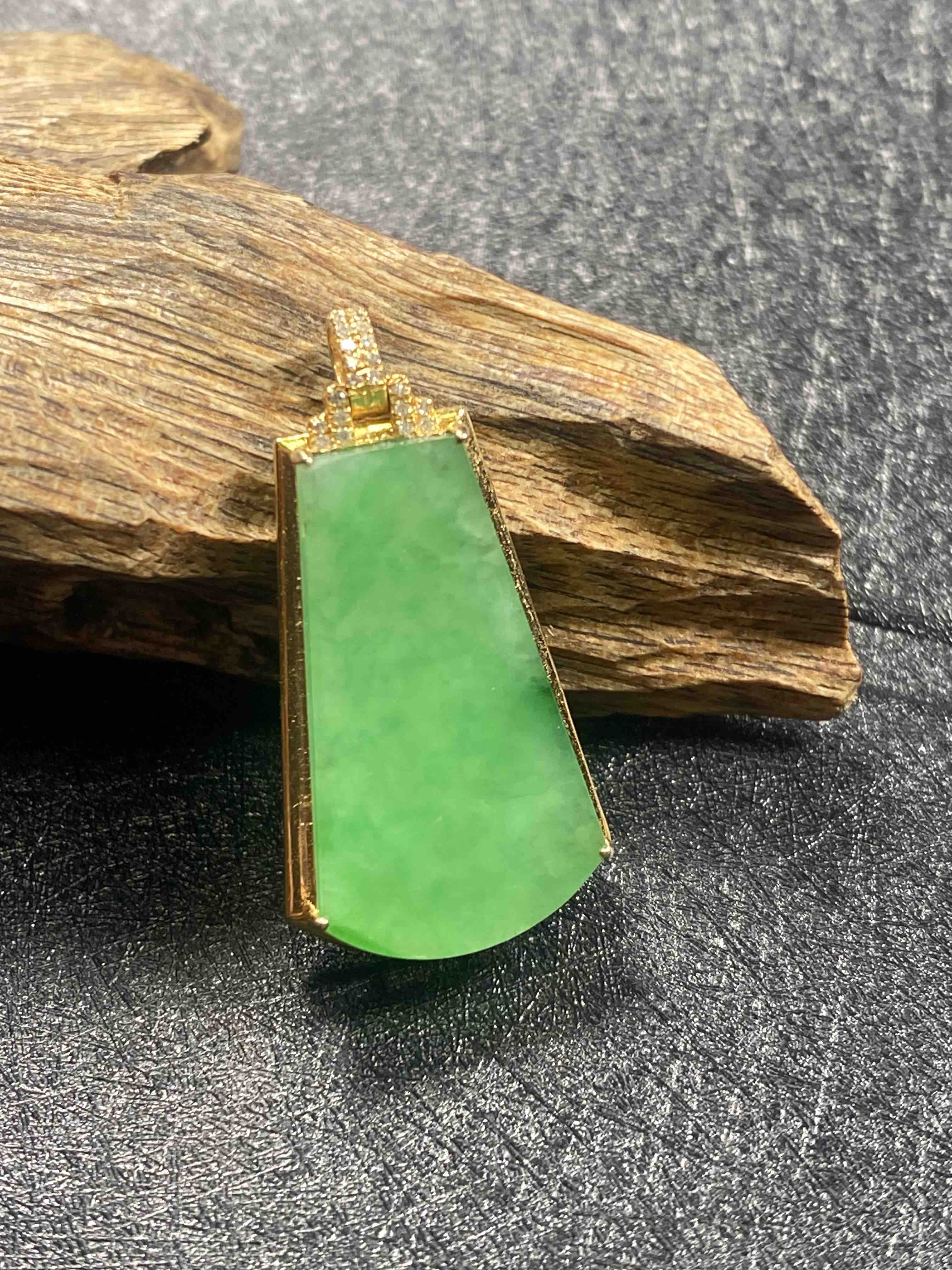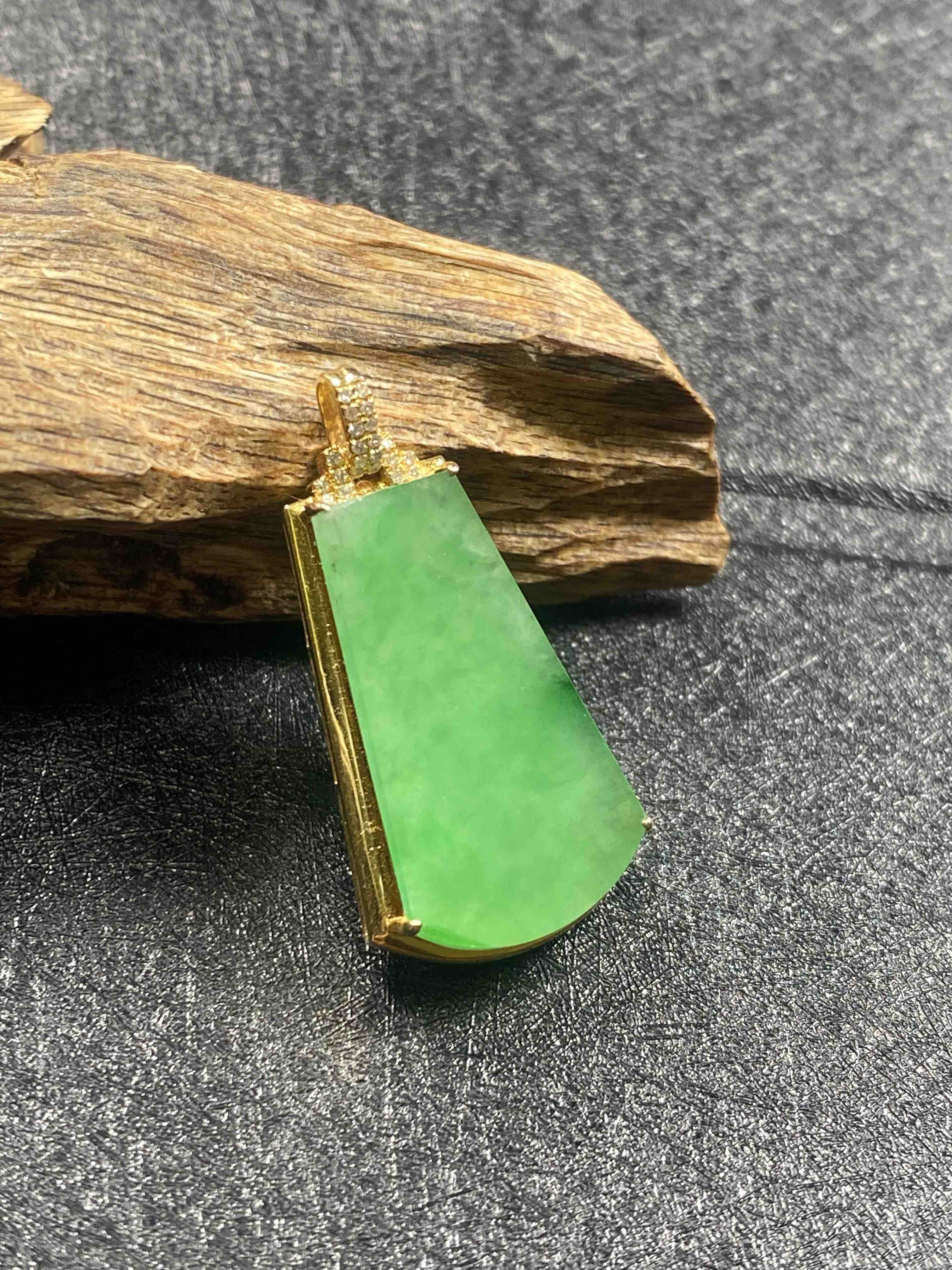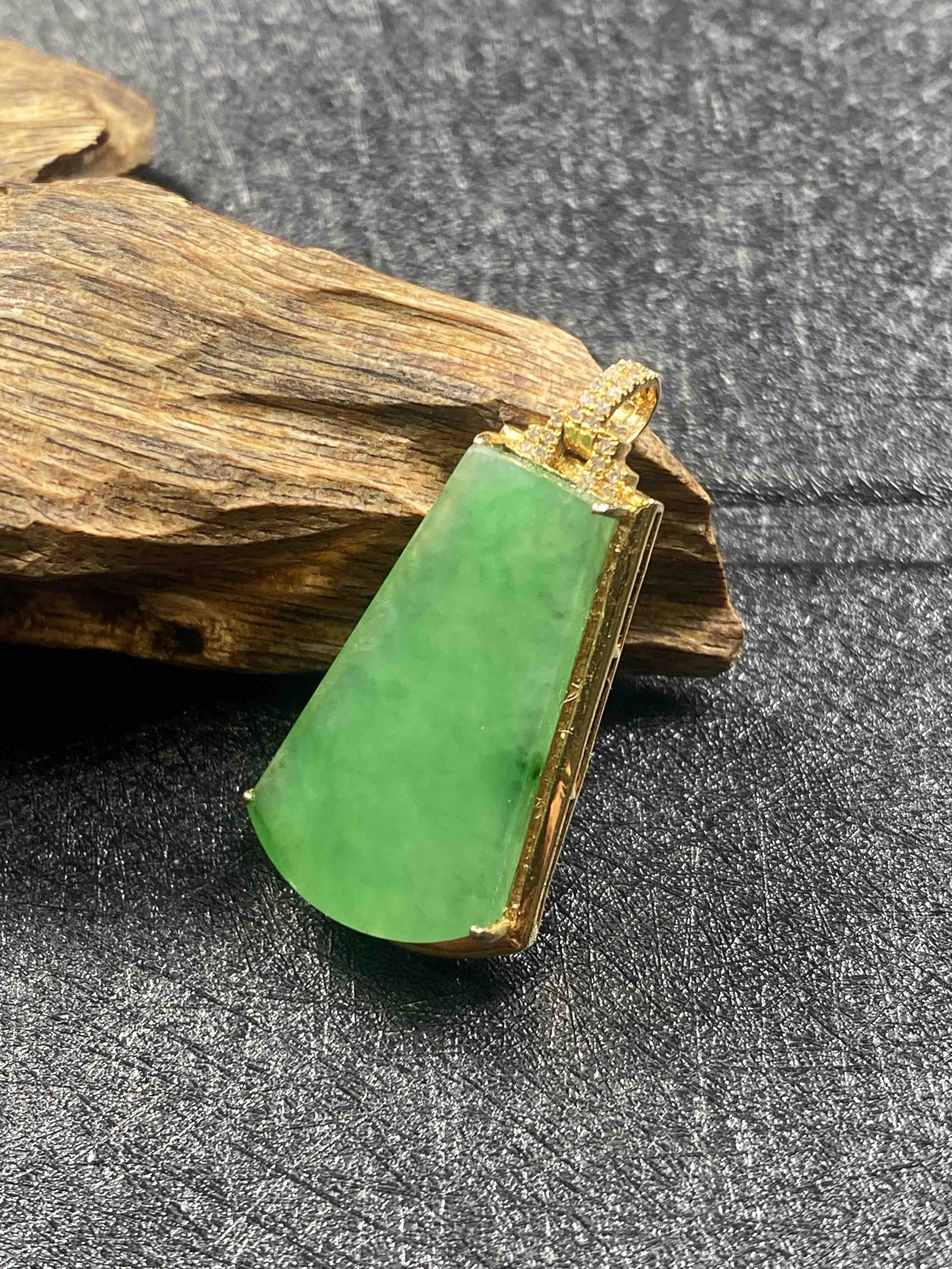 【FC0104】18K镶嵌翡翠绿无事牌吊坠 水润光泽 色泽亮丽 款式简约大气 裸石尺寸:21.8*12.7*1.8mm 超值价💰4800