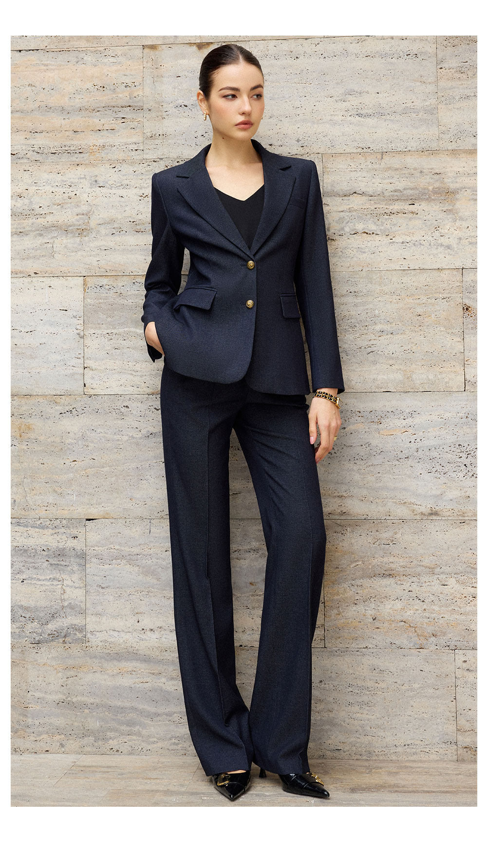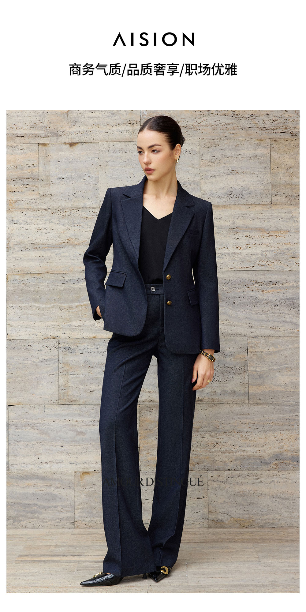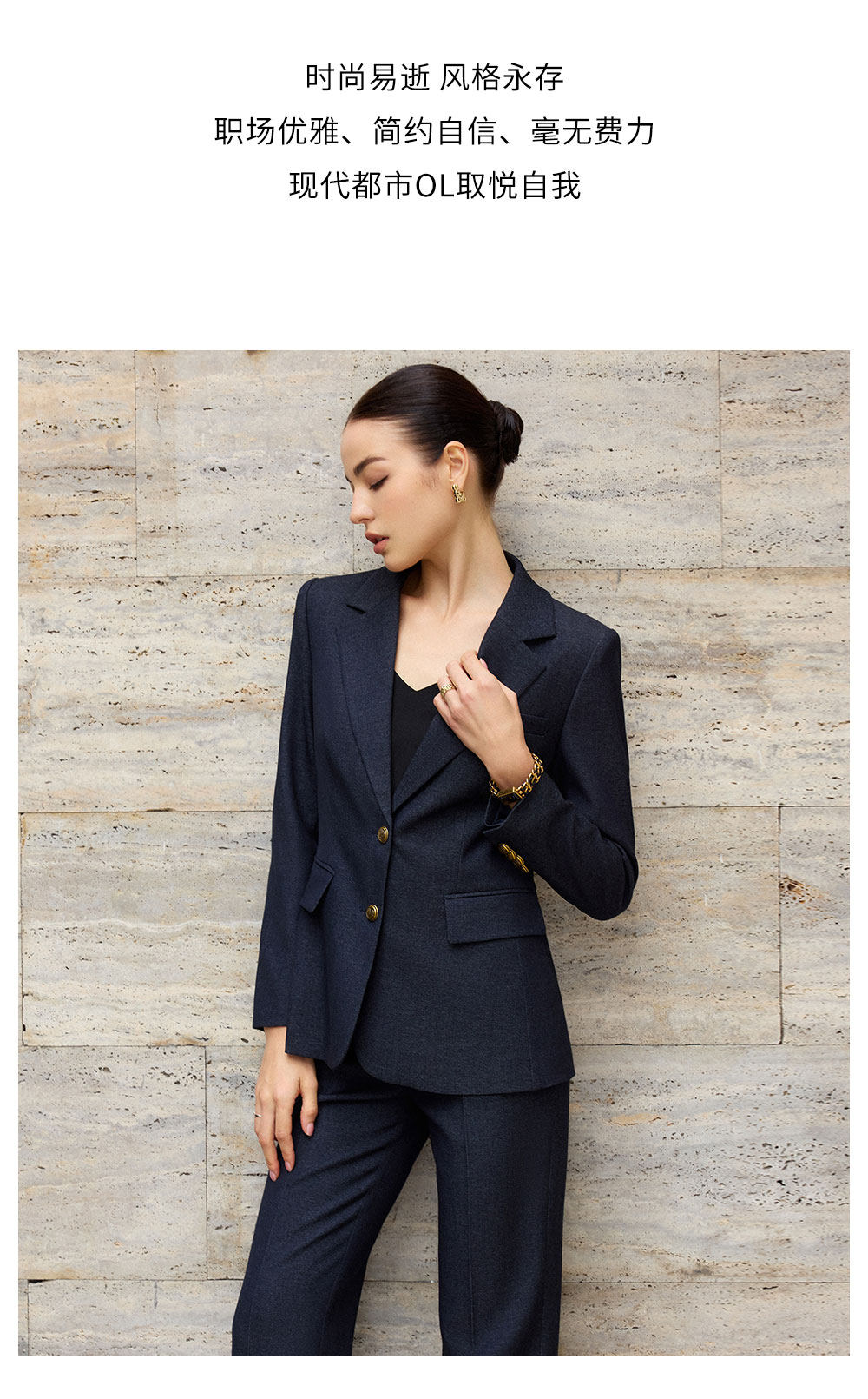 艾尚臣老钱风藏青色西装套装女西服两件套职业装商务通勤气质女装