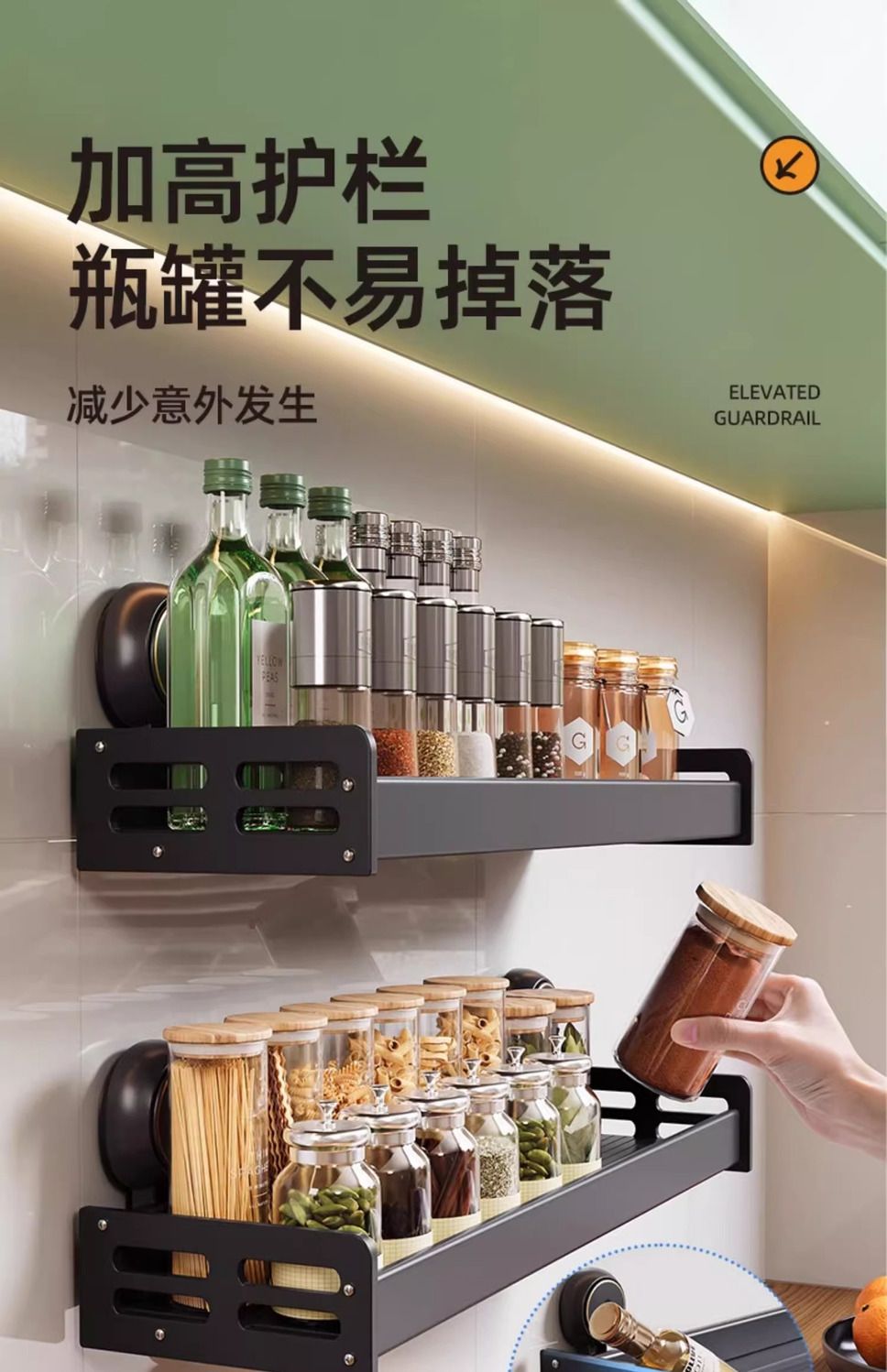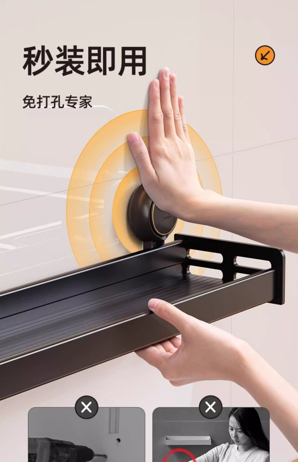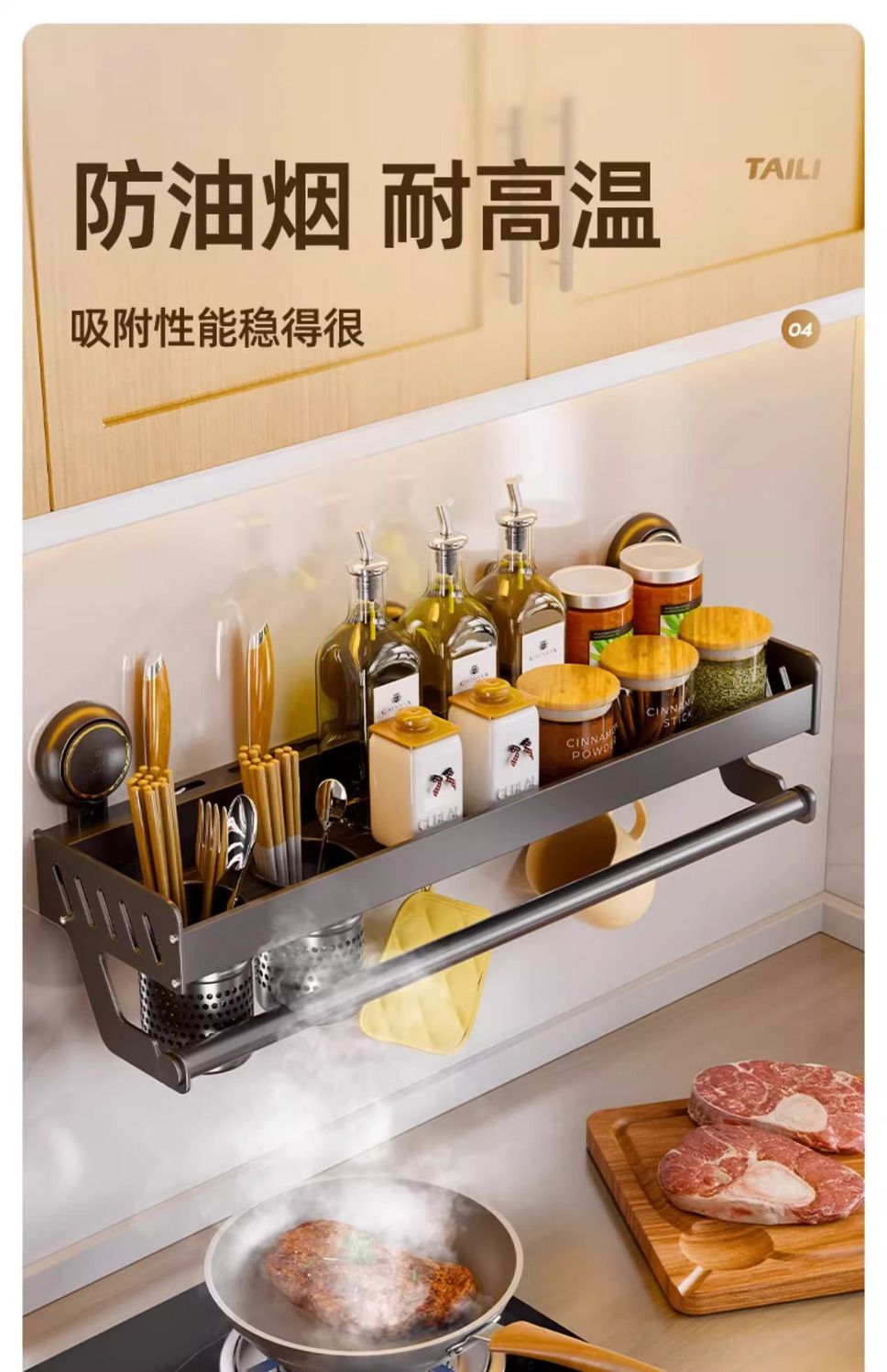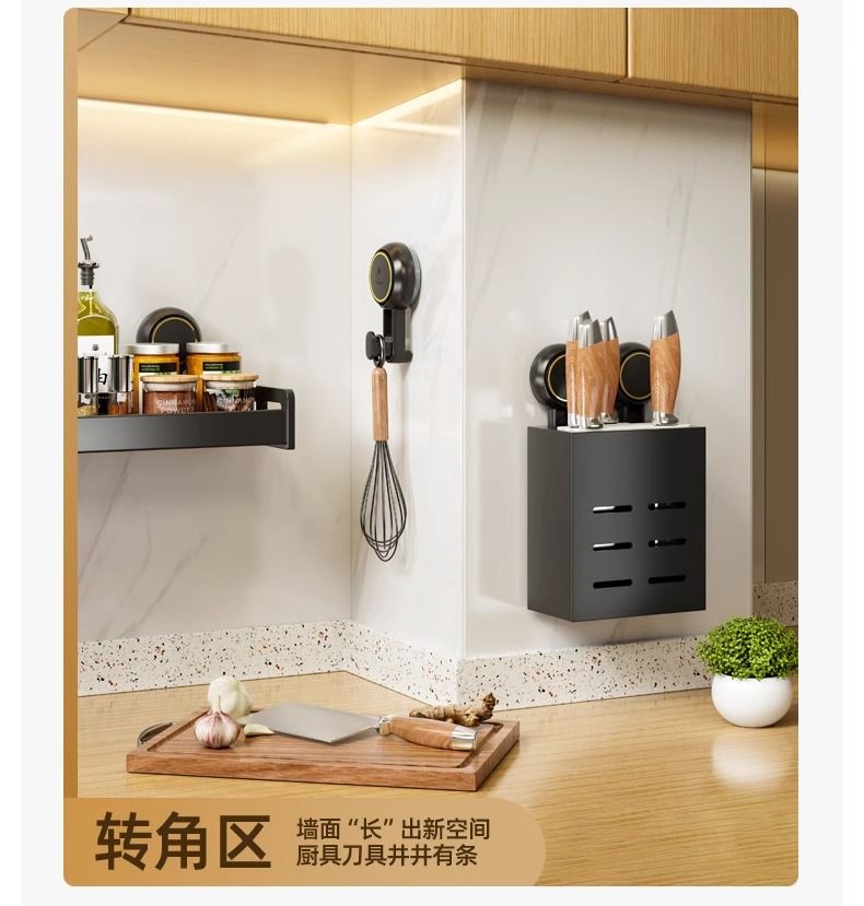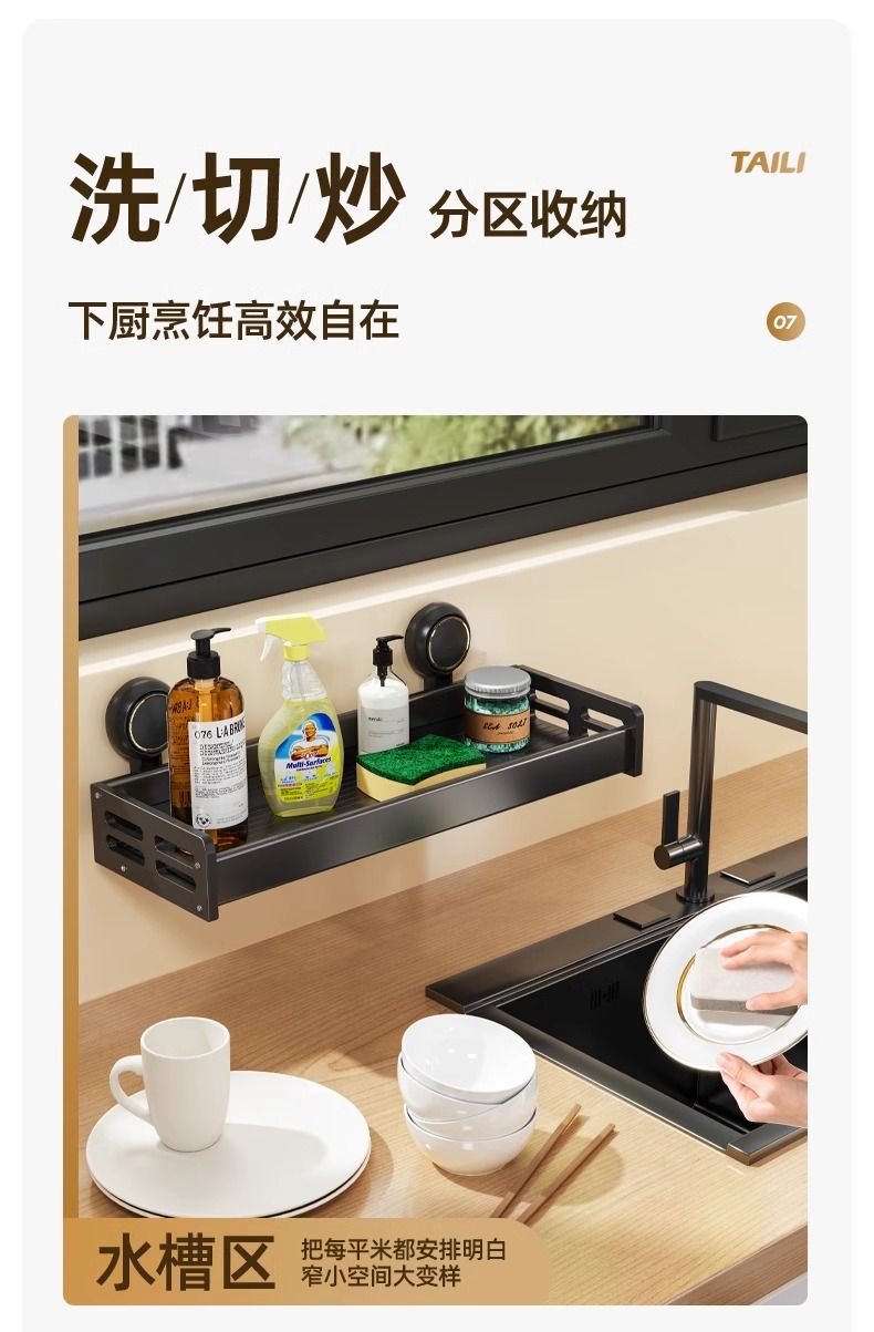 【48小时发货】太力厨房免打孔吸盘置物架壁挂式调料架家居锅盖刀架墙上收纳架子