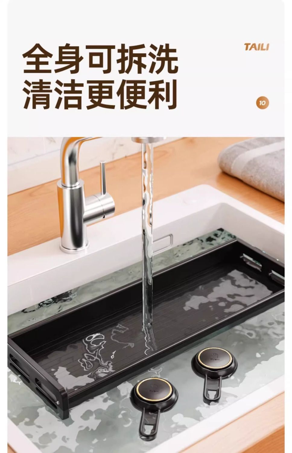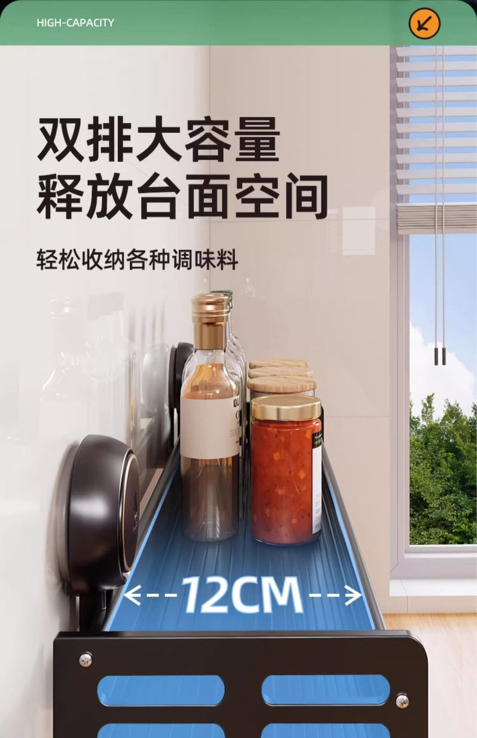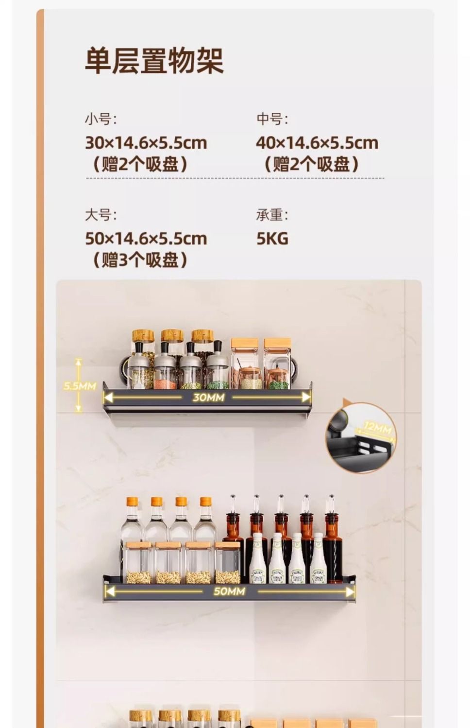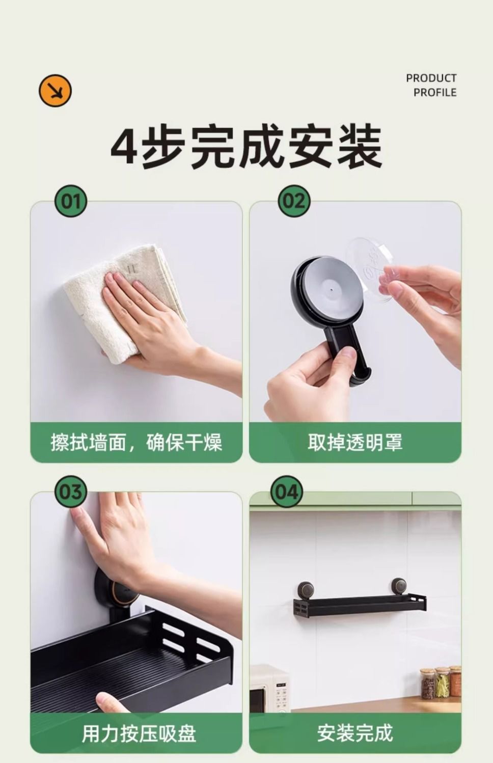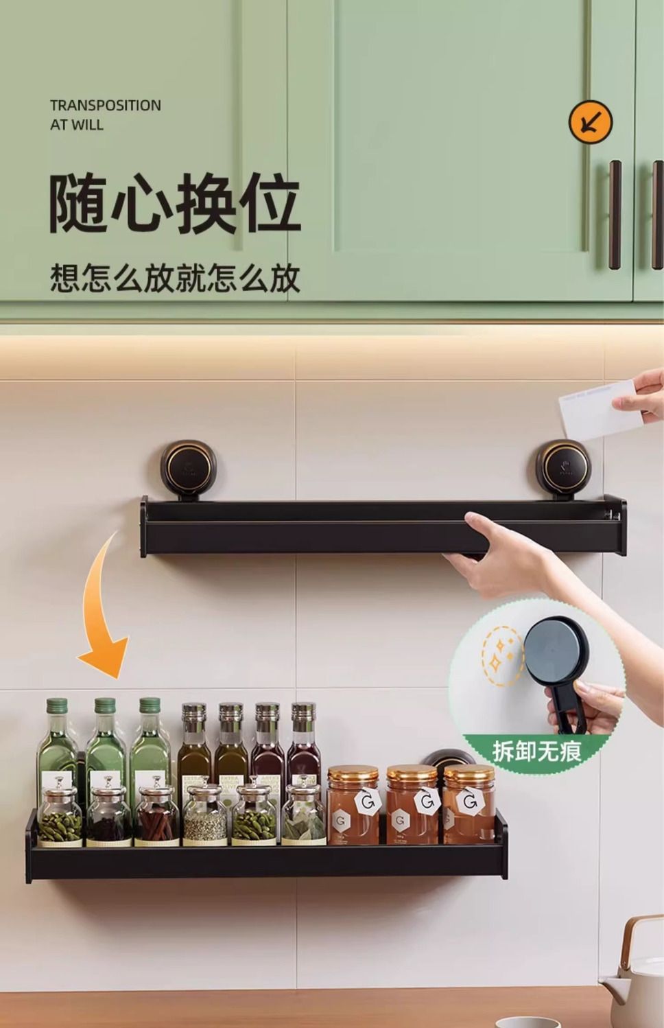 【48小时发货】太力厨房免打孔吸盘置物架壁挂式调料架家居锅盖刀架墙上收纳架子