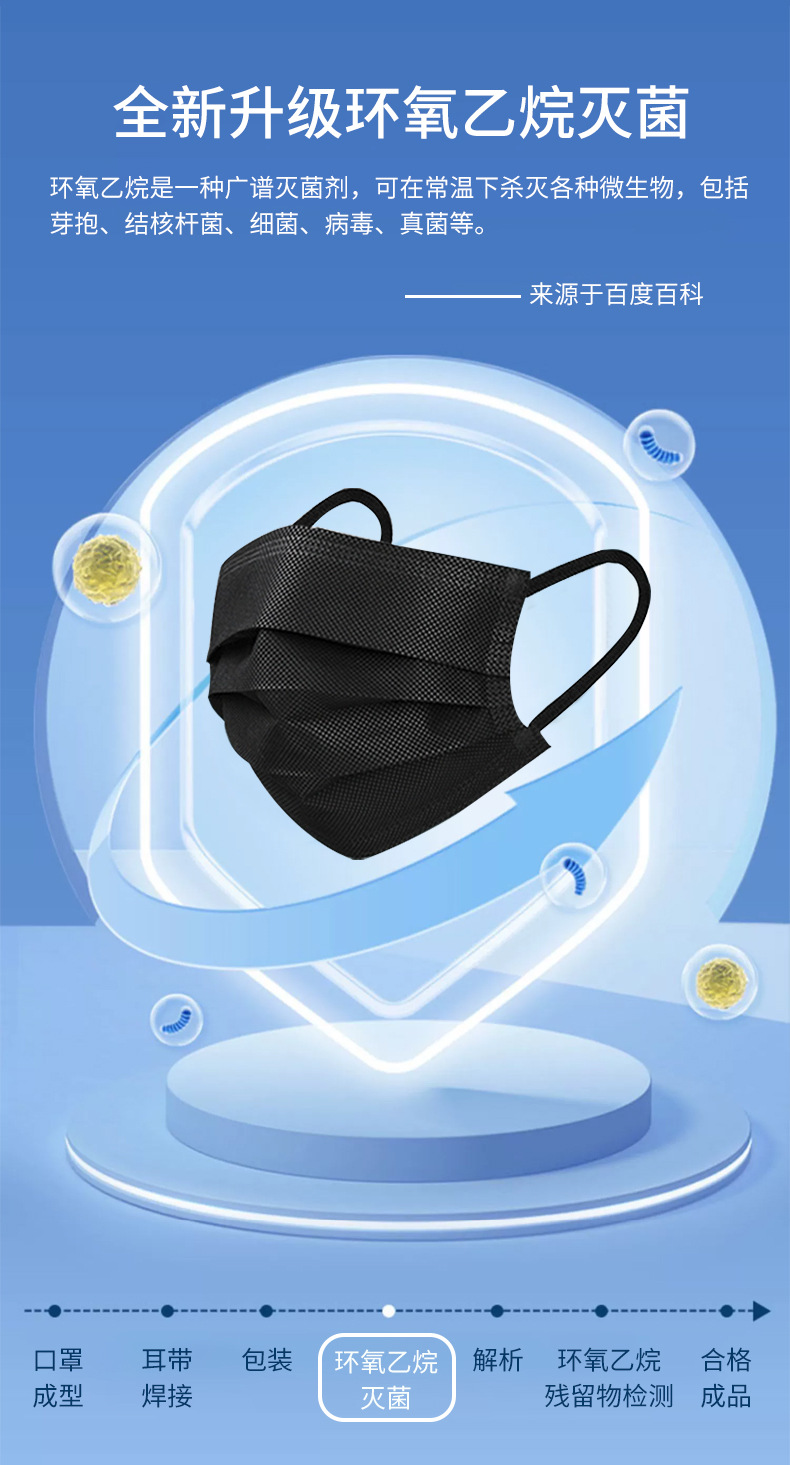 医用外科 50只黑色口罩 精品盒装 加宽耳带独立包装一次性三层医用级口罩