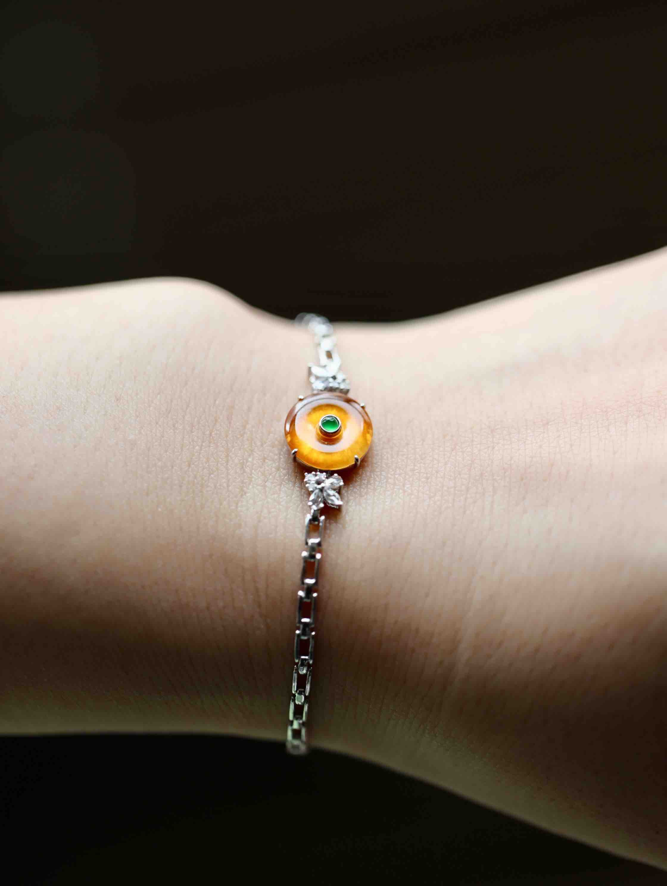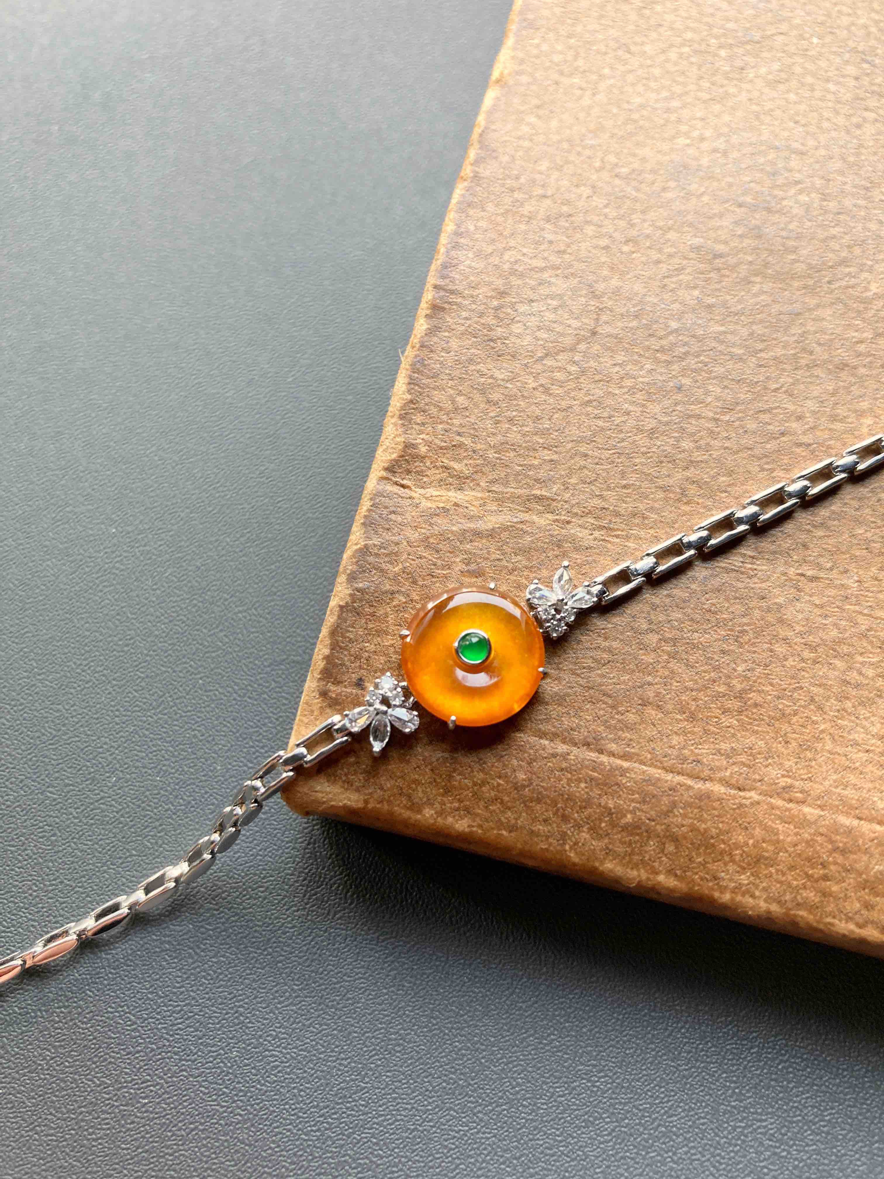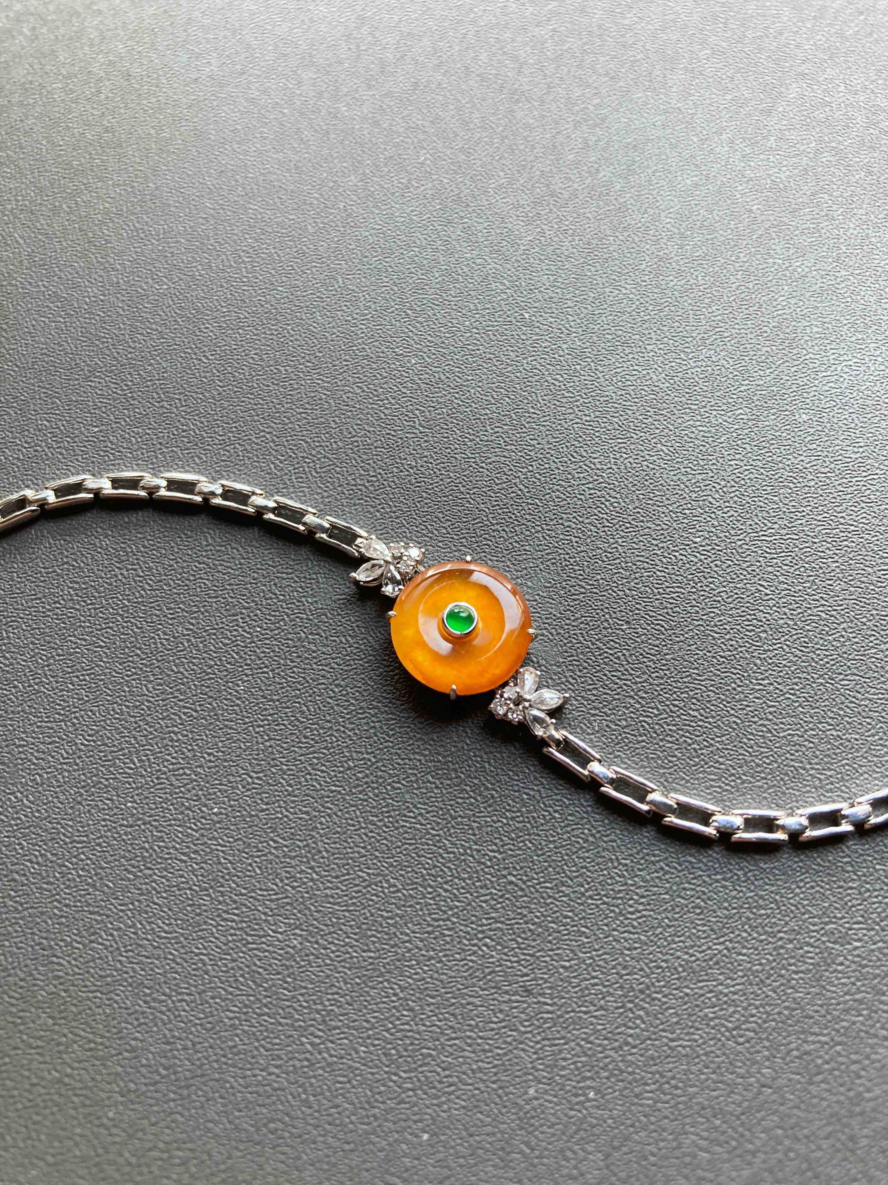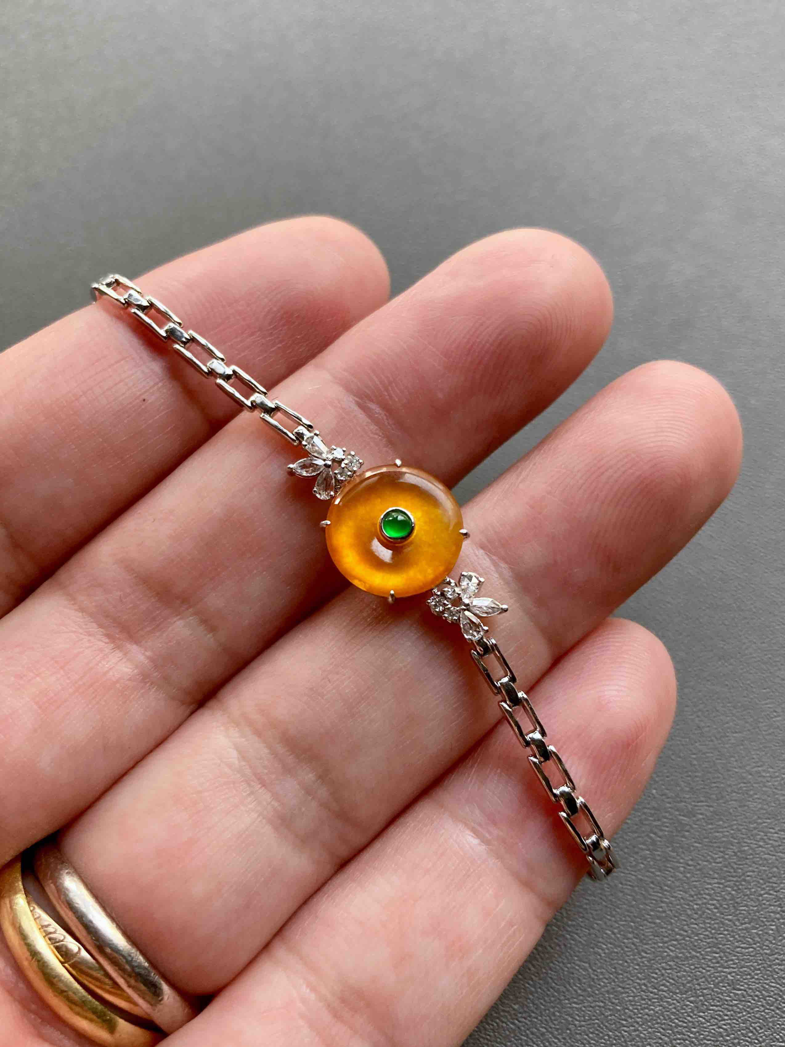 玻璃种芬达色黄翡平安扣手链18k白金钻石镶嵌