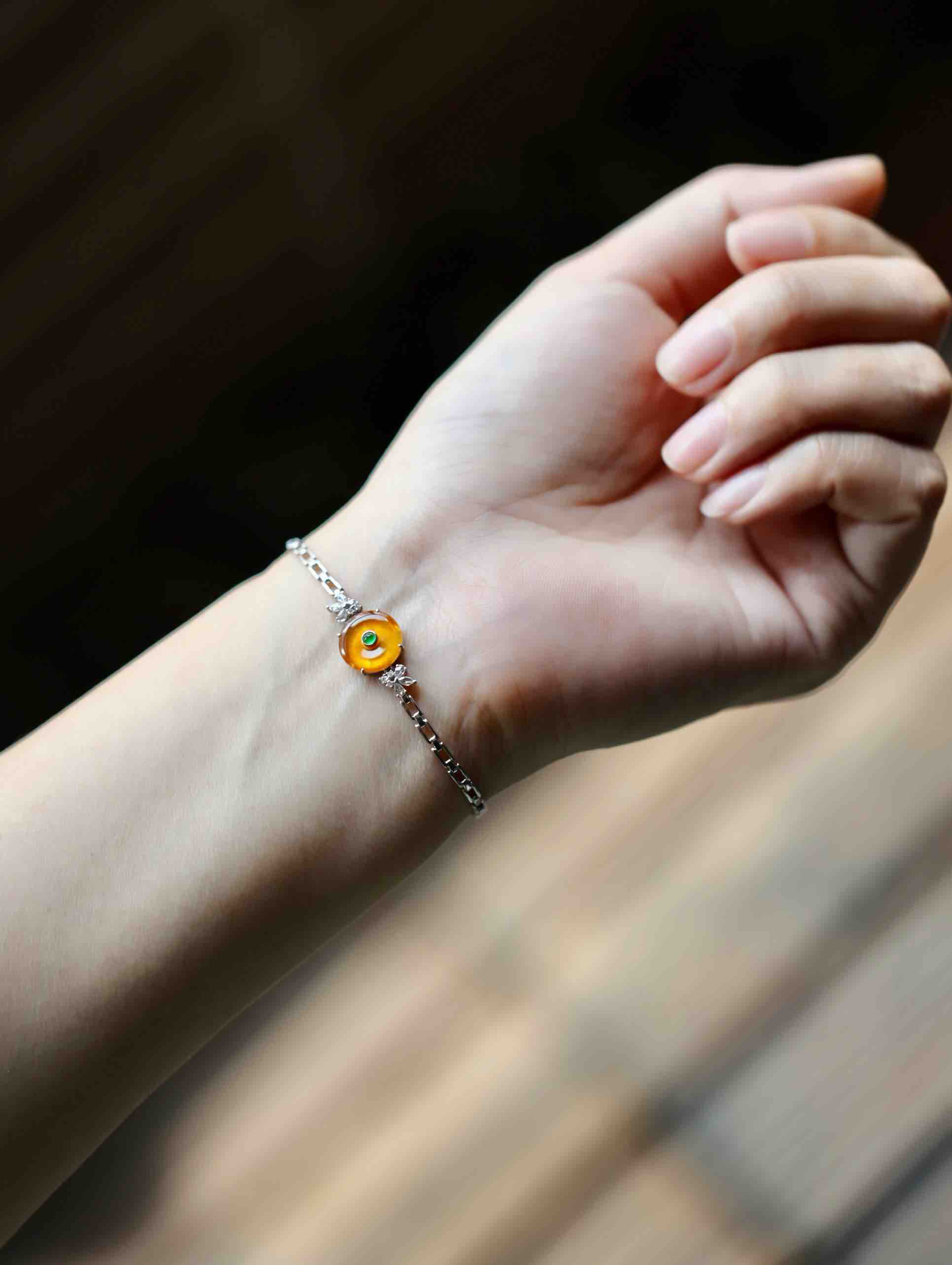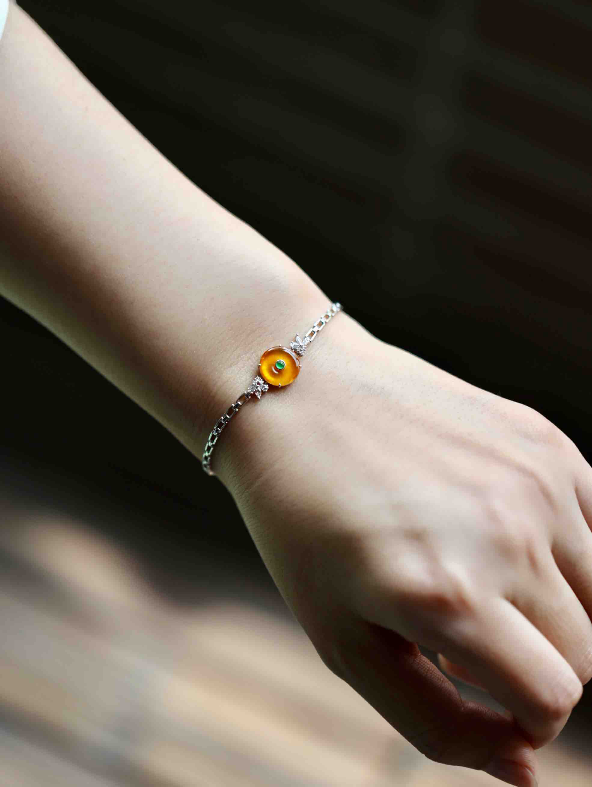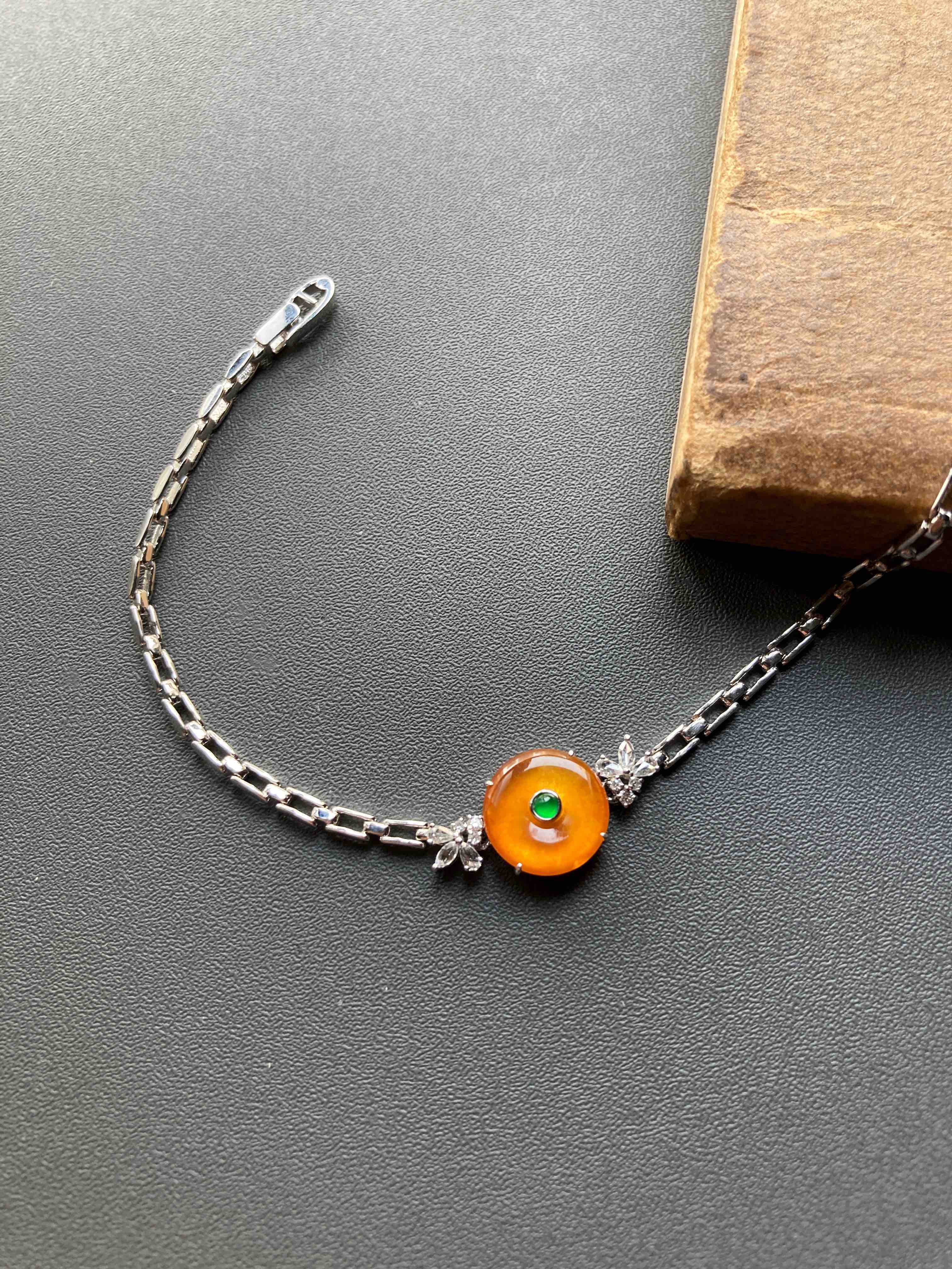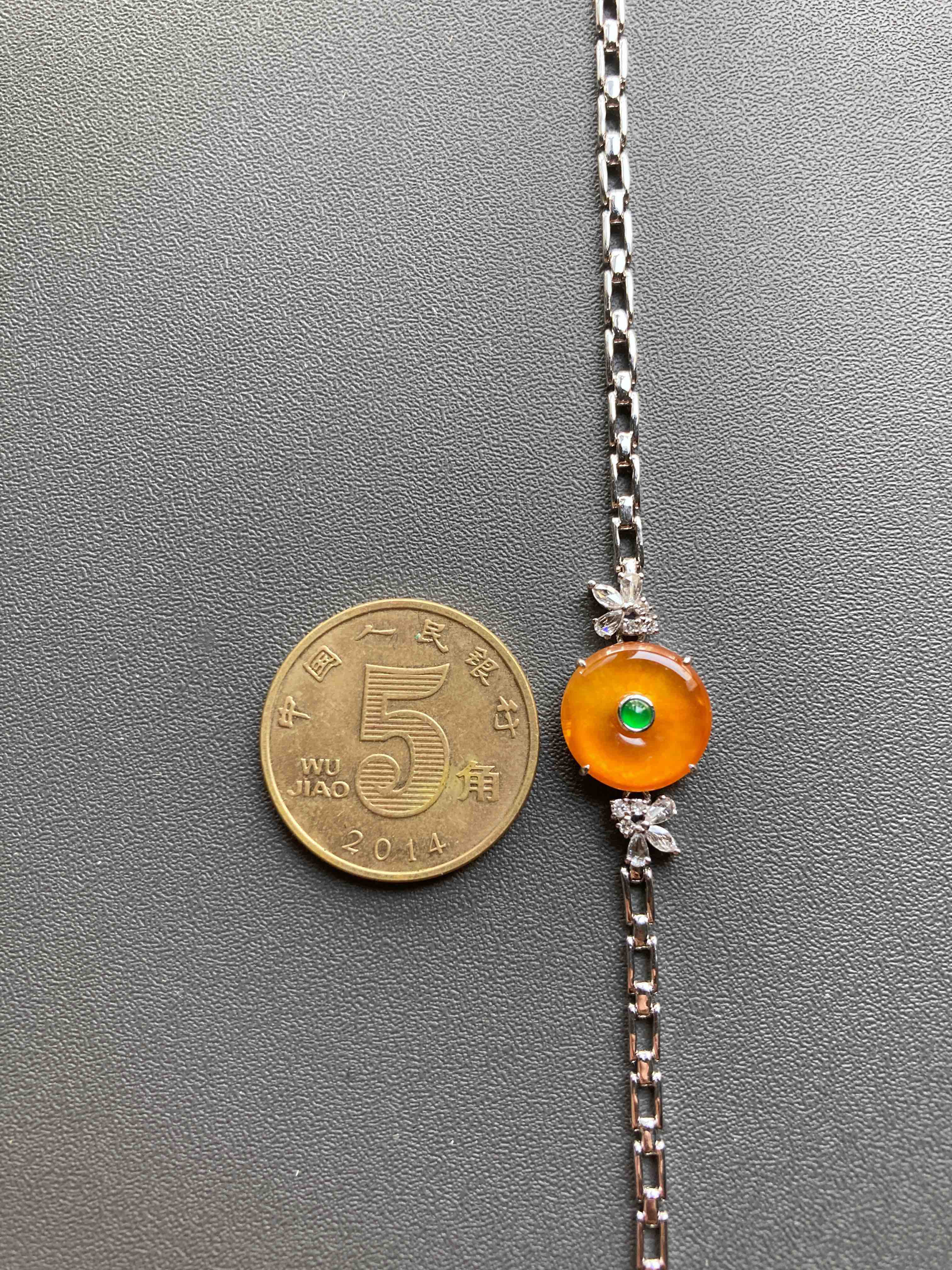 玻璃种芬达色黄翡平安扣手链18k白金钻石镶嵌