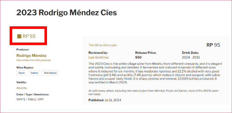 RP95高分!西班牙膜拜车库庄!希思阿尔巴利诺干白 Rodrigo Méndez Cíes Albarino 2023