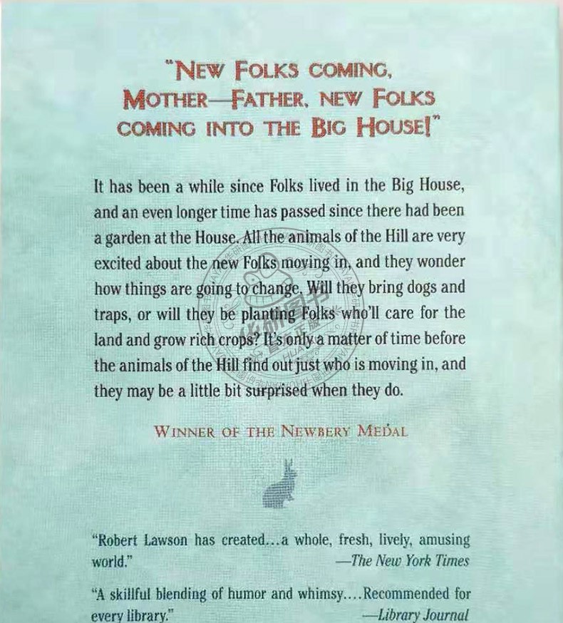 小兔希尔 英文原版 Rabbit Hill 兔子坡 Robert Lawson 罗伯特罗素 英文版儿童文学小说故事书 纽伯瑞奖