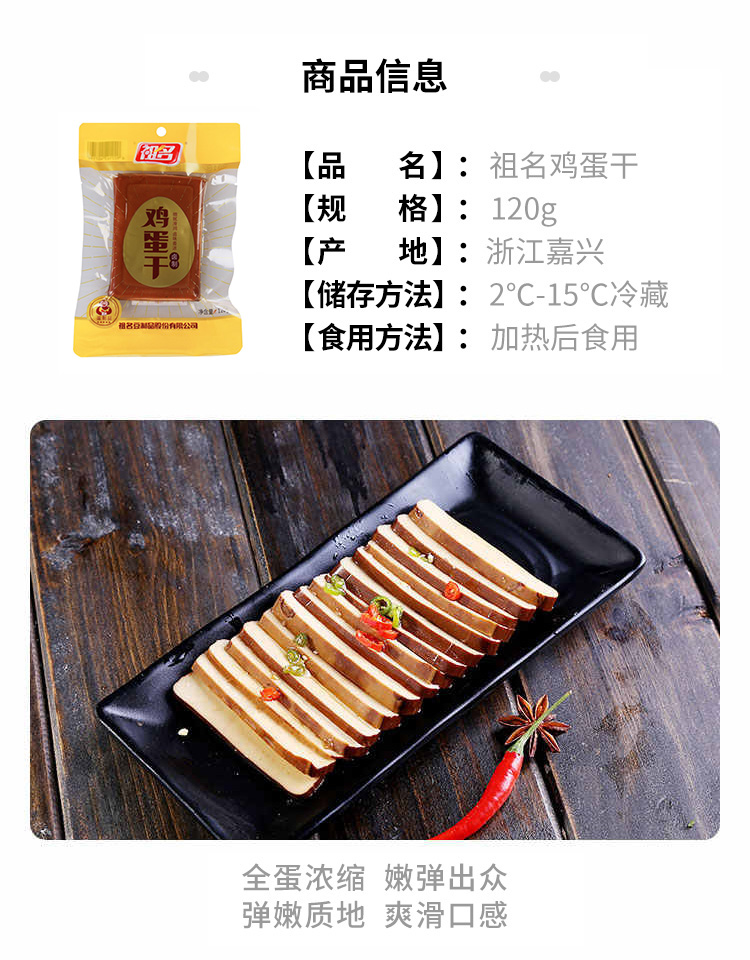 【3天内发货】祖名鸡蛋干 新鲜鸡蛋到鸡蛋干的华丽转变120g*5