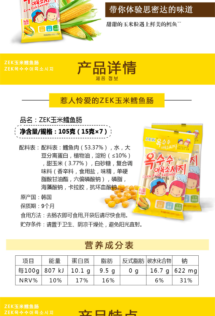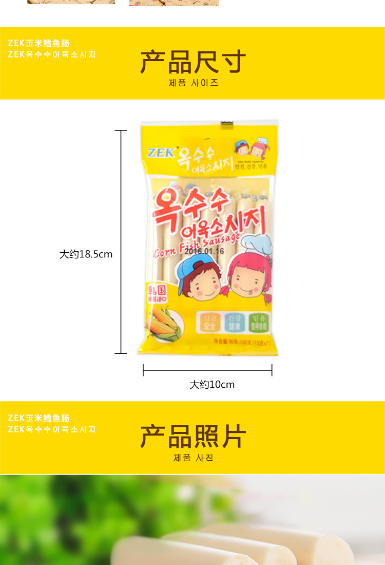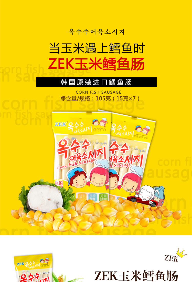 【韩国】原装进口ZEK玉米鳕鱼肠105g