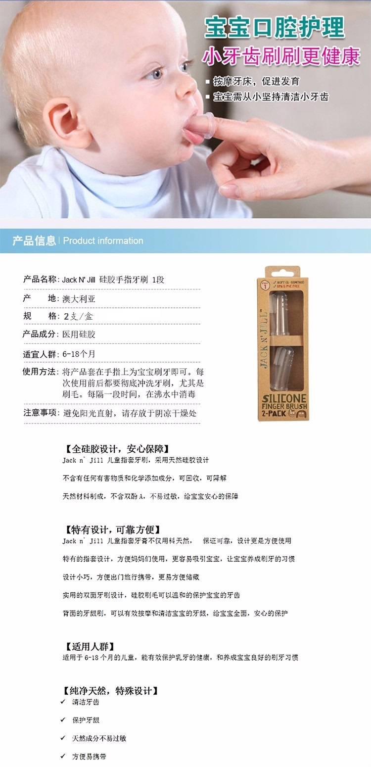 【保税仓】澳大利亚J&J儿童6-18个月乳牙手指牙刷 2支/盒
