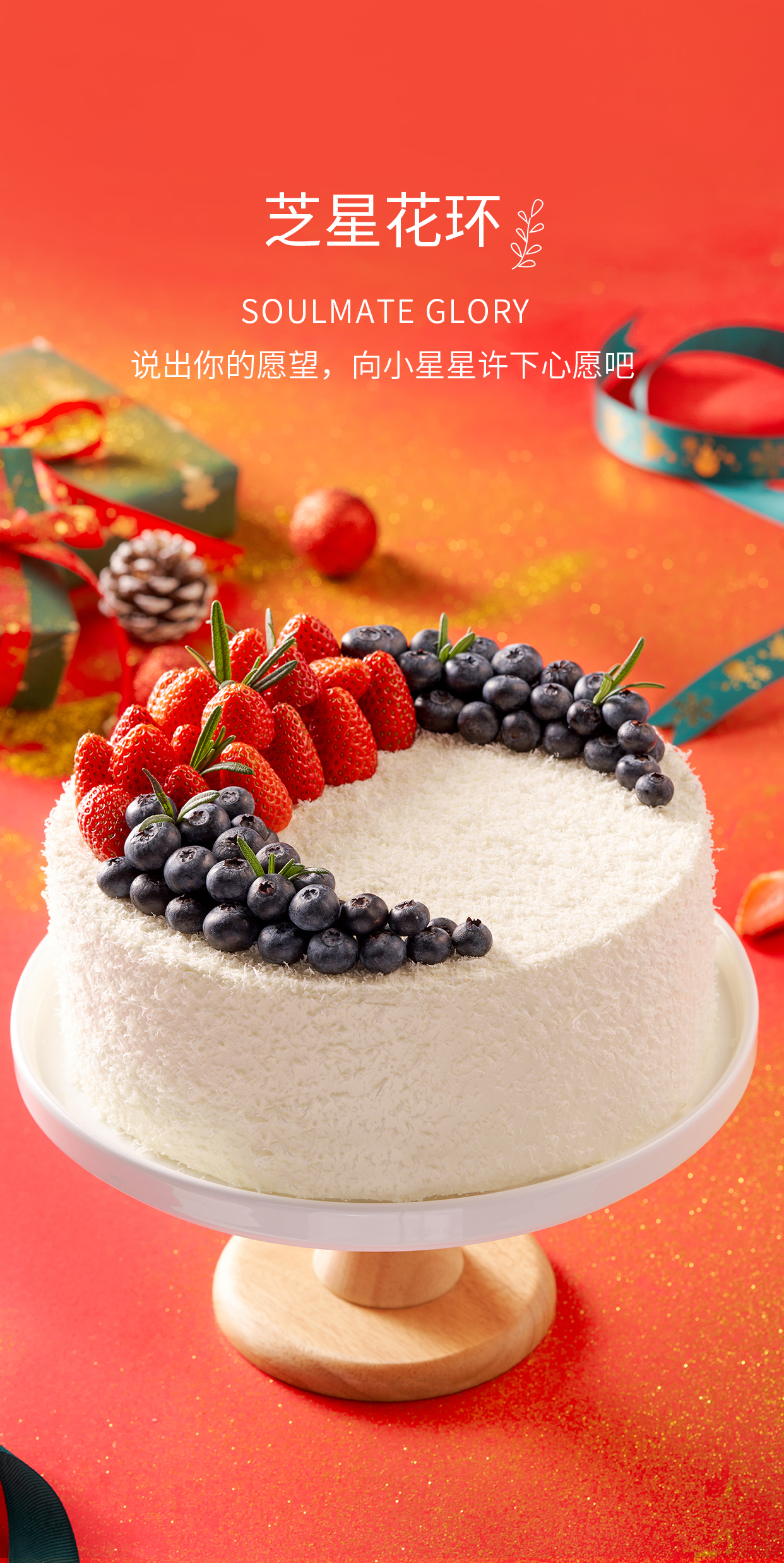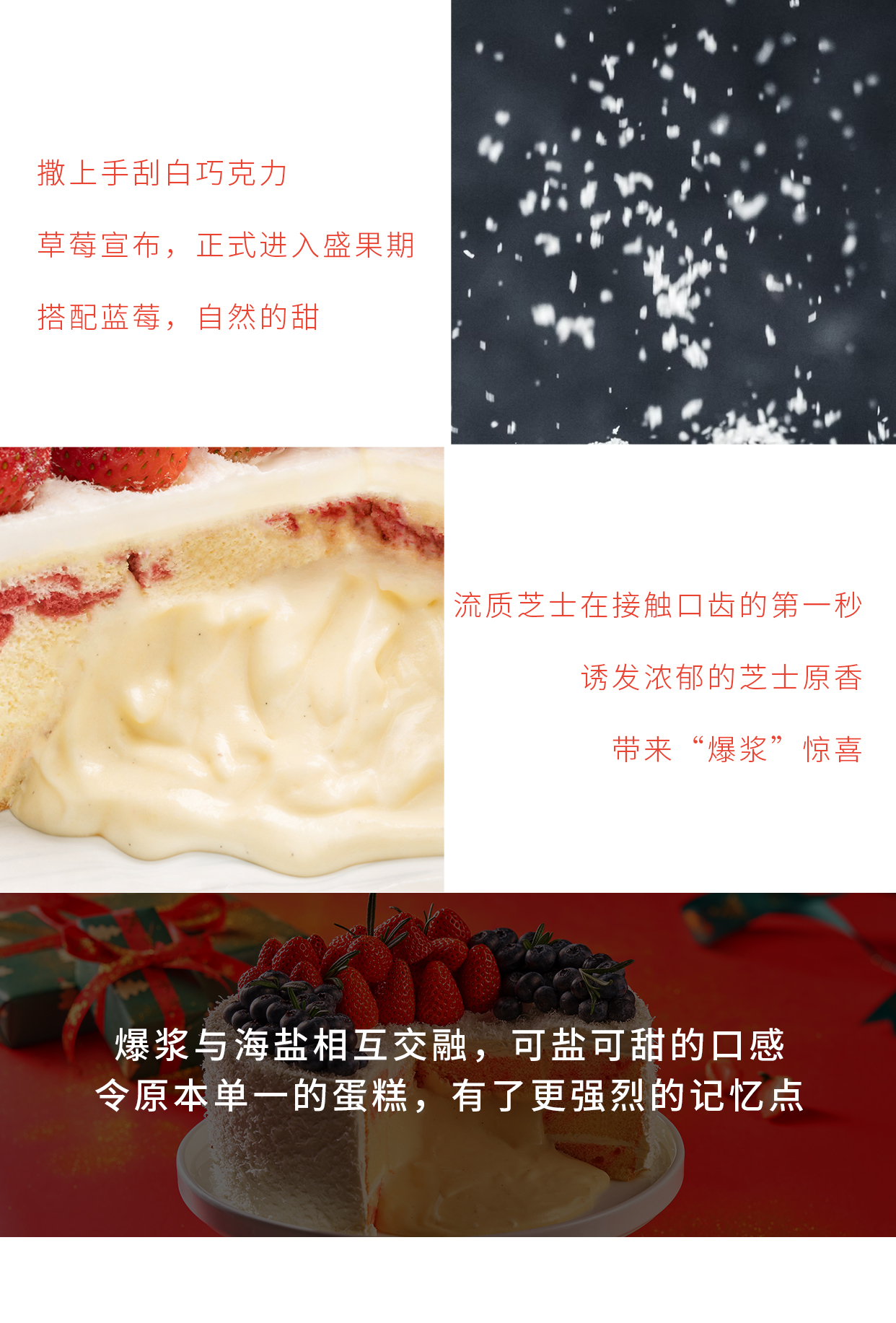 【芝星花环】爆浆海盐蛋糕 爆酱与海盐相互交融,可盐可甜的口感,撒上手刮白巧克力,搭配蓝莓、草莓自然的甜,诱发浓郁的咸甜奶香,带来爆浆惊喜。(海口幸福西饼蛋糕)