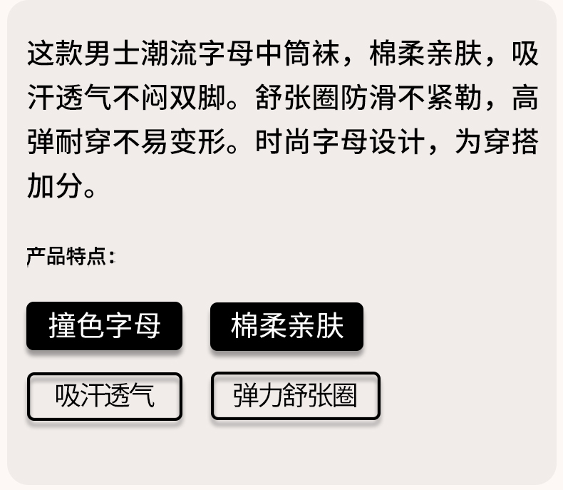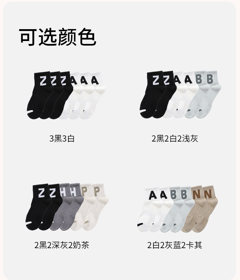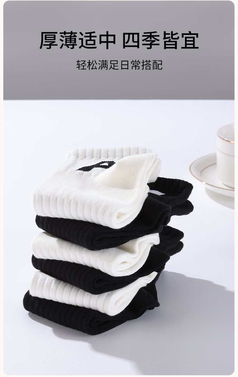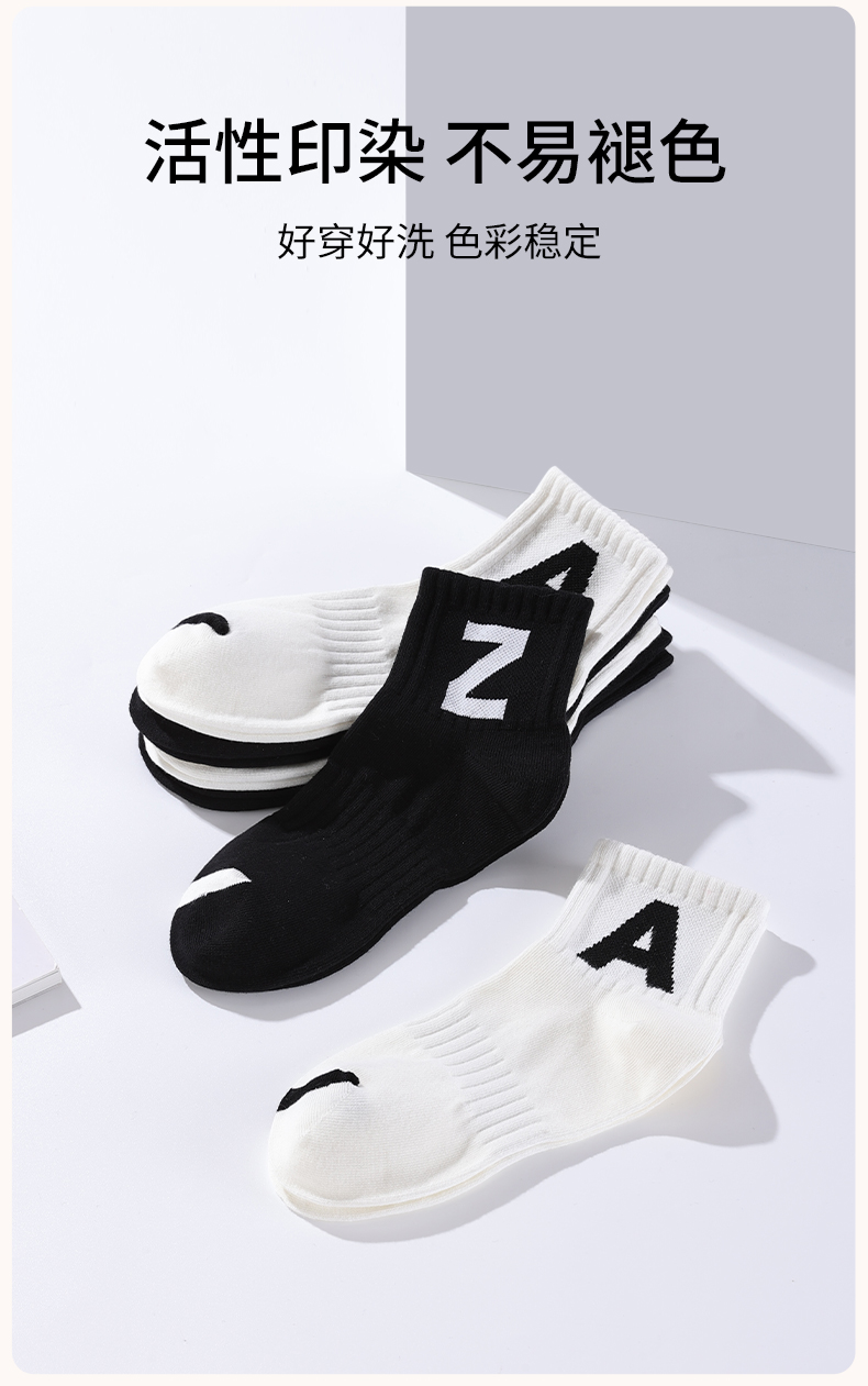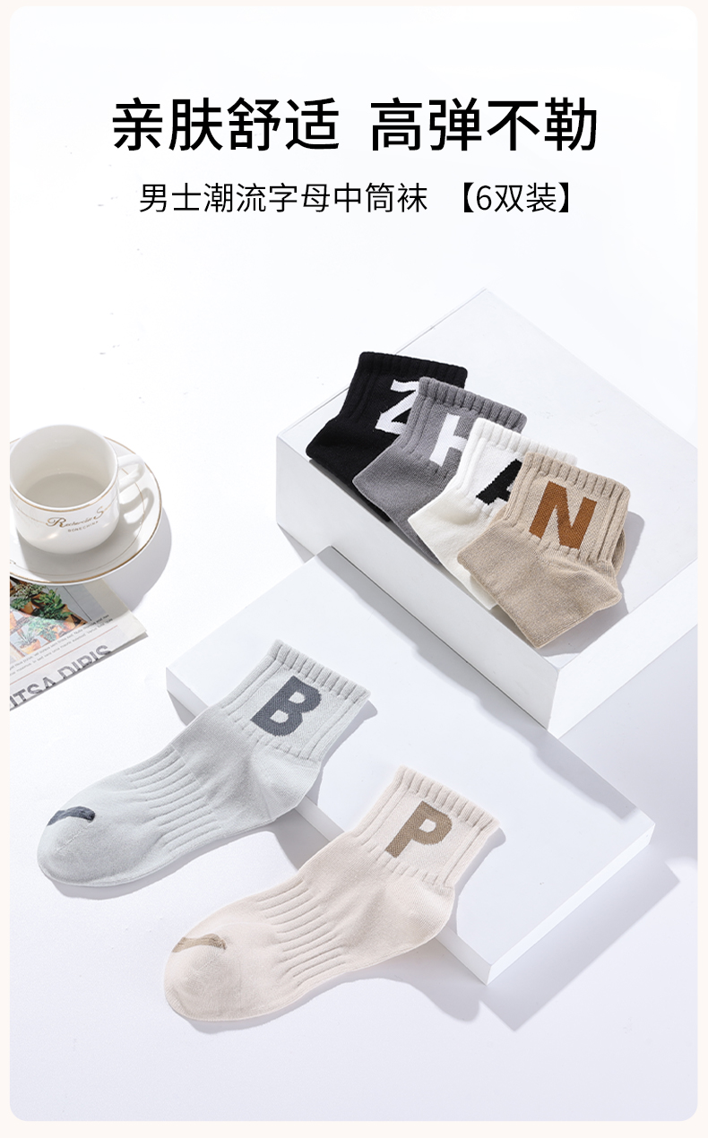 雅黛丽袜子男士秋冬款棉质透气亲肤中筒袜休闲运动袜黑色字母男袜