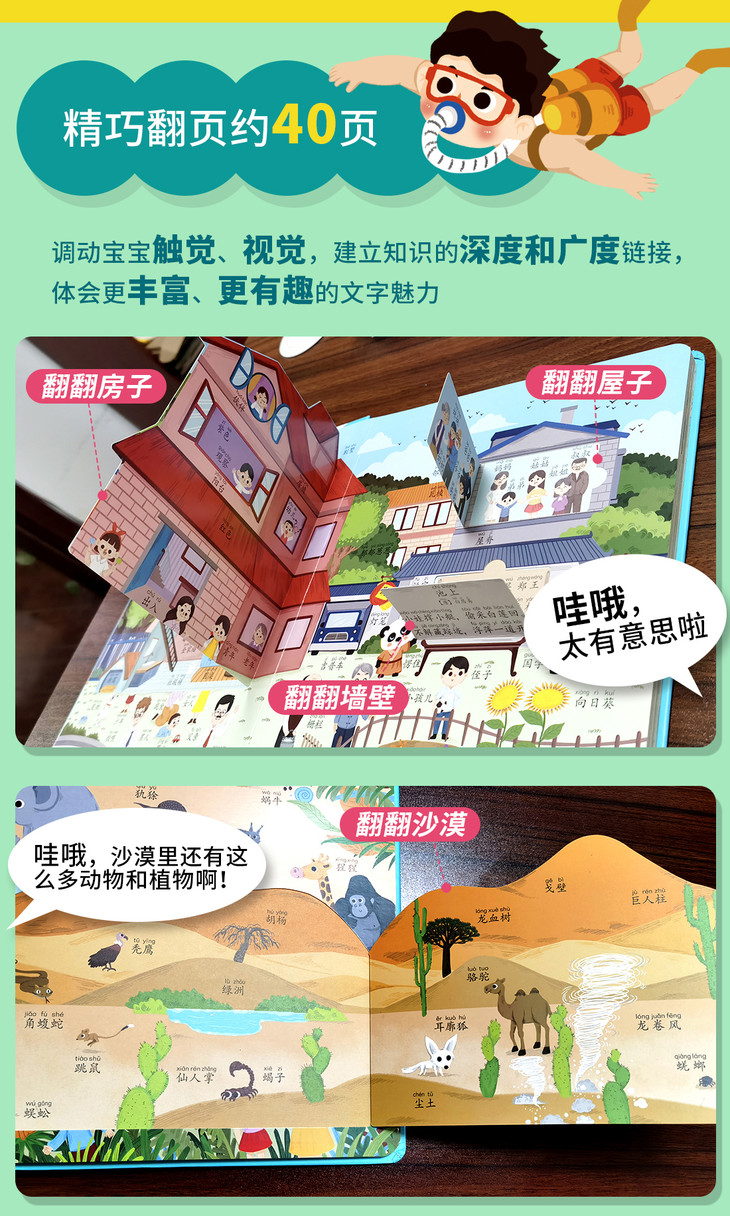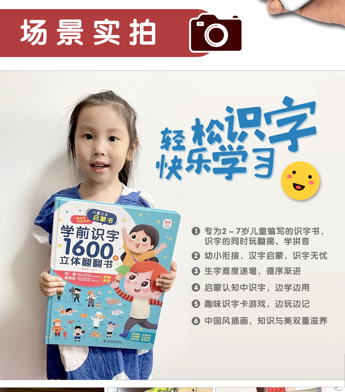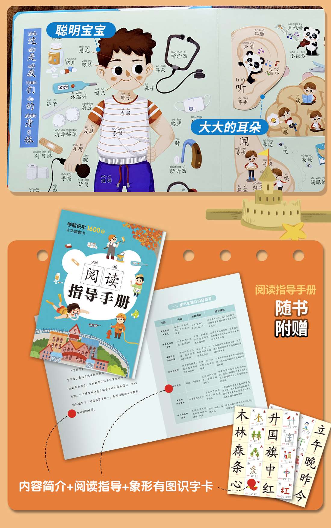 学前识字1600字立体翻翻书 识字书幼儿认字 看图识字启蒙神器幼儿园识字大王教材 儿童认汉字绘本宝宝识字书籍卡片识千字 象形1200