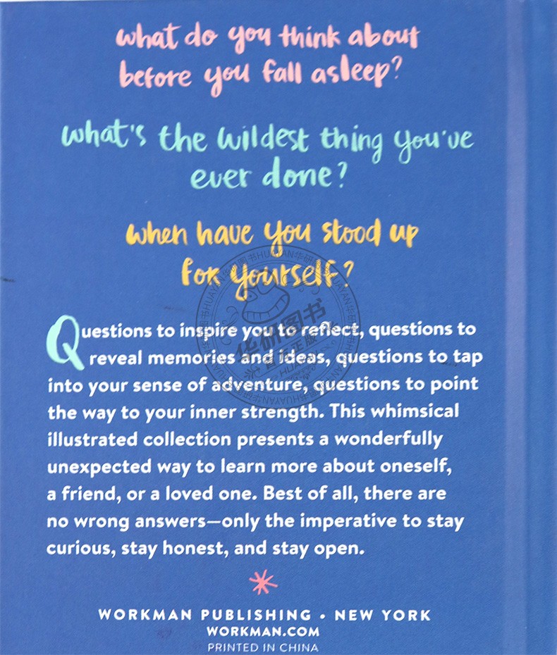 深刻的问题可以激发自我反思,激发思想,zui重要的是,揭示令人惊讶的真相。这是一本包含165个问题的书,有的很温馨,有的很傻,有的出人意料的具有启发性,这些问题将开启心灵,到达更深层次的自我认识。没有所谓的“正确”答案——重点是保持好奇心,保持开放的心态去了解自己或朋友、伴侣或室友。有些问题会引发回忆:你住过多少个房子?你希望自己亲眼见证哪个历史事件?你做过的zui疯狂的事情是什么?今天发生过的zui好的三件事是什么?你什么时候捍卫过自己的权利?
