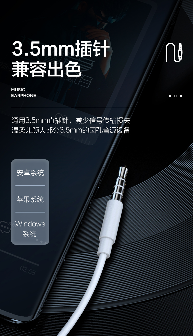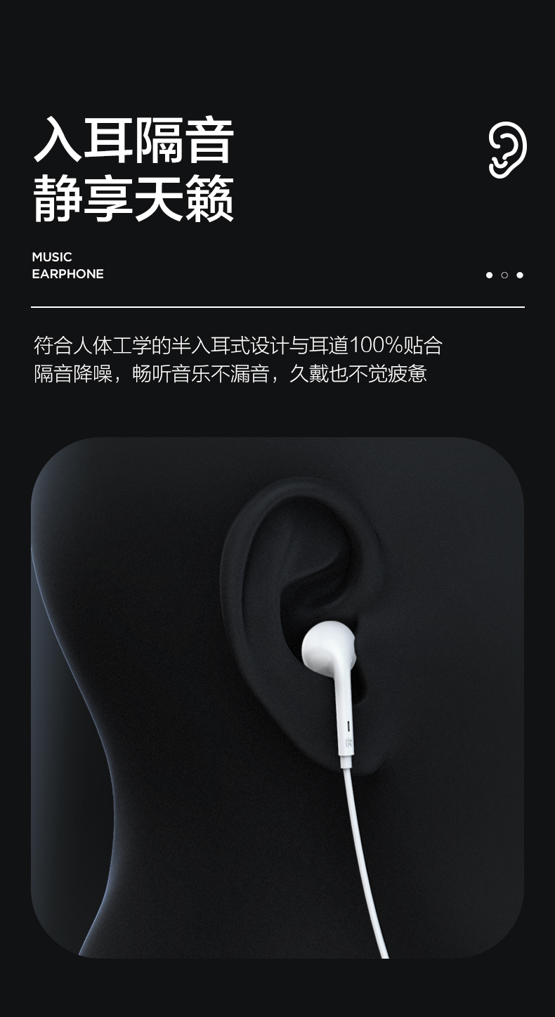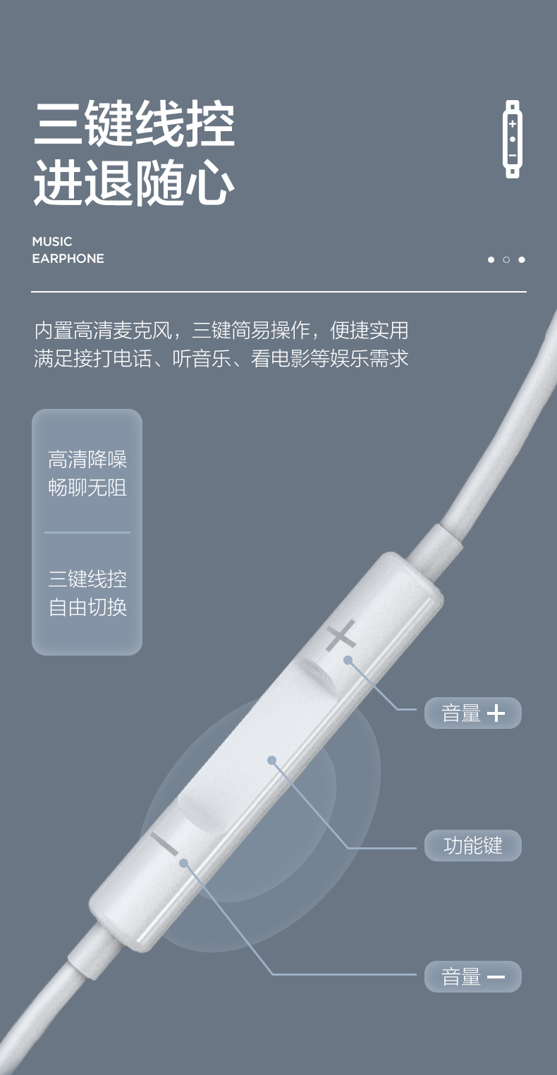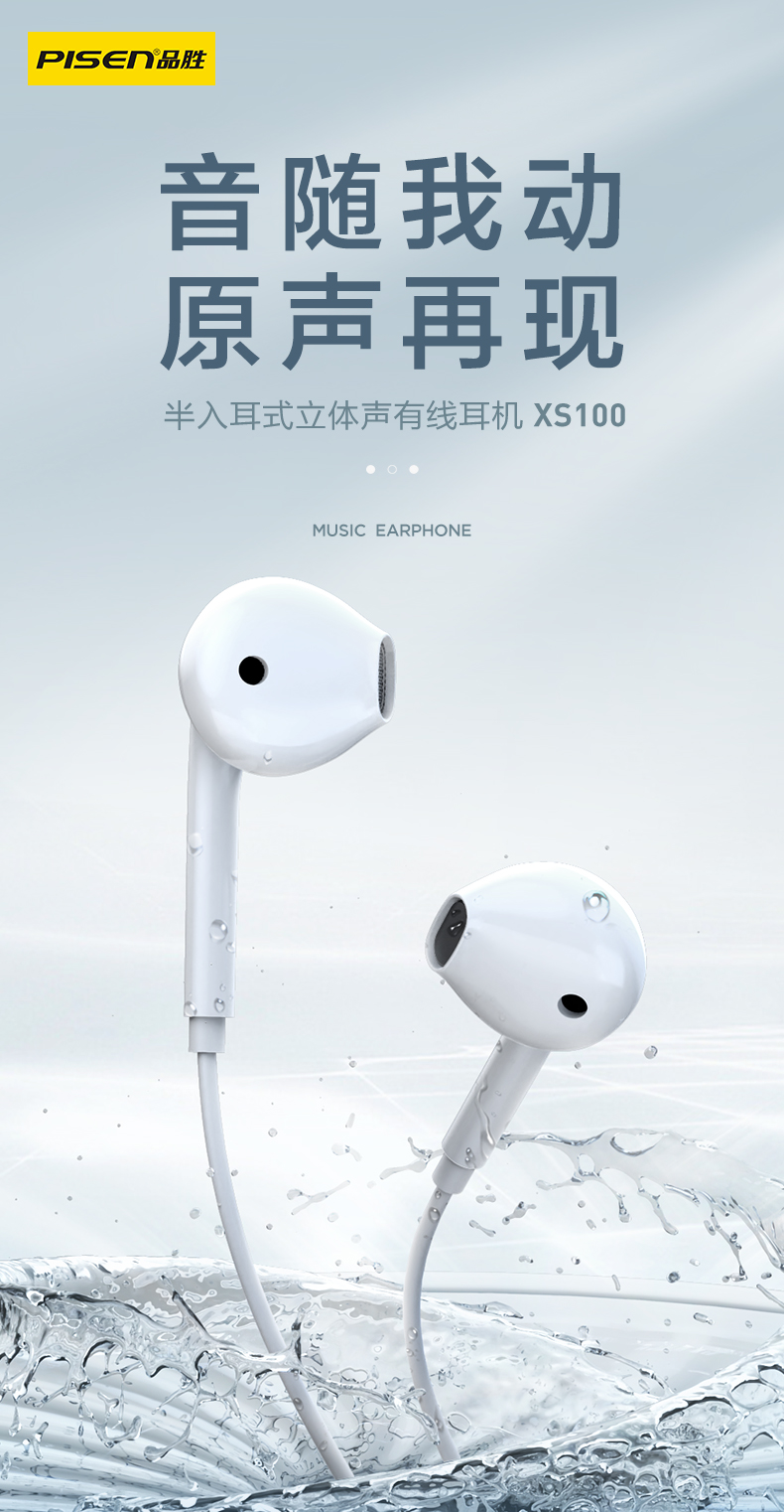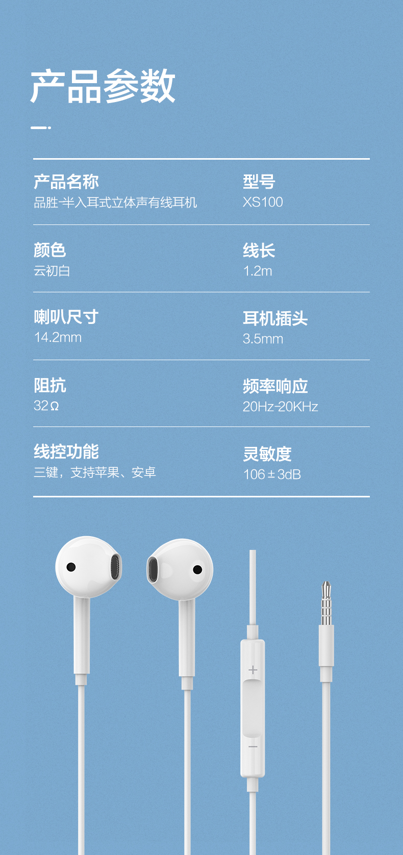 【暂时下架】品胜 半入耳式立体声有线耳机XS100 手机音乐耳机 三键线控 3.5mm接头