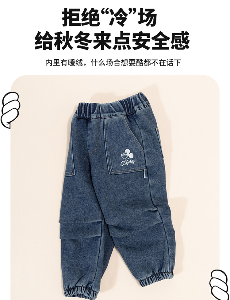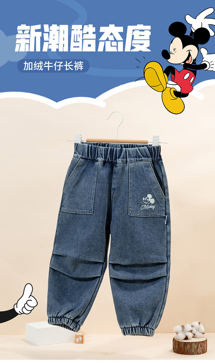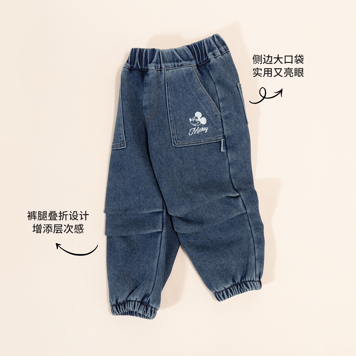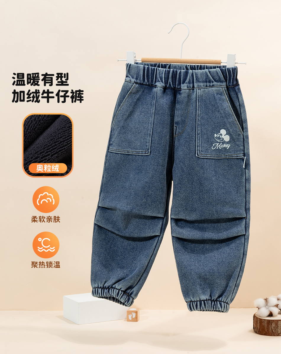 迪士尼童装男童仿牛仔裤加绒裤子韩版2024新款冬装中大儿童休闲裤ZD4DK001