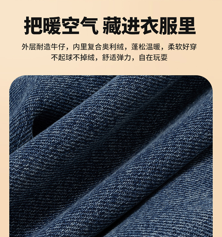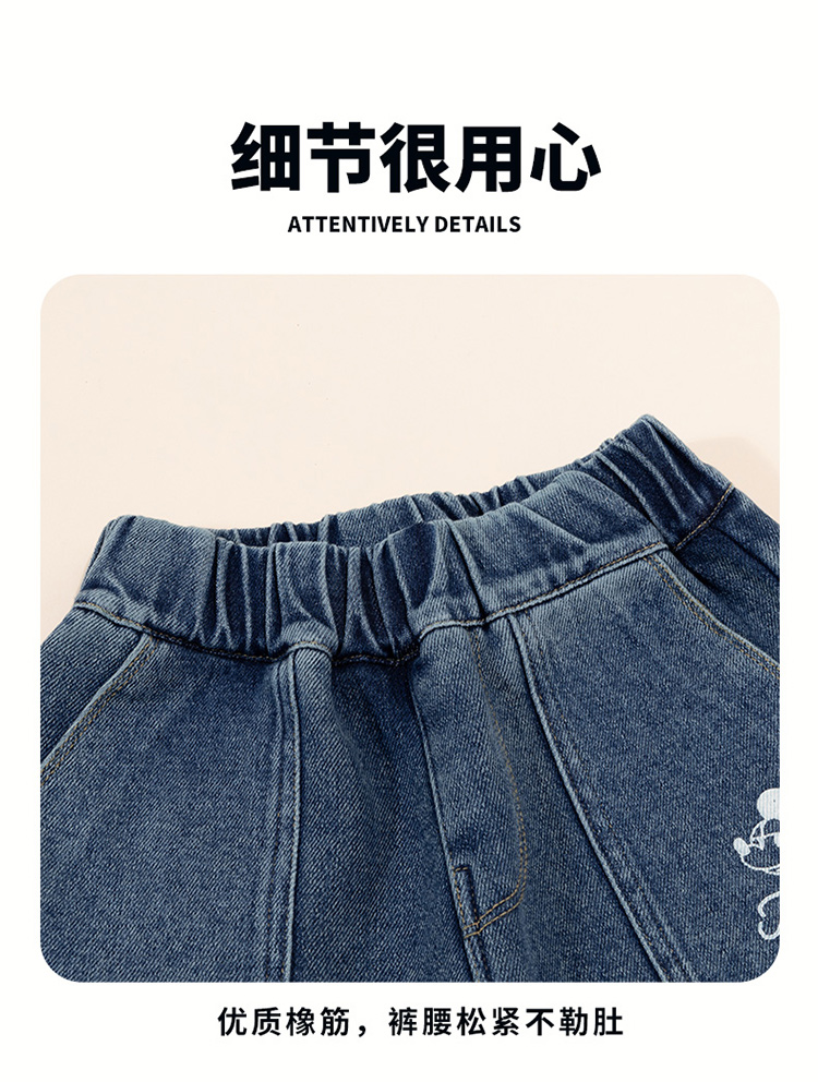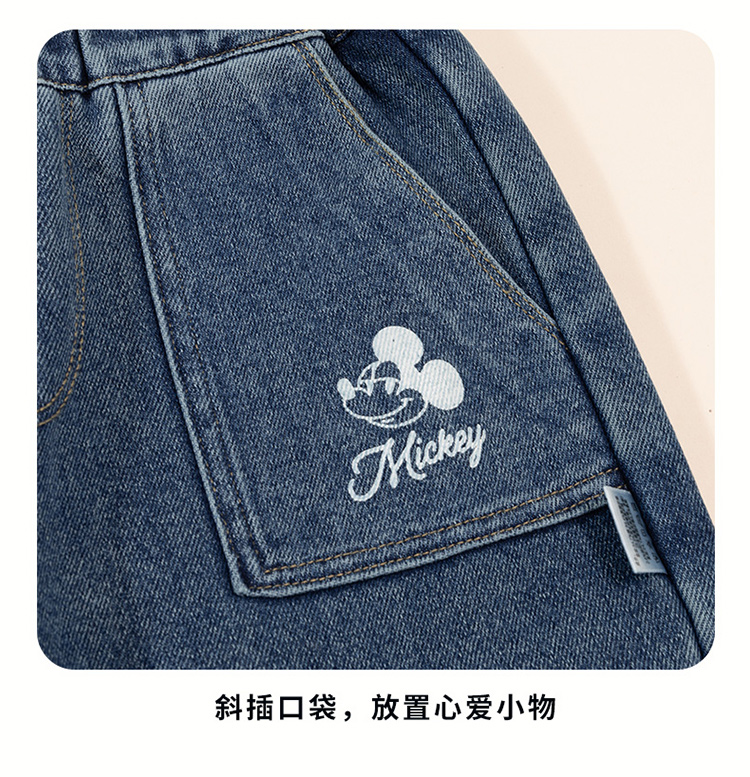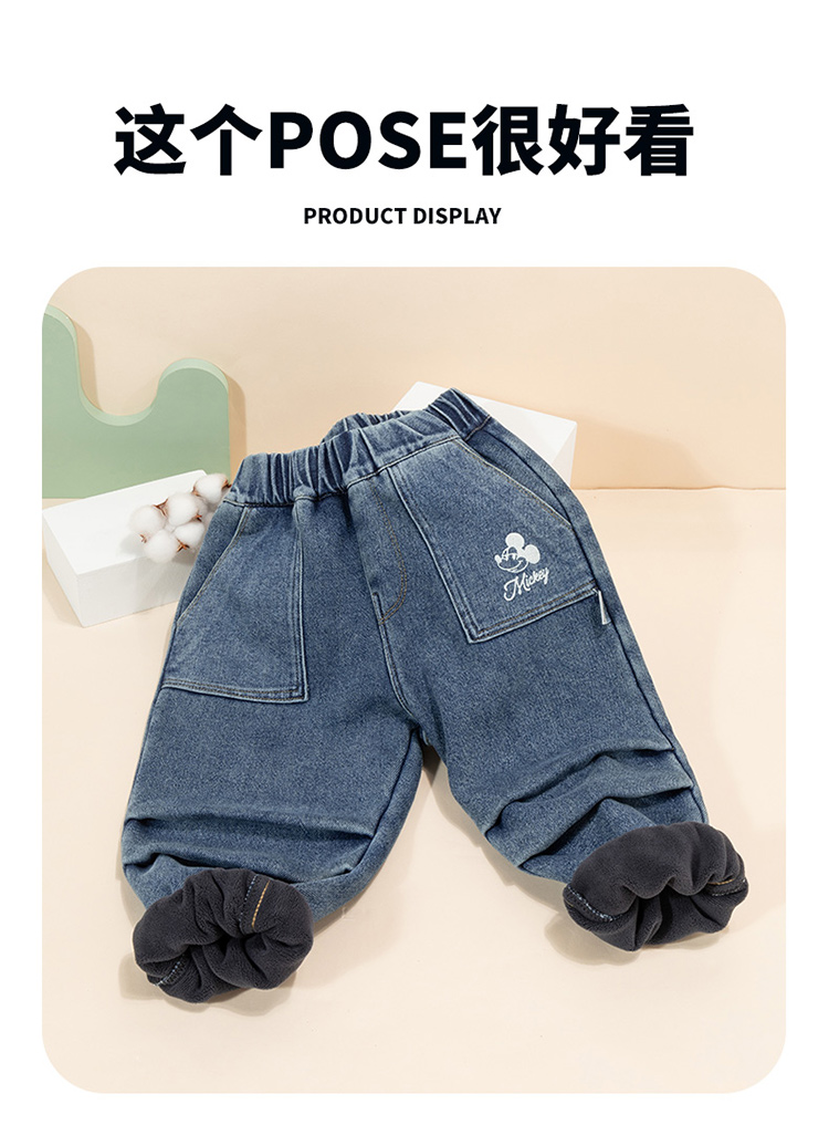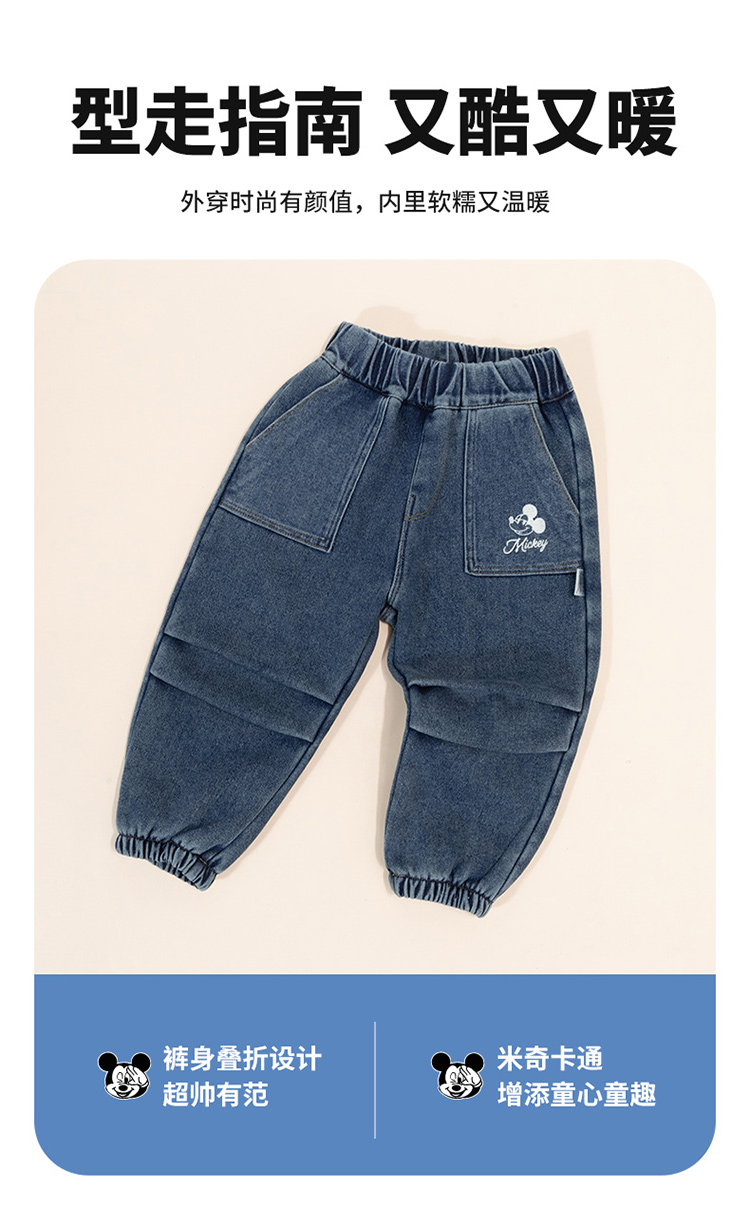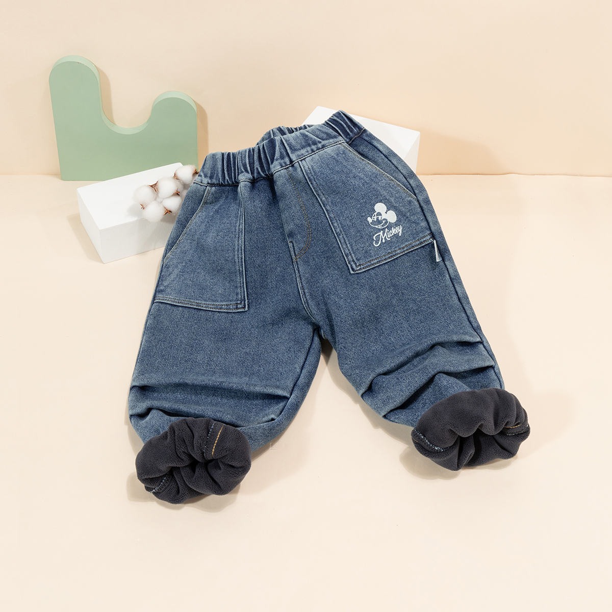 迪士尼童装男童仿牛仔裤加绒裤子韩版2024新款冬装中大儿童休闲裤ZD4DK001