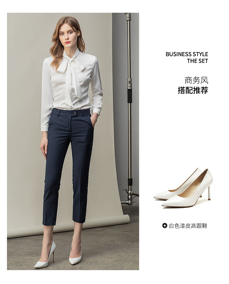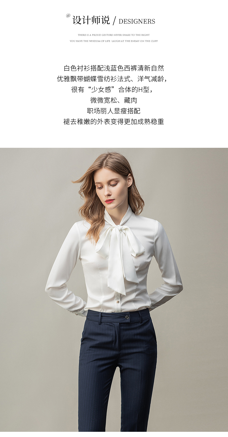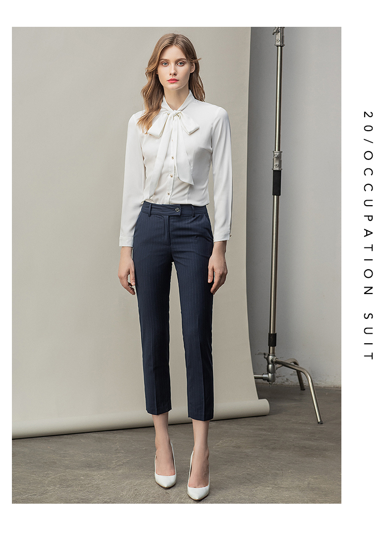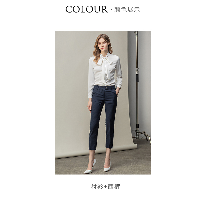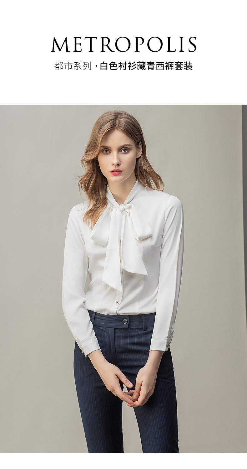 时尚白色衬衫藏青色西裤套装女秋季新款内搭衬衣上班干练白领正装
