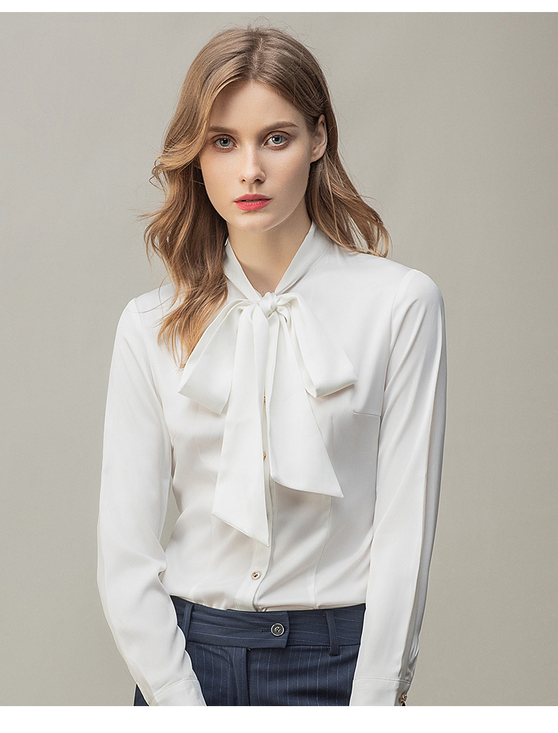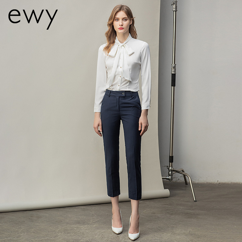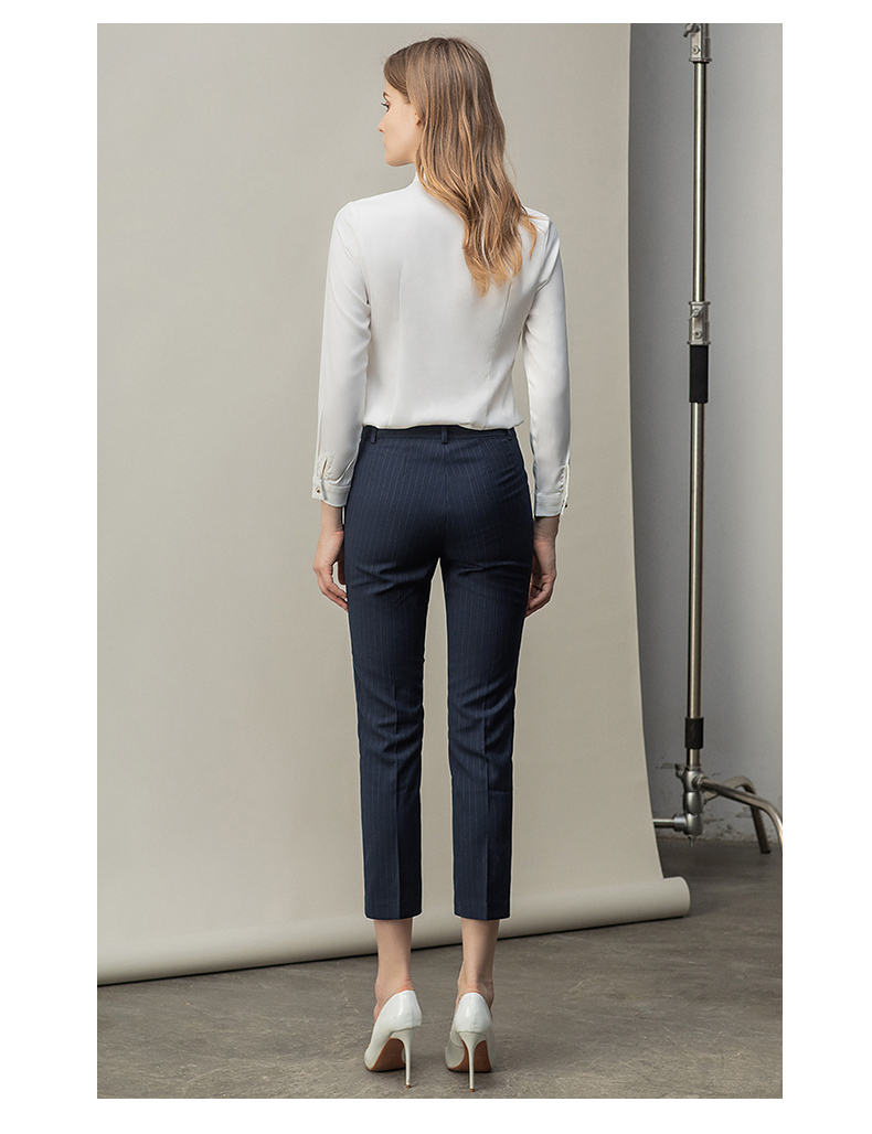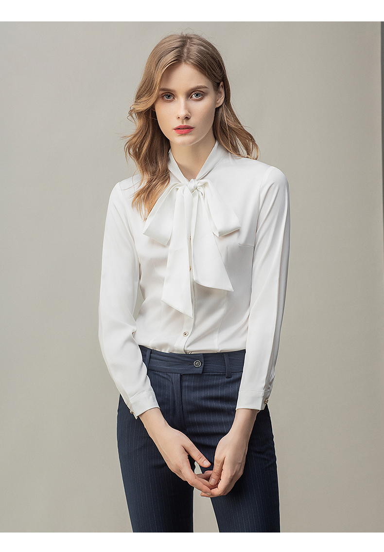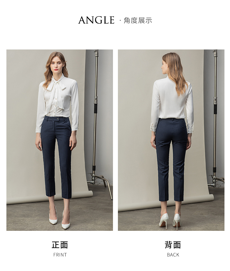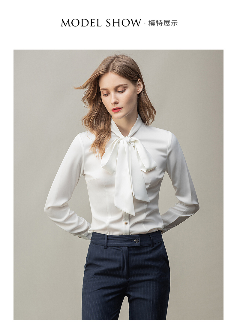 时尚白色衬衫藏青色西裤套装女秋季新款内搭衬衣上班干练白领正装