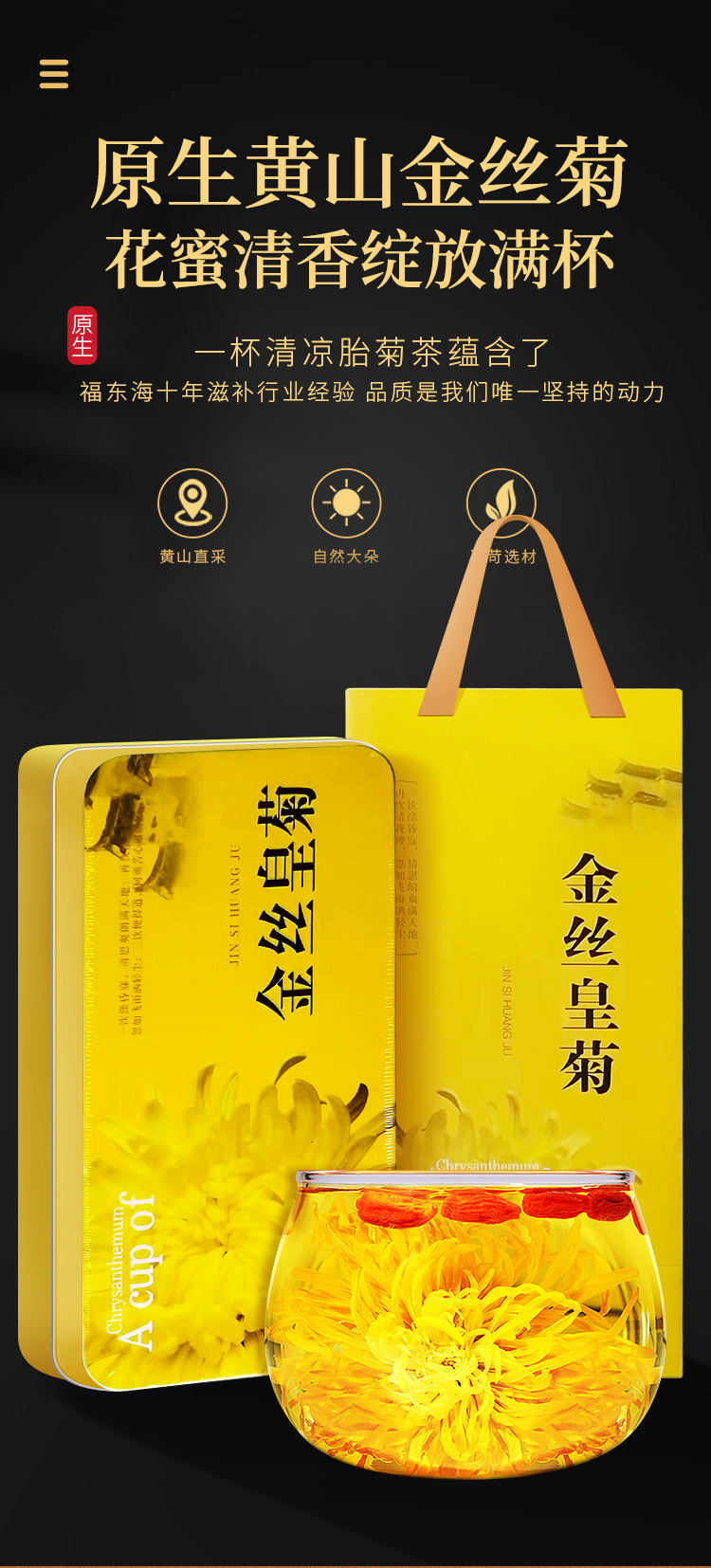 福东海 金丝皇菊 大朵贡菊一杯 花草茶 菊花茶黄山贡菊可配枸杞金银花杭白胎菊干
