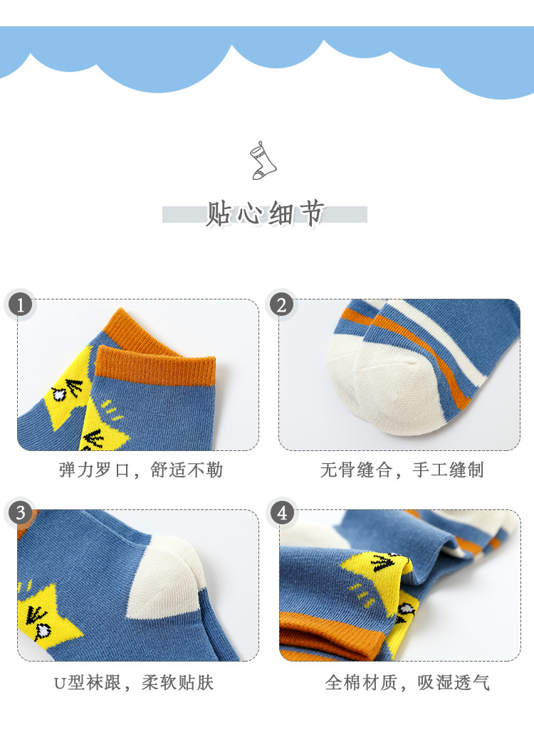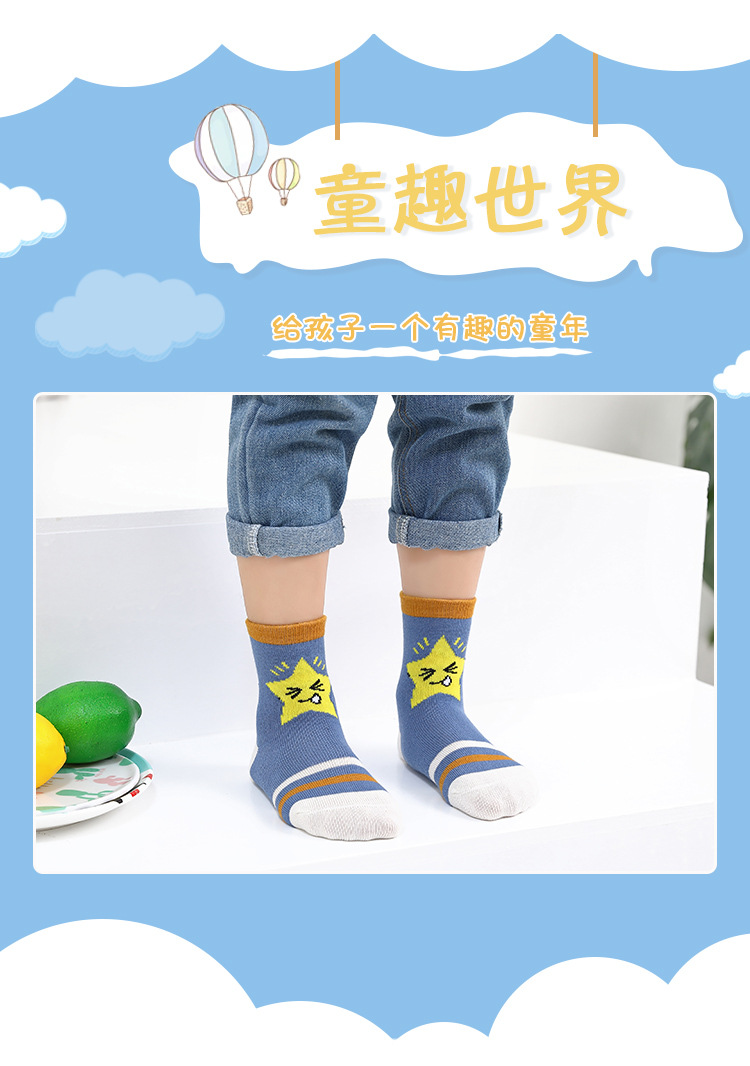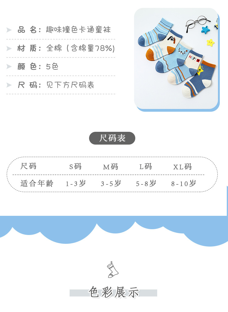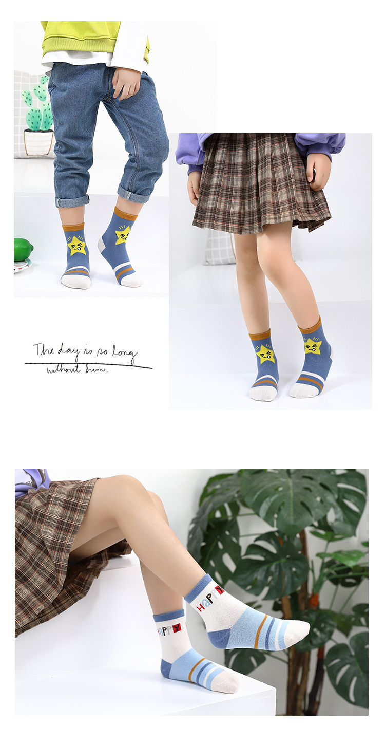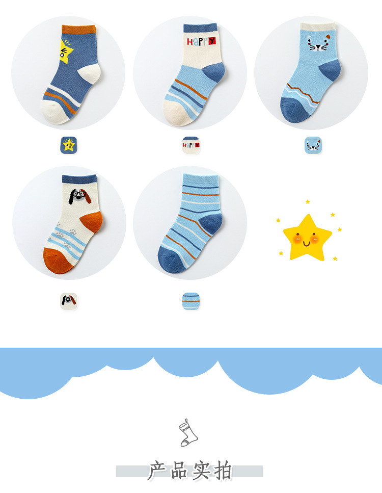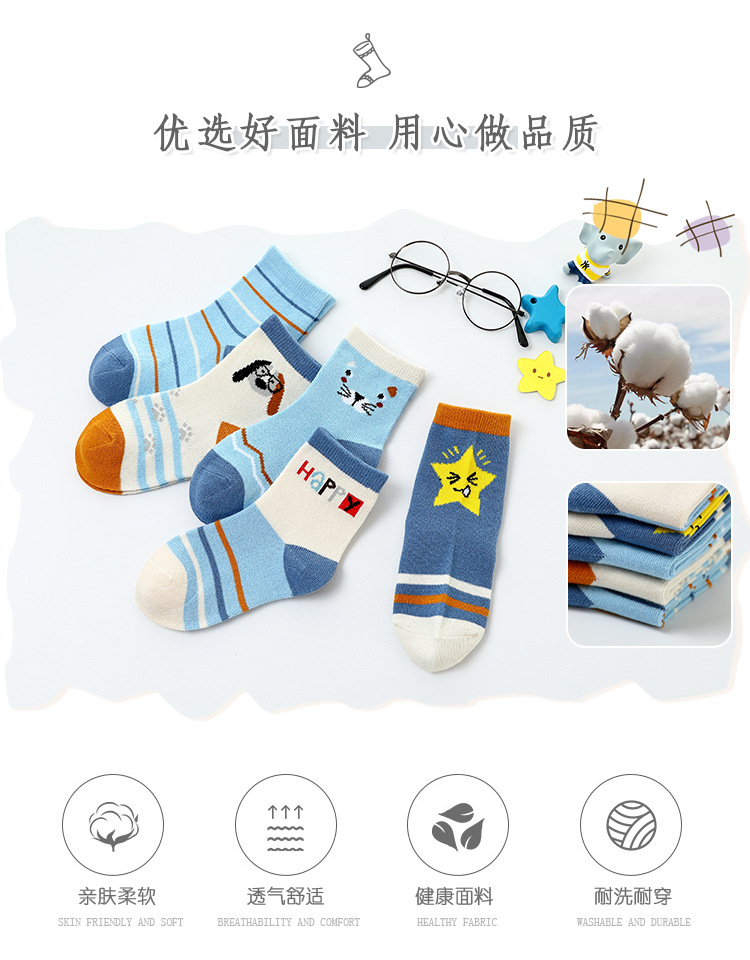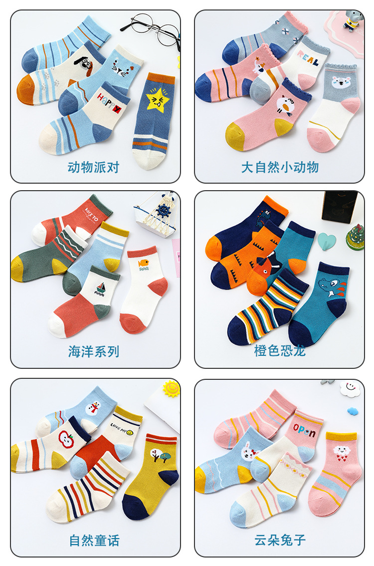 【5双装 优选好面料】A类儿童袜子春秋季精梳棉卡通袜子 儿童中筒袜子新款批发秋冬童袜男
