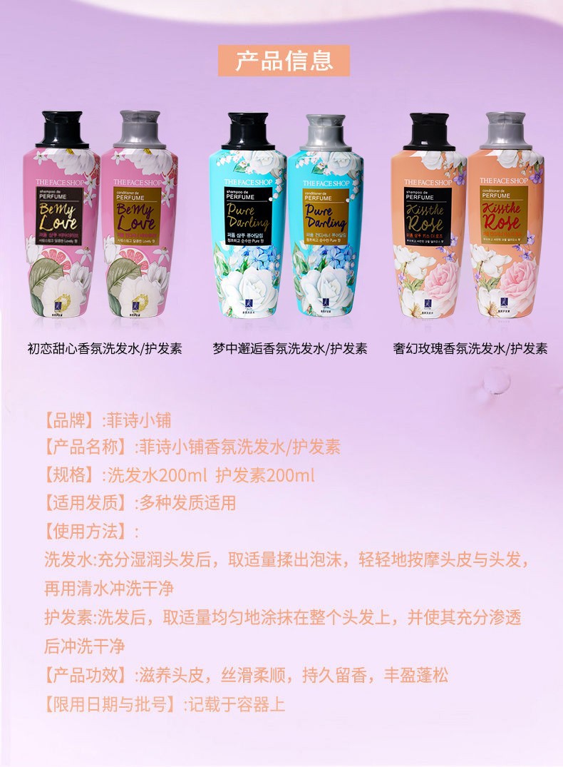韩国LG菲诗小铺梦中邂逅香水洗发水护发素200ml保湿 持久留香