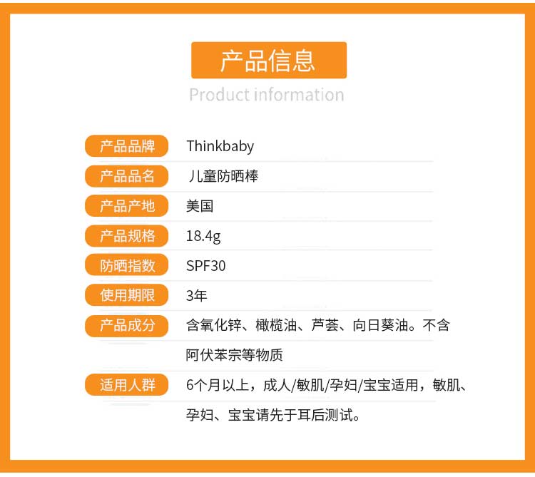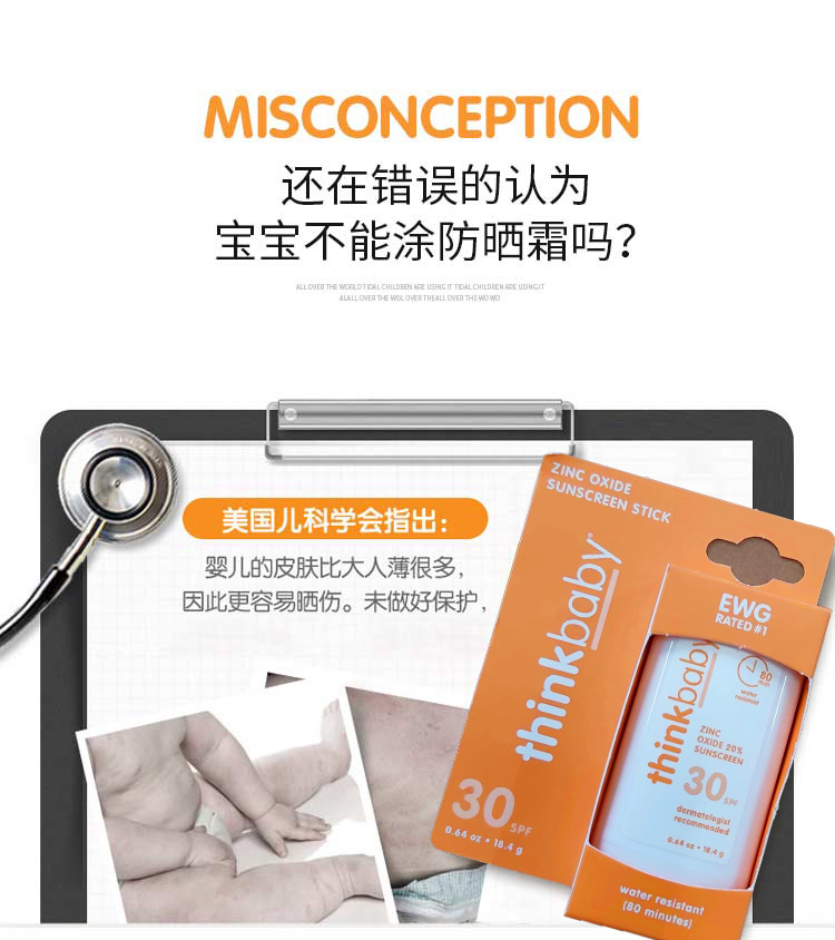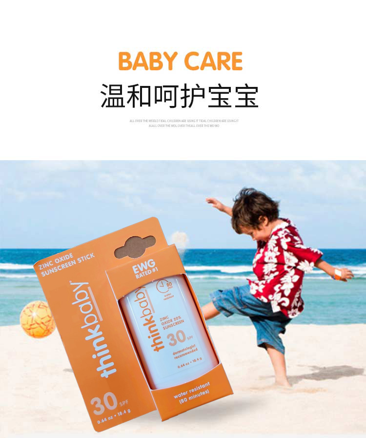 【保税仓】美国Thinkbaby辛克宝贝 婴儿夏日物理防晒棒 SPF30 18.4g/支