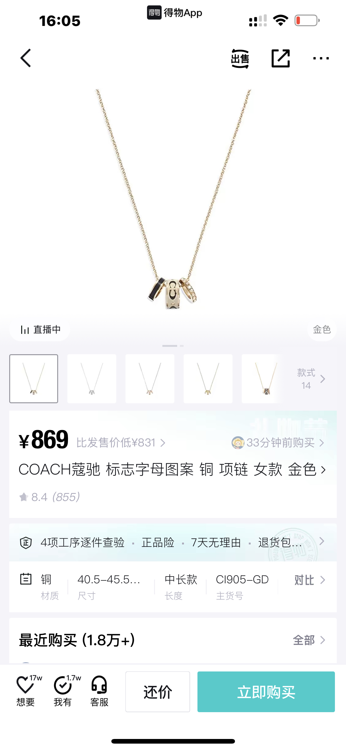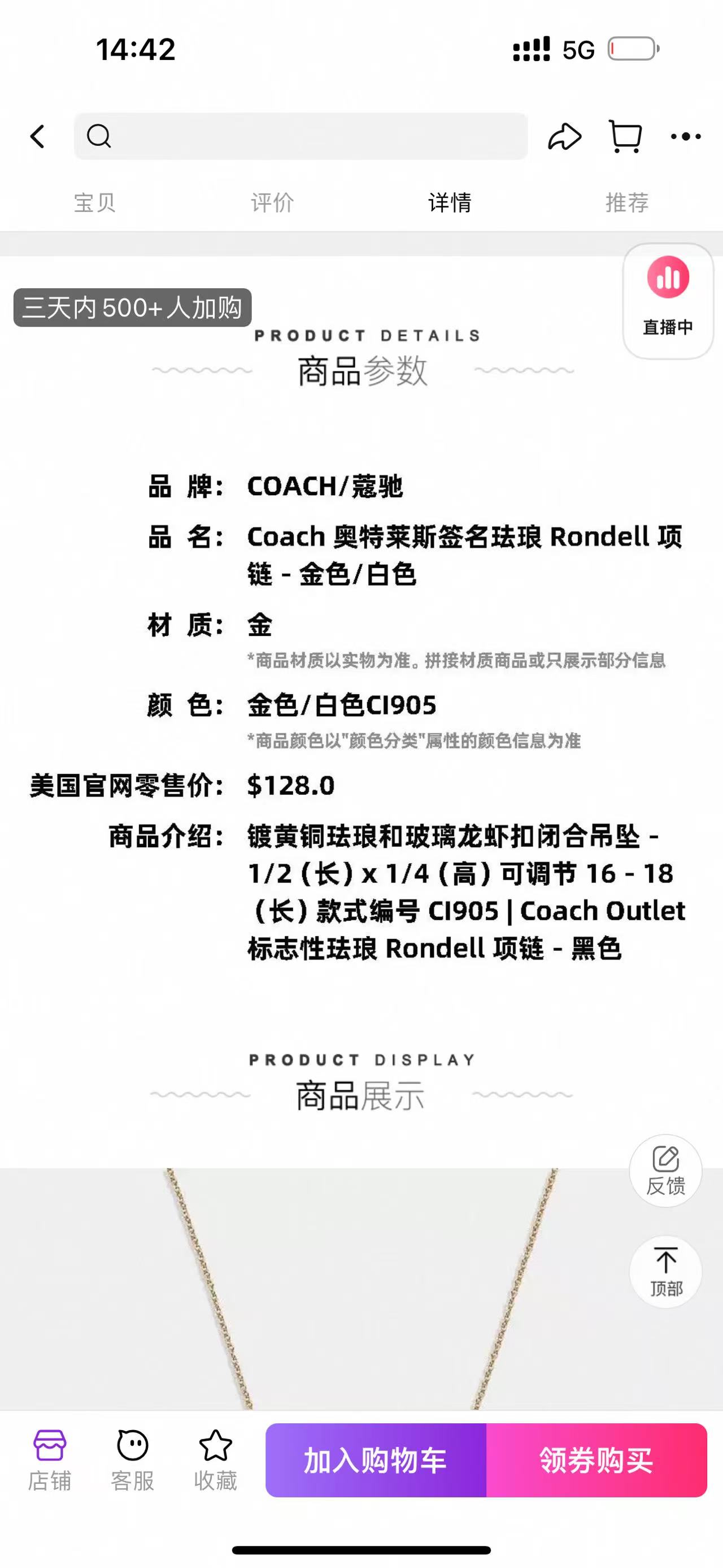 正品保真,公司订单,美国代购Coach/蔻驰奥莱新款女士三环项链吊坠锁骨链饰品首饰 两个款 三环设计 夏天必备款 一折的官网价格发售 材质合金 长度40-45cm