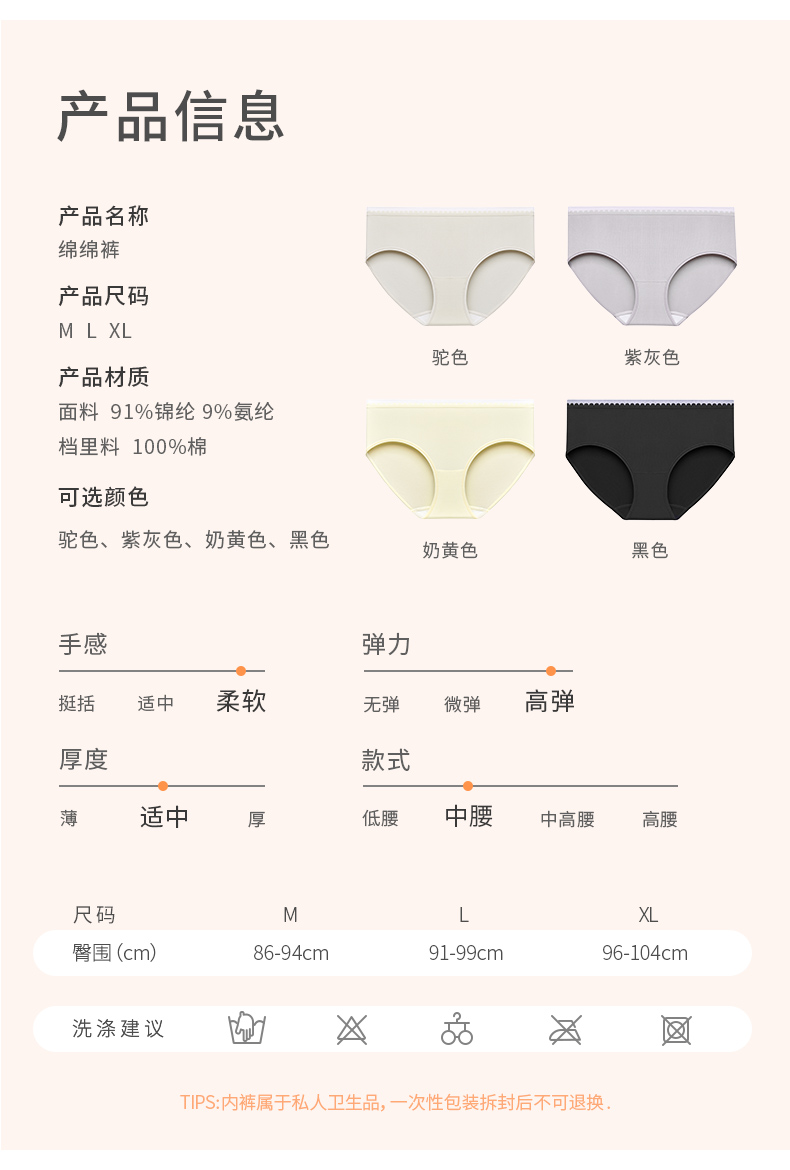 奶糖派绵绵裤舒适弹性柔软亲肤透气内裤三条组合装女平角裤