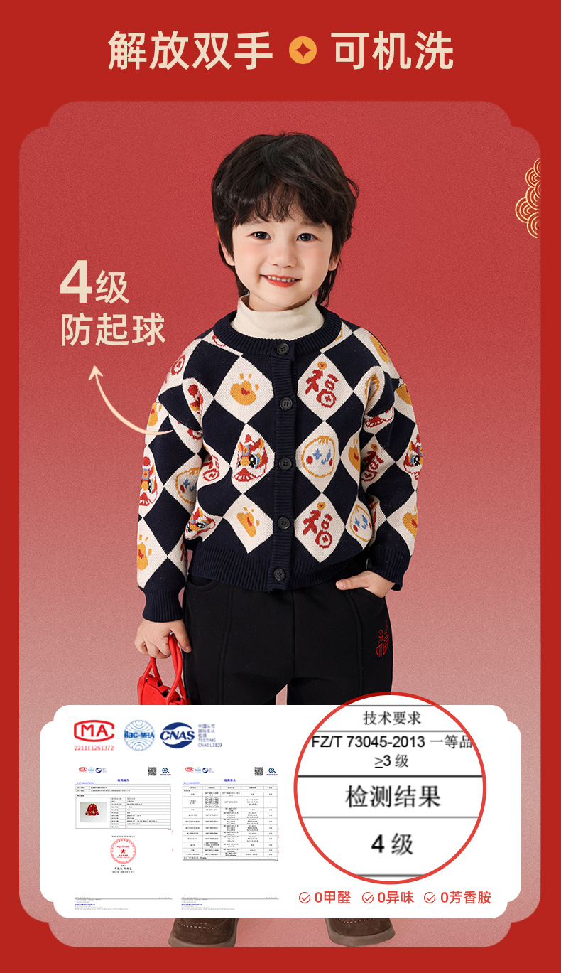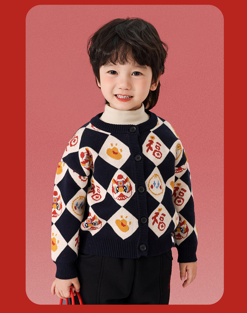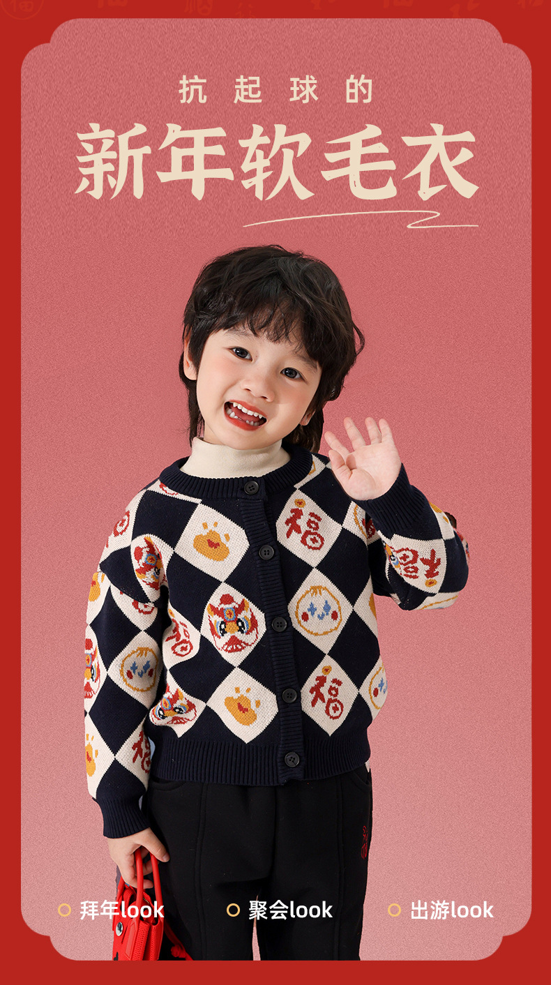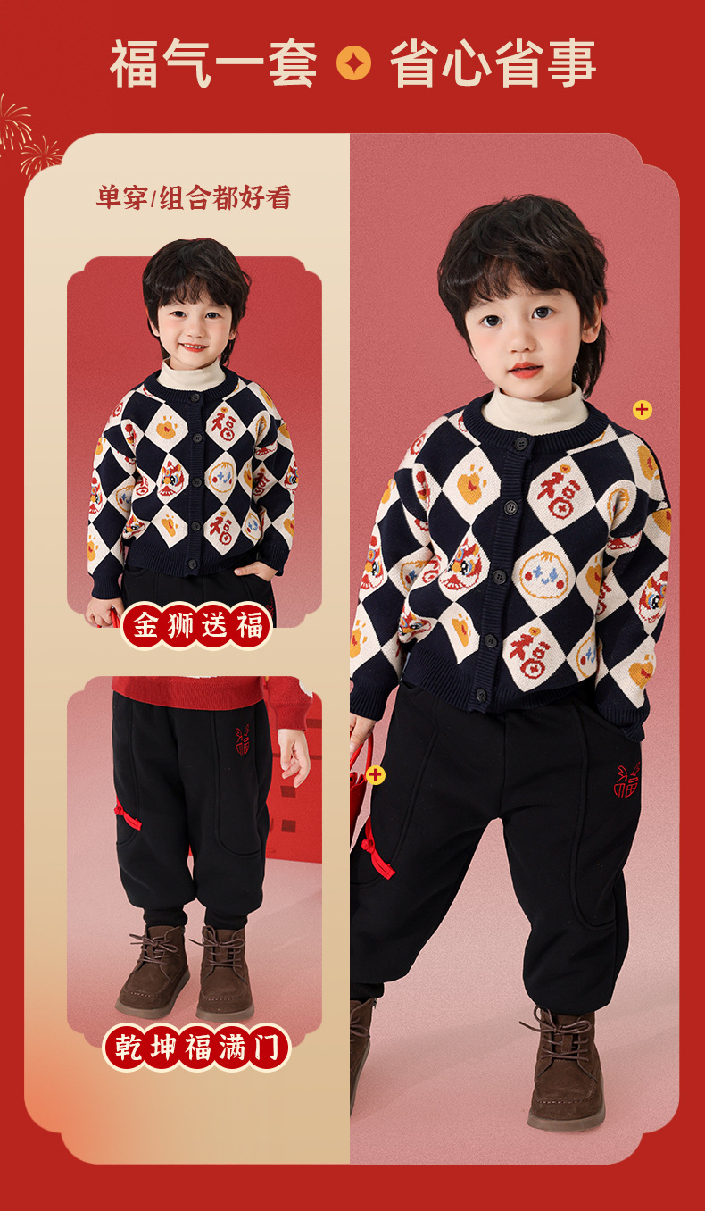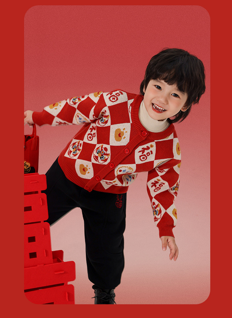 【金狮送福❗️儿童喜庆红色毛衣】寓意如衣祝福满怀,满满细节感,拜年软毛衣光洁手感,贴服无摩擦,冬季新年装开衫外套纯棉L