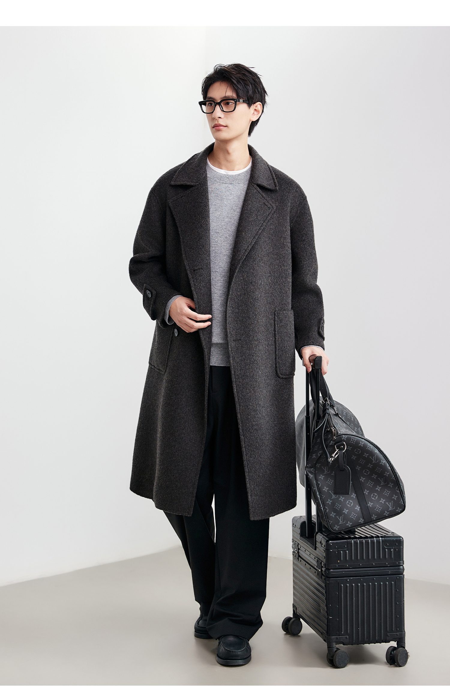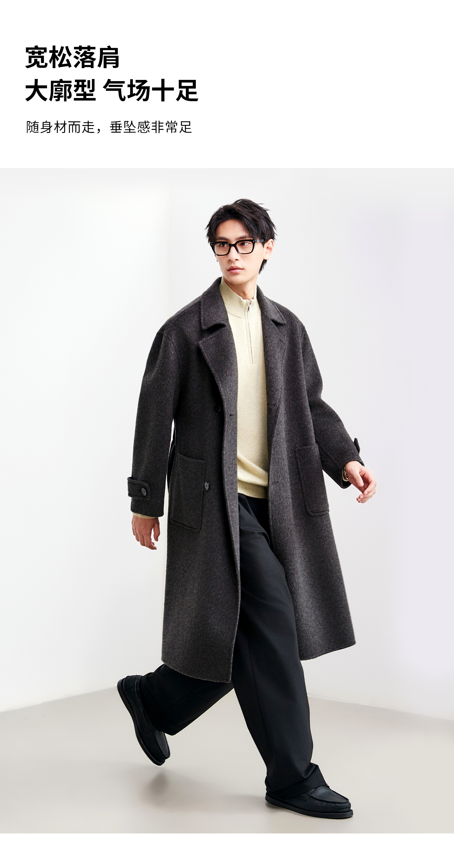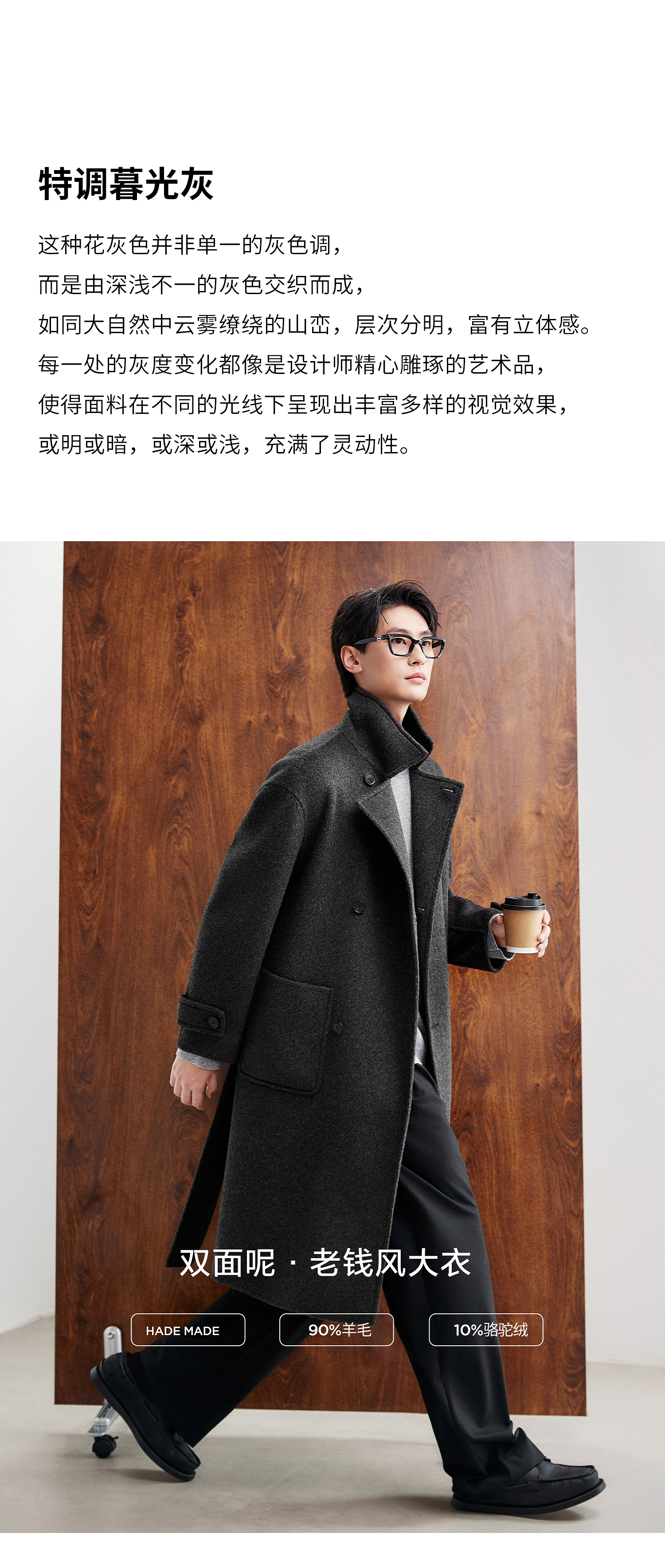 棉仓367823008-羊毛骆驼绒老钱风大翻领毛呢大衣男秋冬双面呢长款呢子外套