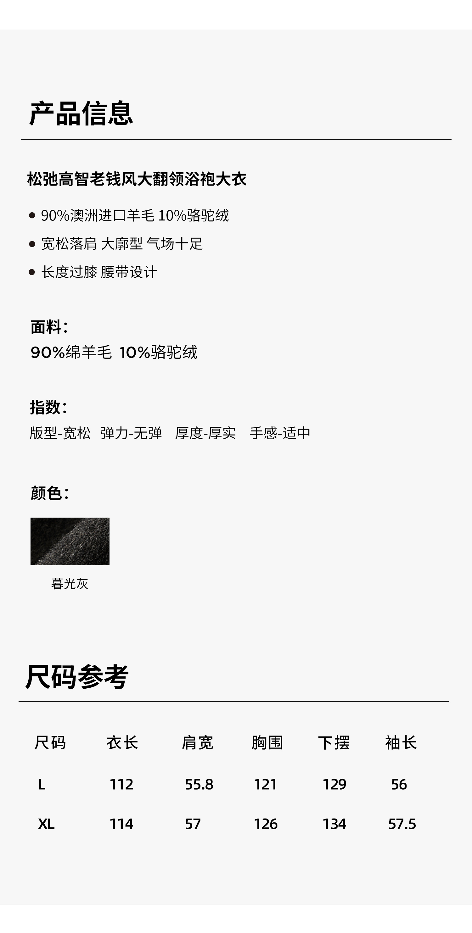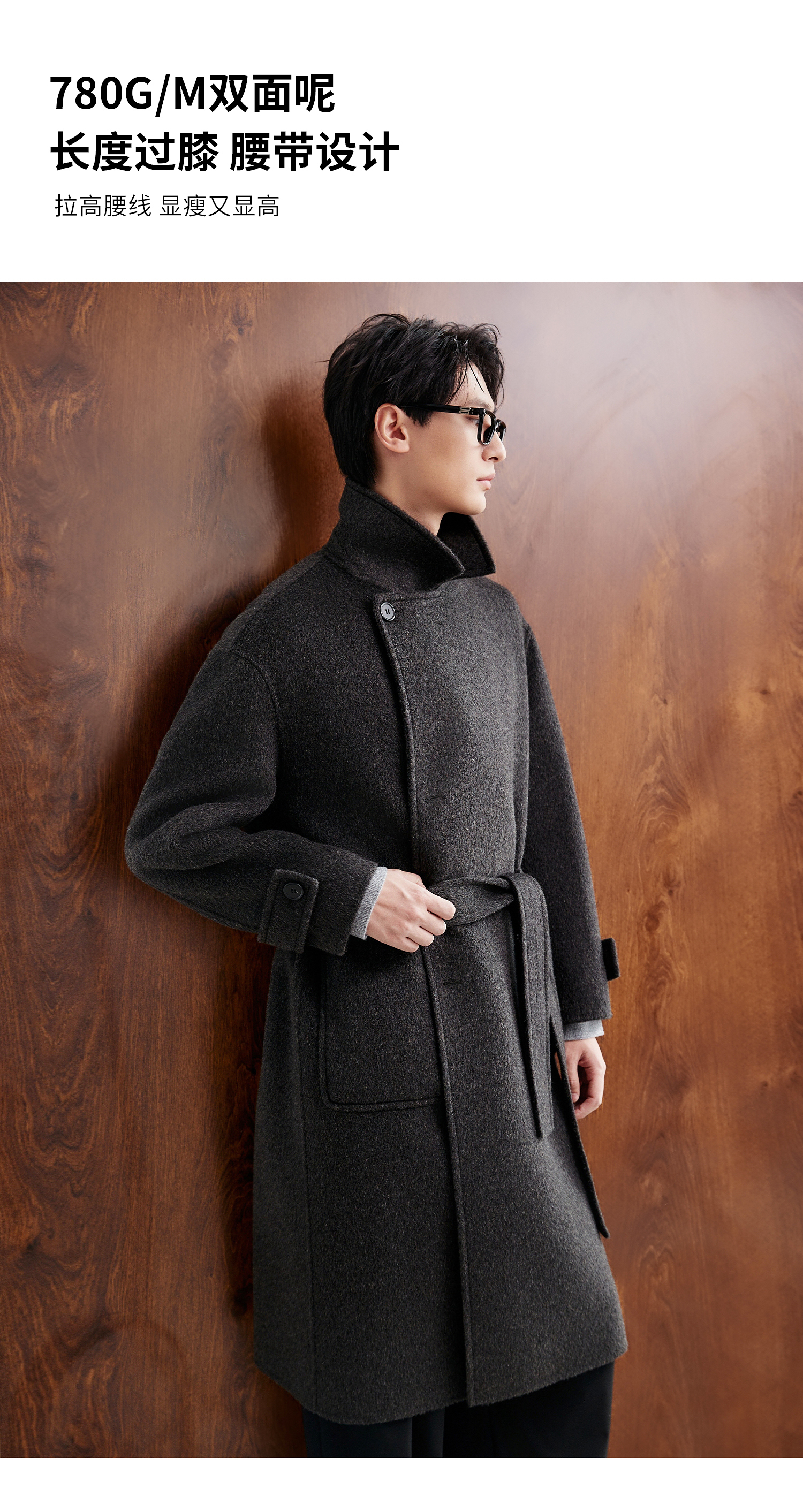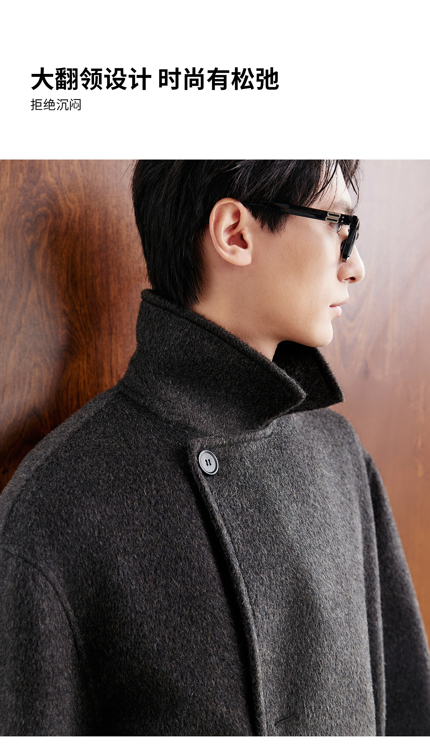 棉仓367823008-羊毛骆驼绒老钱风大翻领毛呢大衣男秋冬双面呢长款呢子外套
