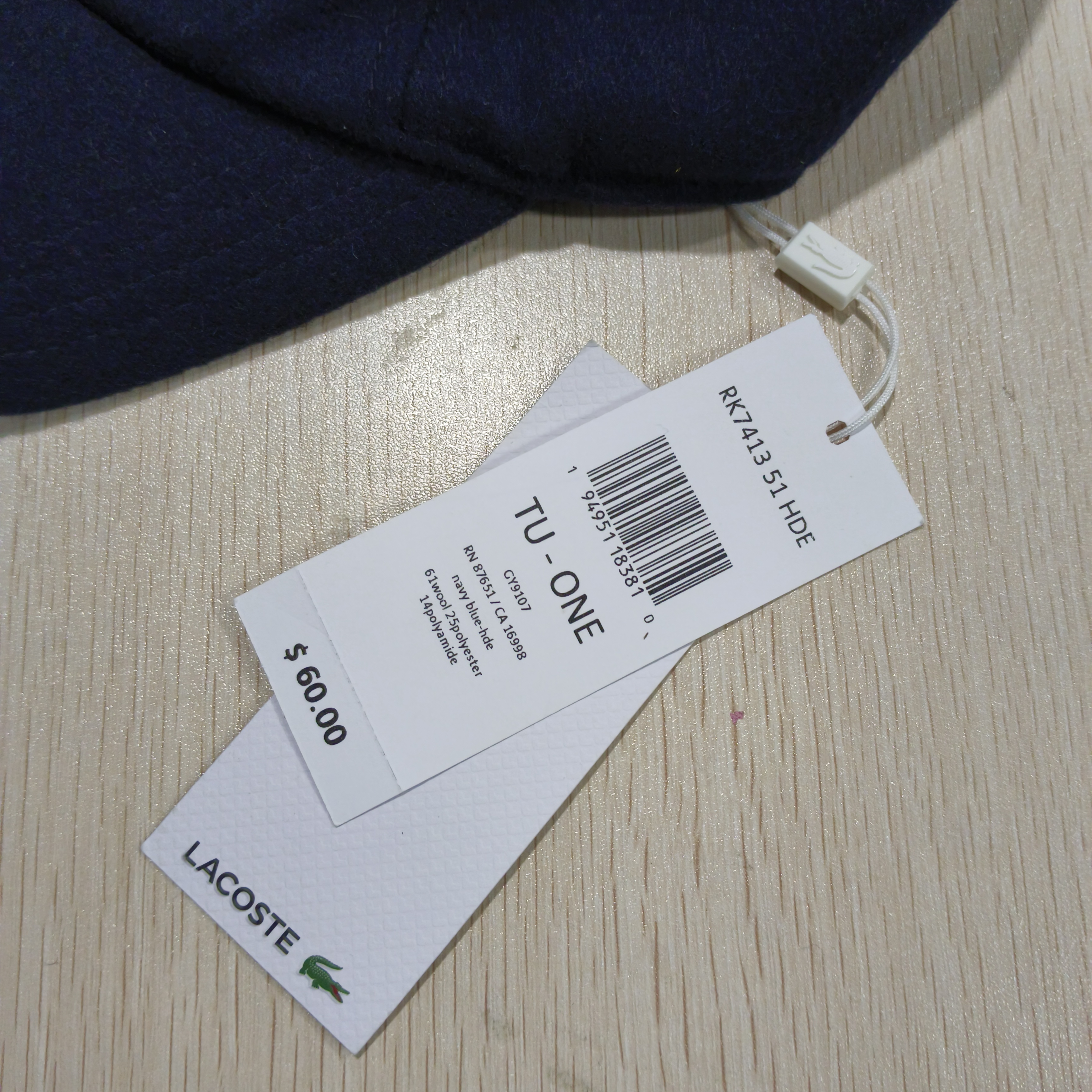 瑕疵Lacoste/法国鳄鱼 新款潮流纯色刺绣LOGO羊毛帽