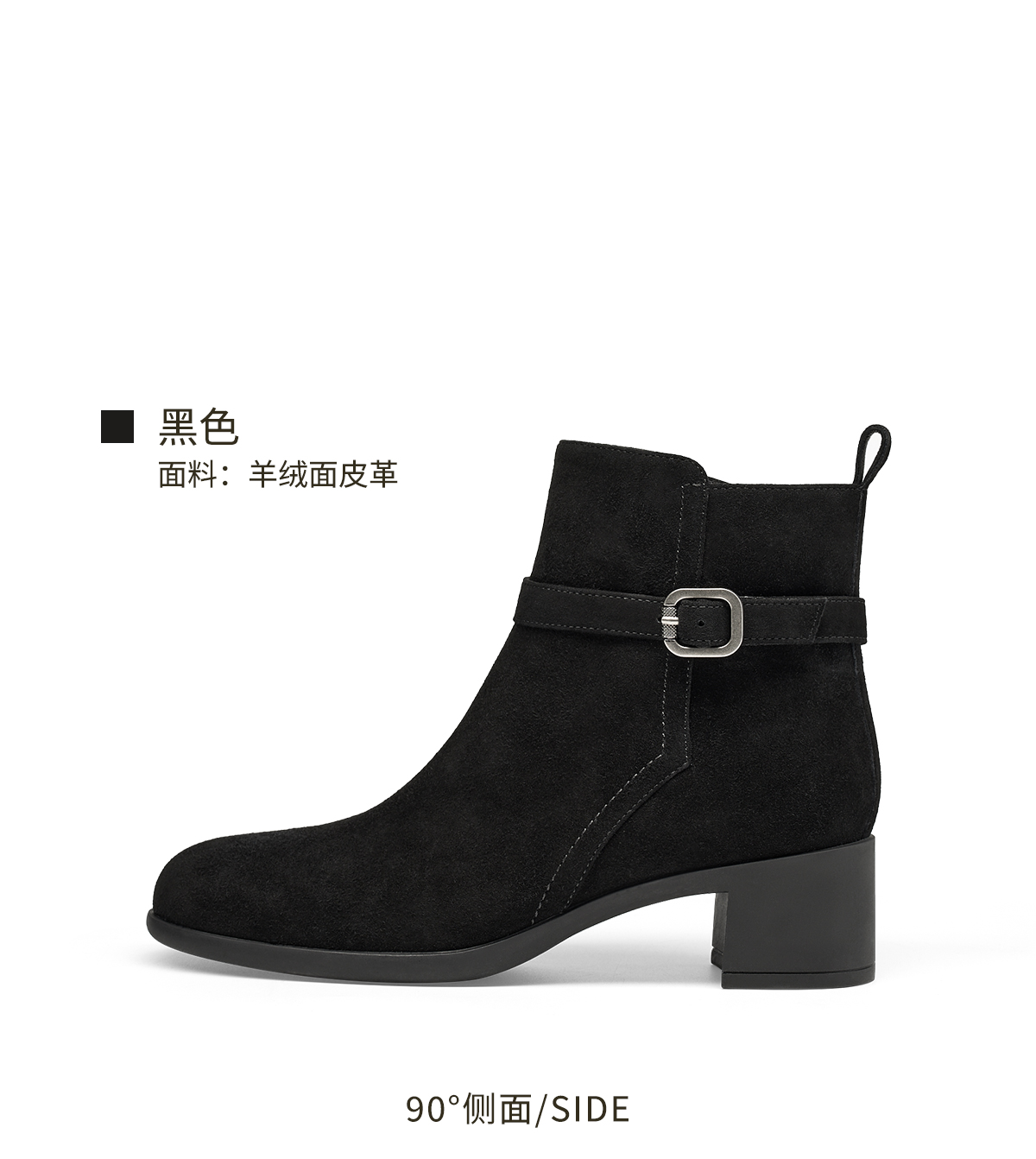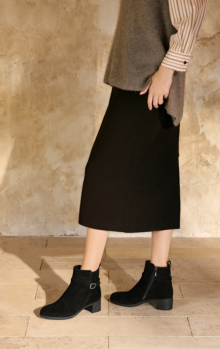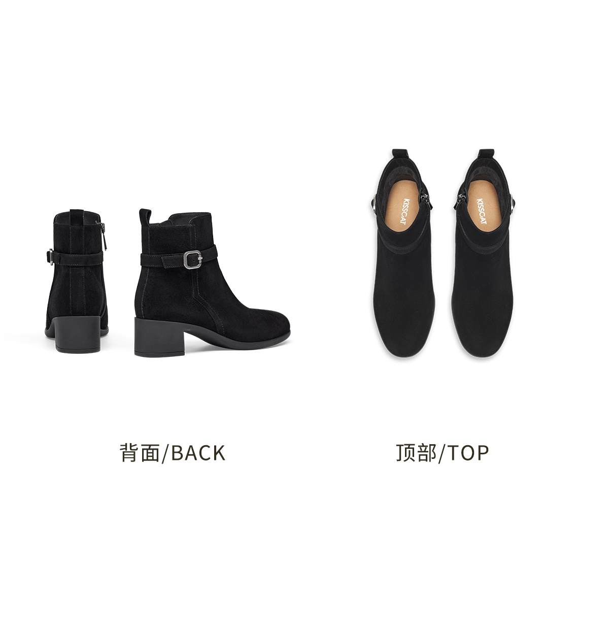 【云粉节】BF楼KISSCAT接吻猫25冬季新款显瘦粗跟矮靴增高法式真皮黑色时装靴女KA65885-10吊牌价1499活动价799