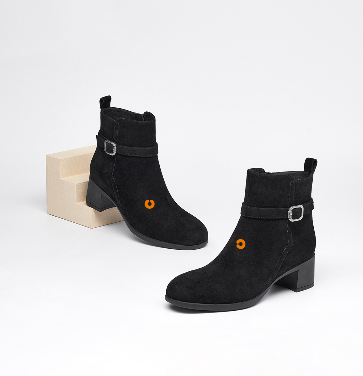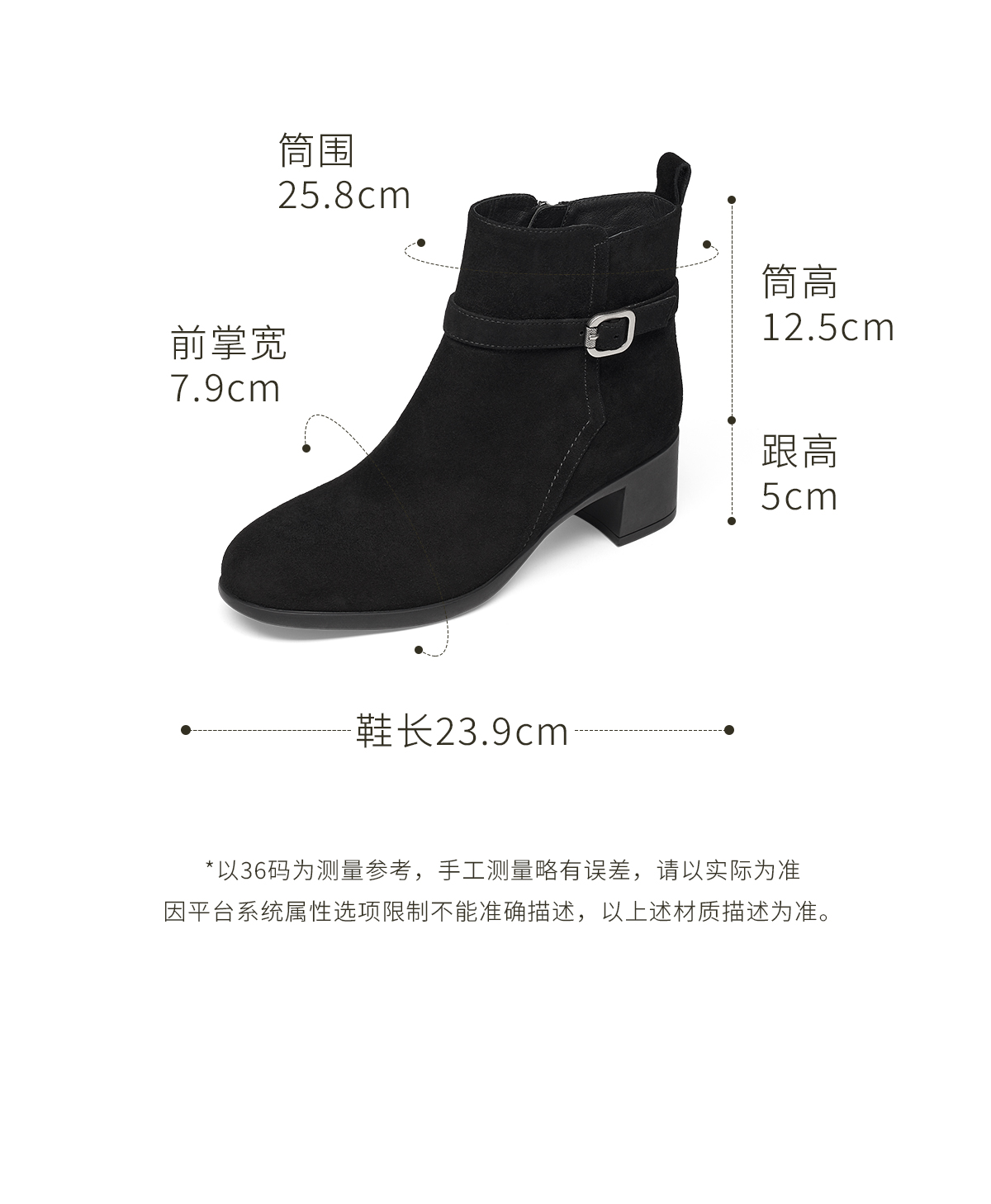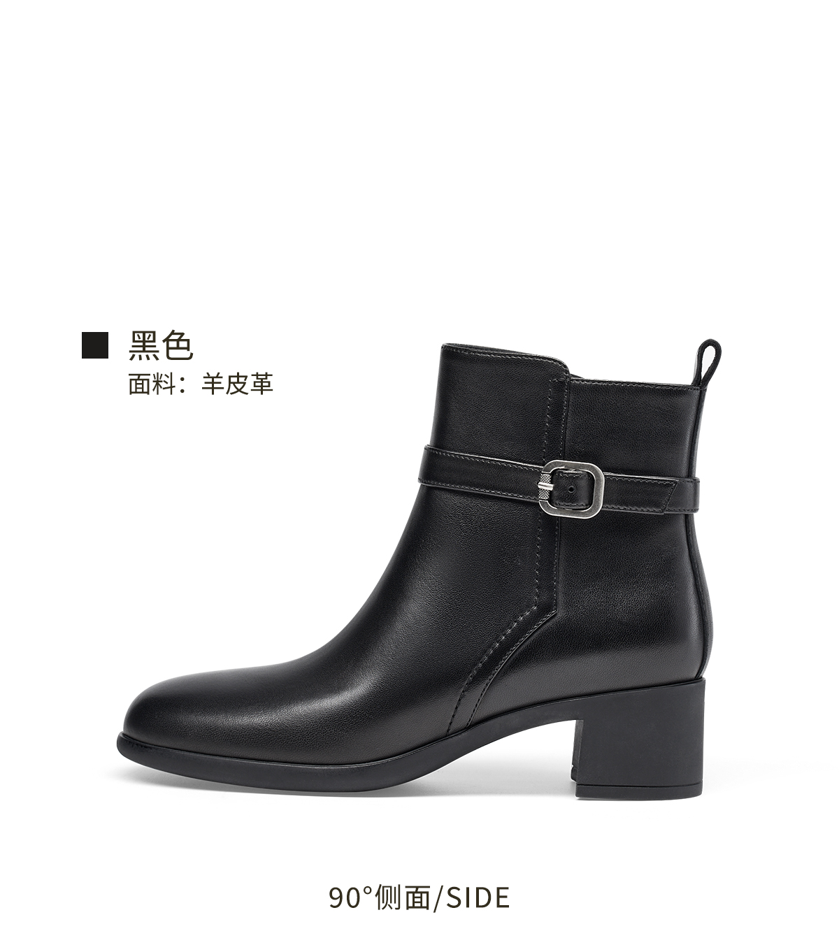 【云粉节】BF楼KISSCAT接吻猫25冬季新款显瘦粗跟矮靴增高法式真皮黑色时装靴女KA65885-10吊牌价1499活动价799