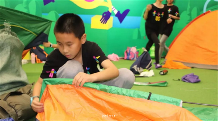 深夜降临,畅玩之后的营员们一定也是精疲力尽了,安静下来的城市孕育着睡眠气息,我们在自己搭建的帐篷里安心入眠吧。