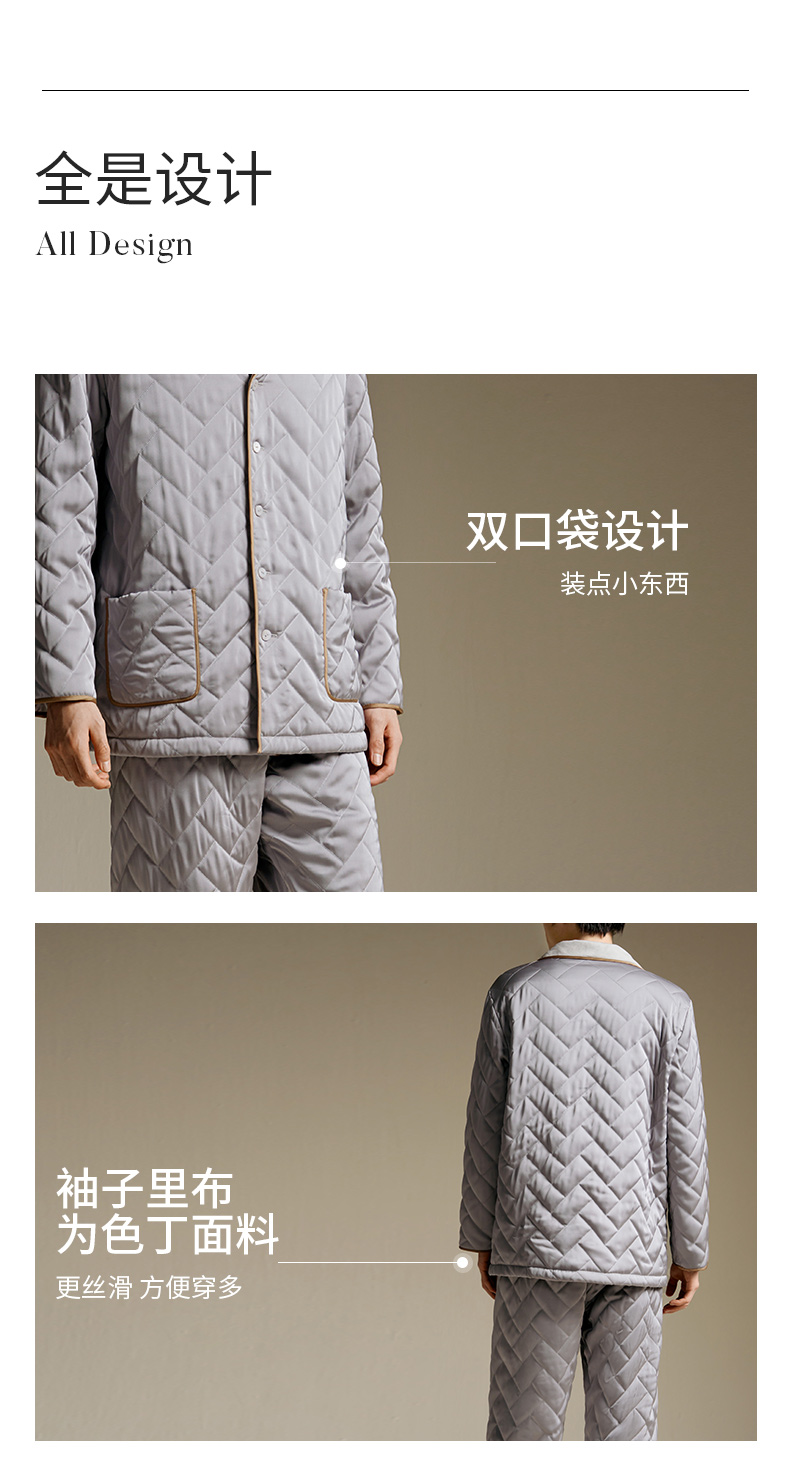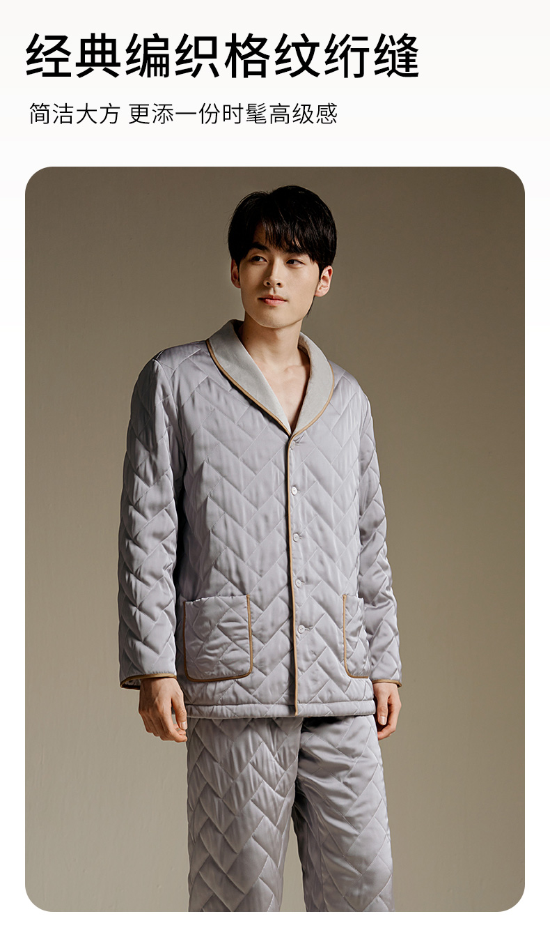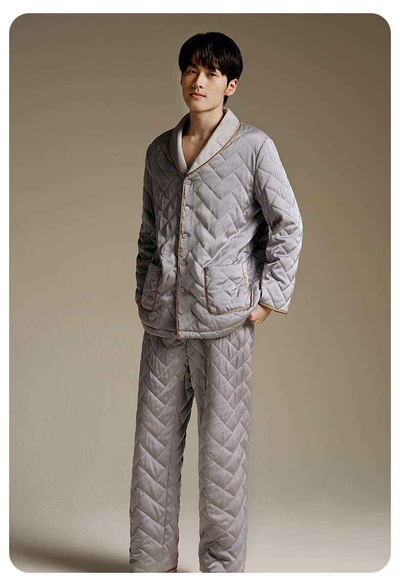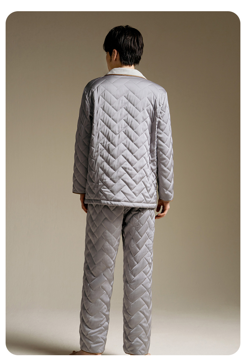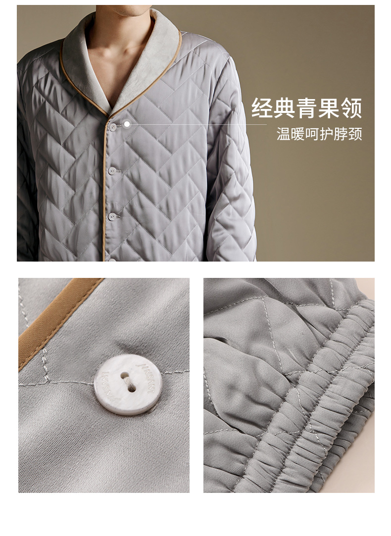 【暖暖家居服】桑蚕丝丝绵绒睡衣男秋冬保暖宽松衣裤套装金三塔 YSMED202