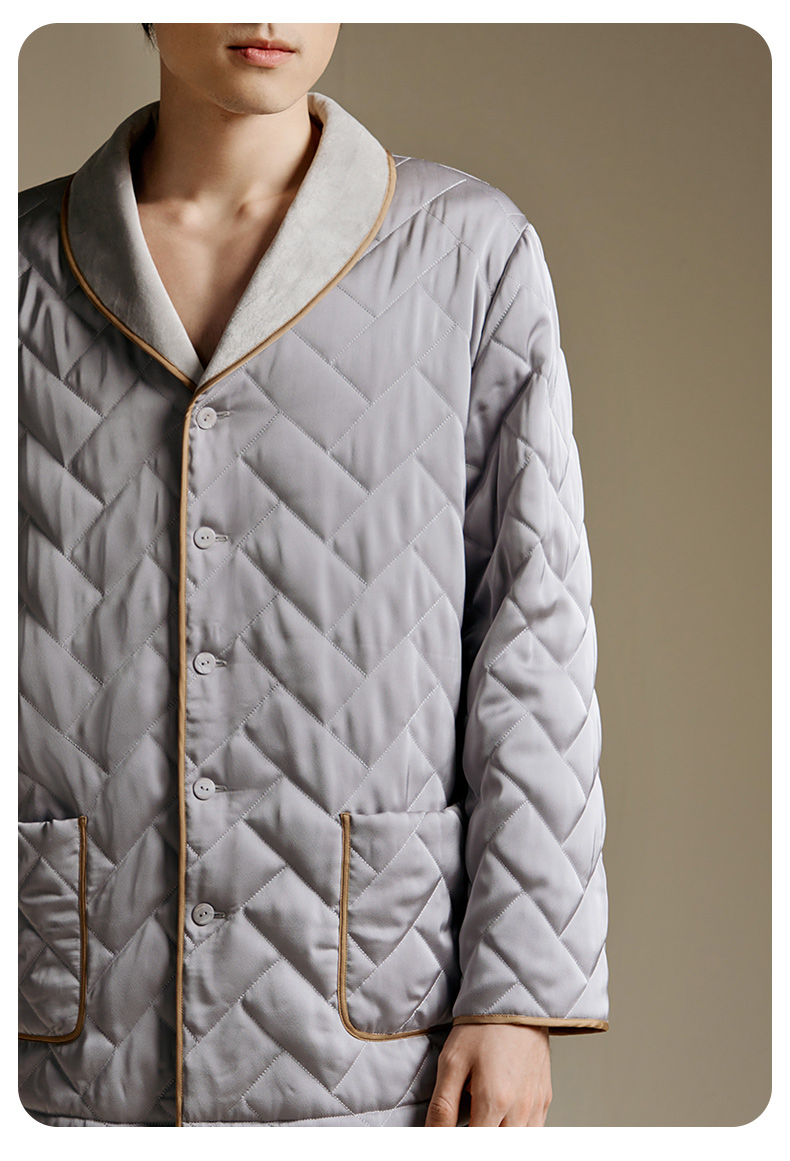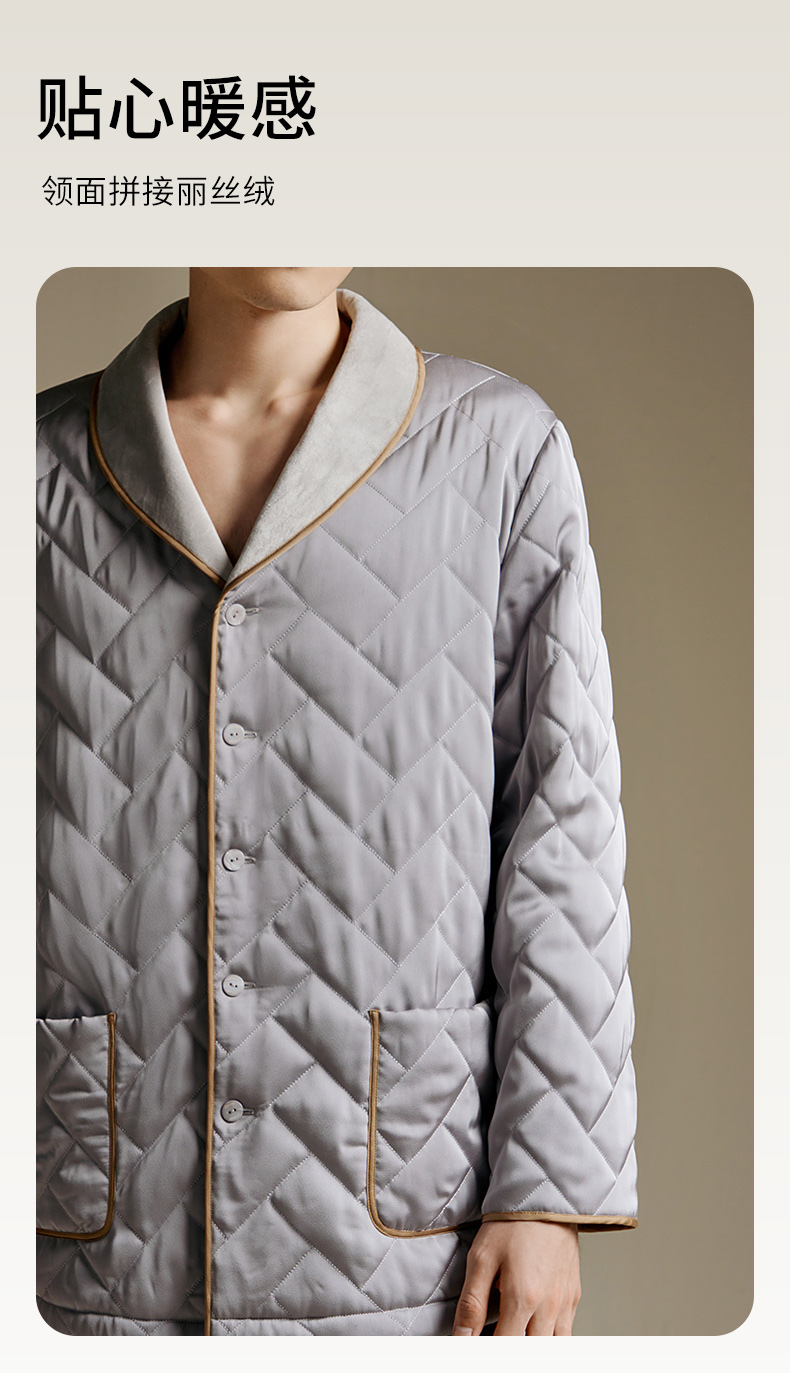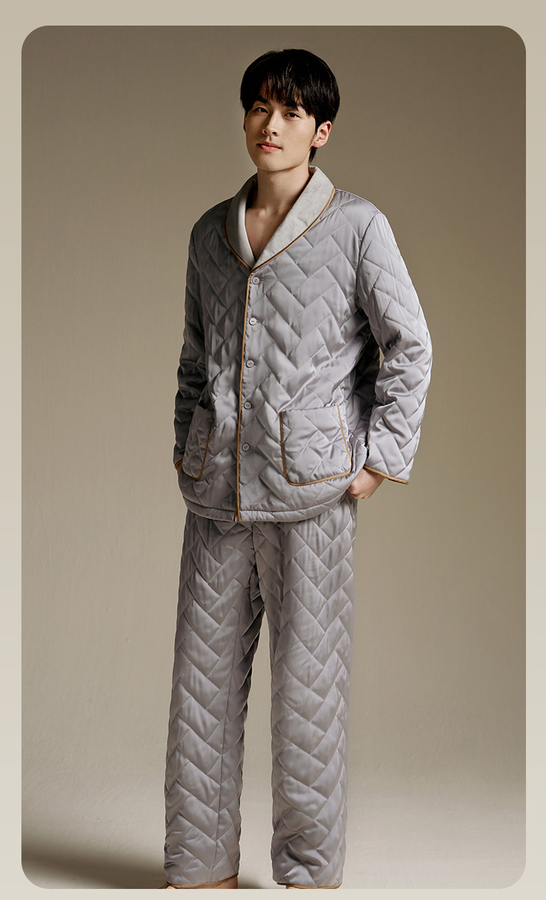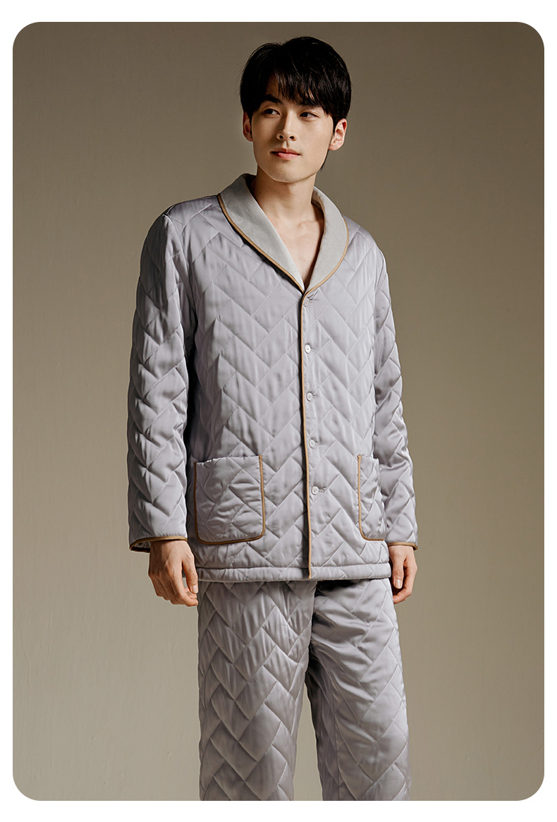 【暖暖家居服】桑蚕丝丝绵绒睡衣男秋冬保暖宽松衣裤套装金三塔 YSMED202
