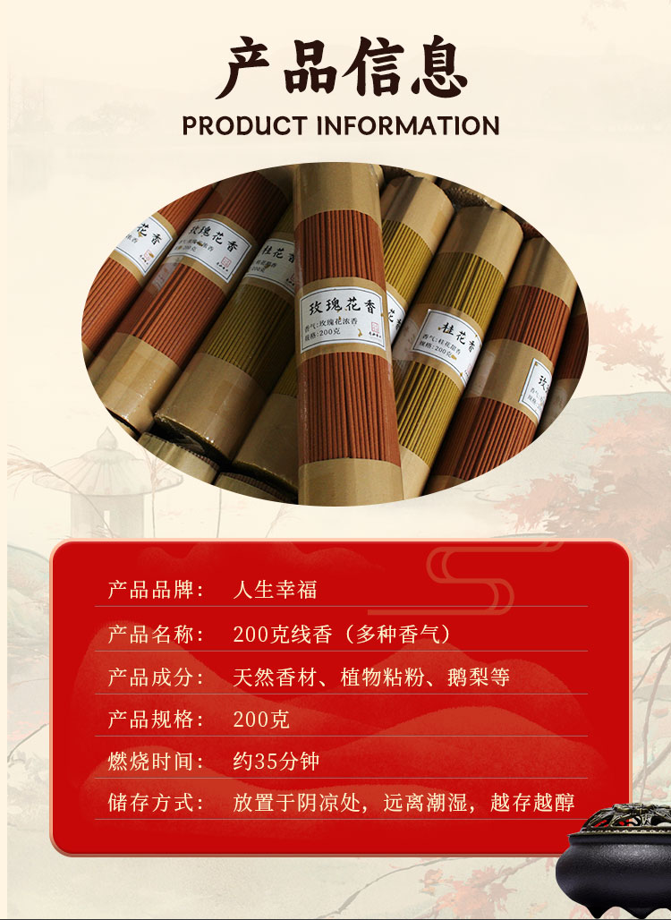 国风长款 茉莉香20克天然沉香线香家居安神助眠熏香
