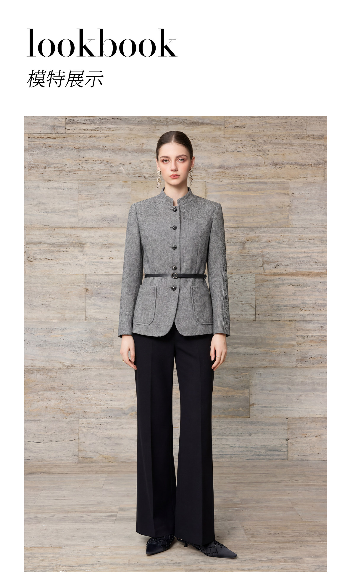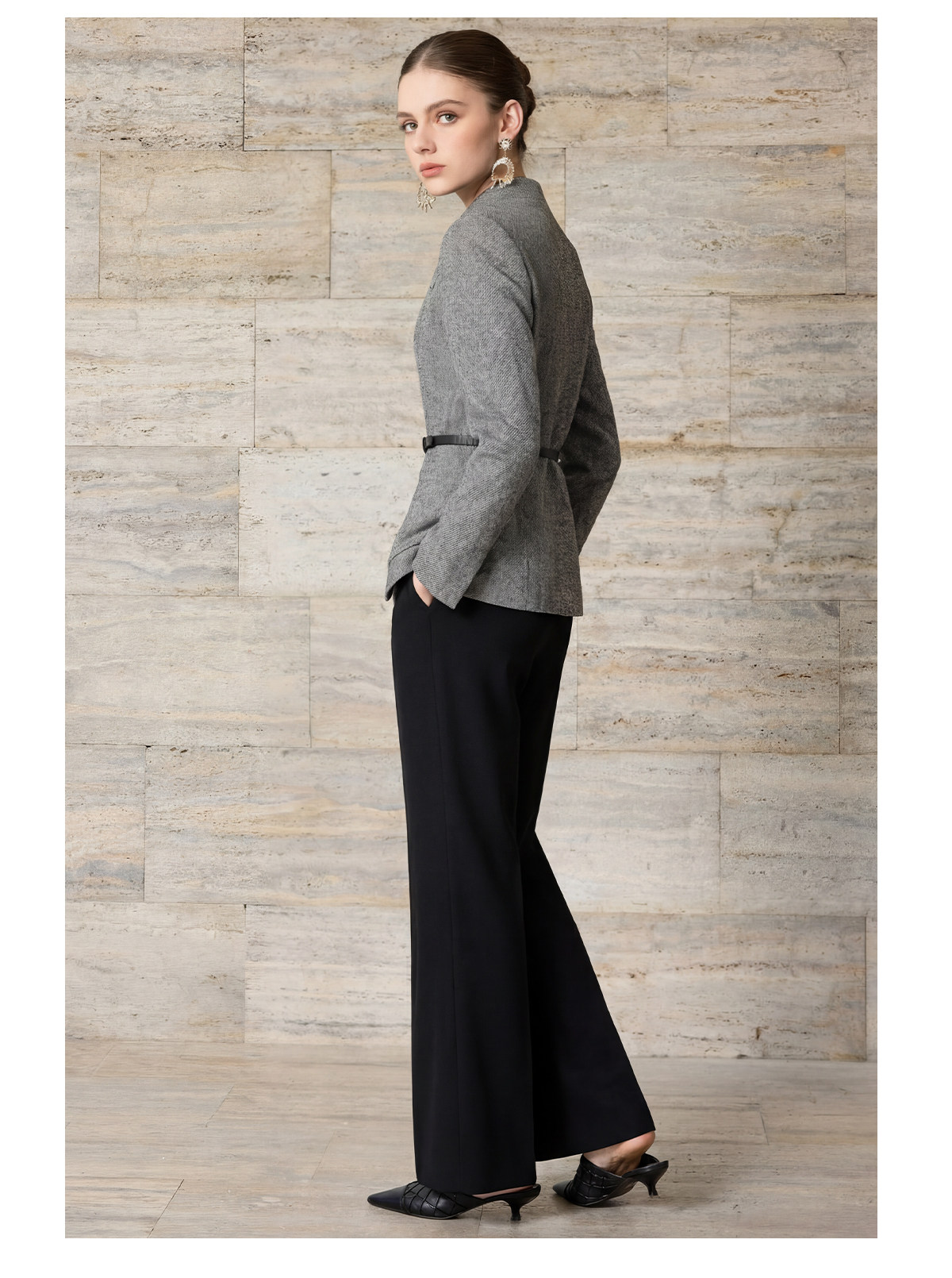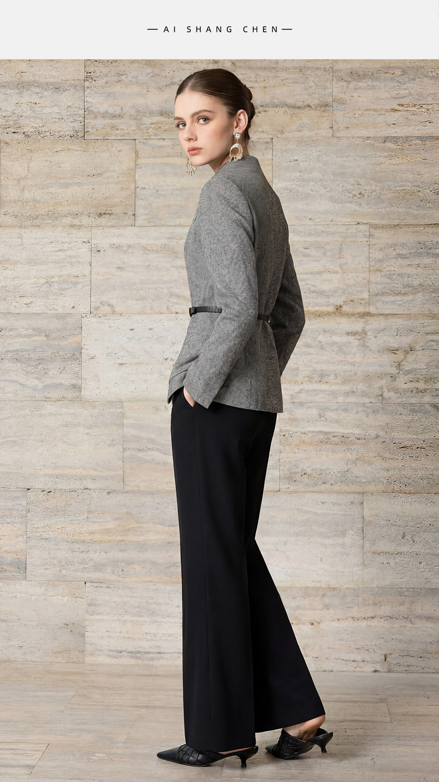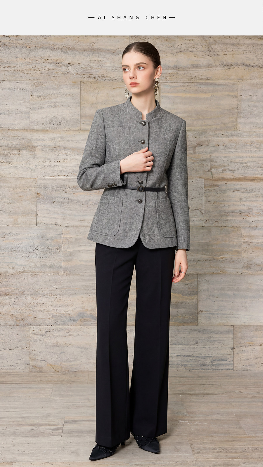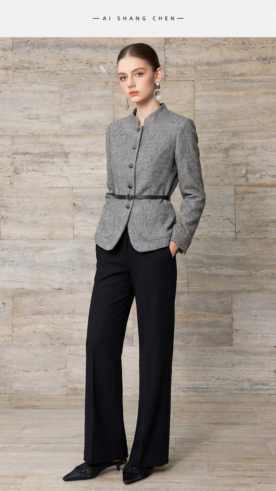 艾尚臣格雷系立绵羊毛西装套装女职业高级高智感阔腿裤两件套气质 商品图4