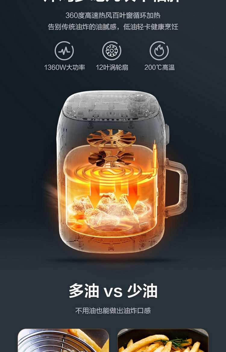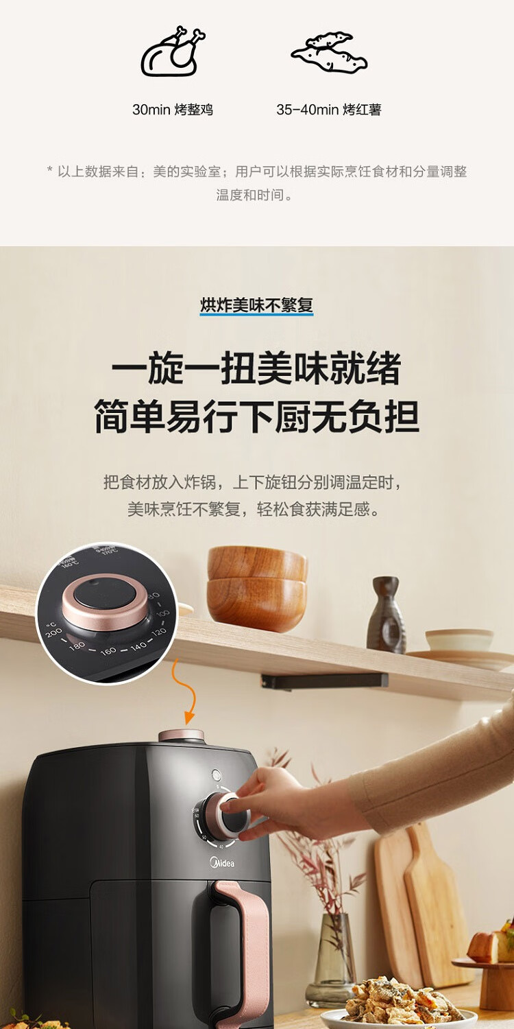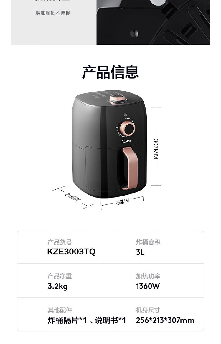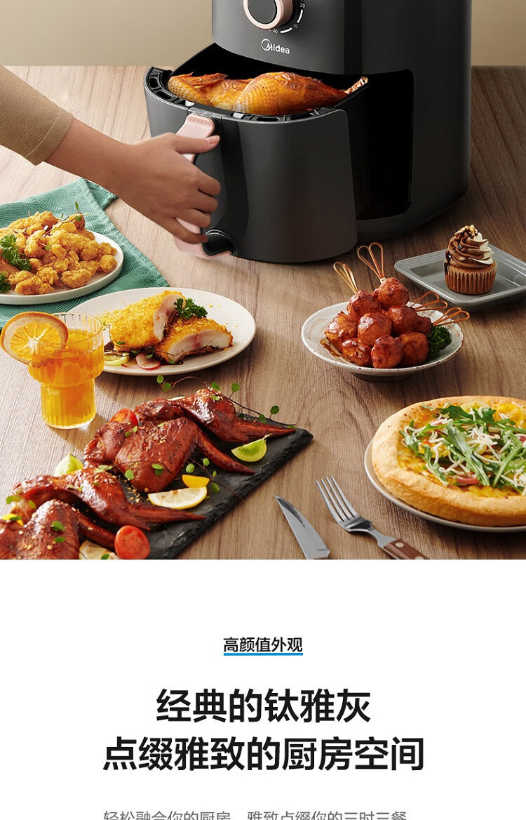 美的(Midea)无油空气炸锅家用大容量全自动多功能电炸机薯条机3L大容量 KZE3003TQ